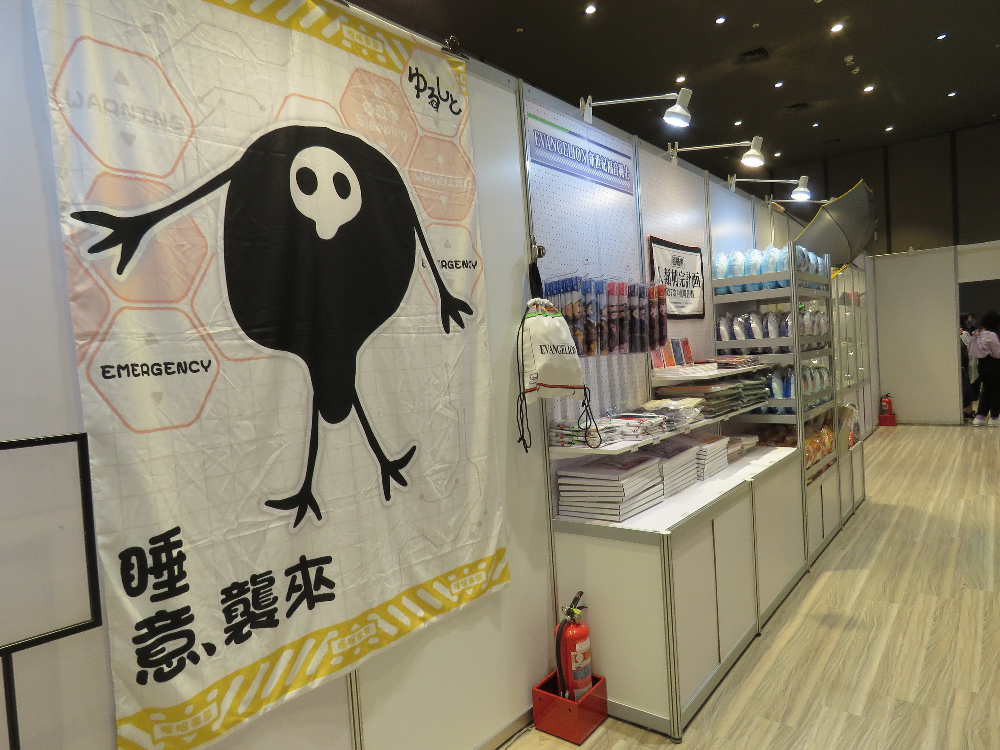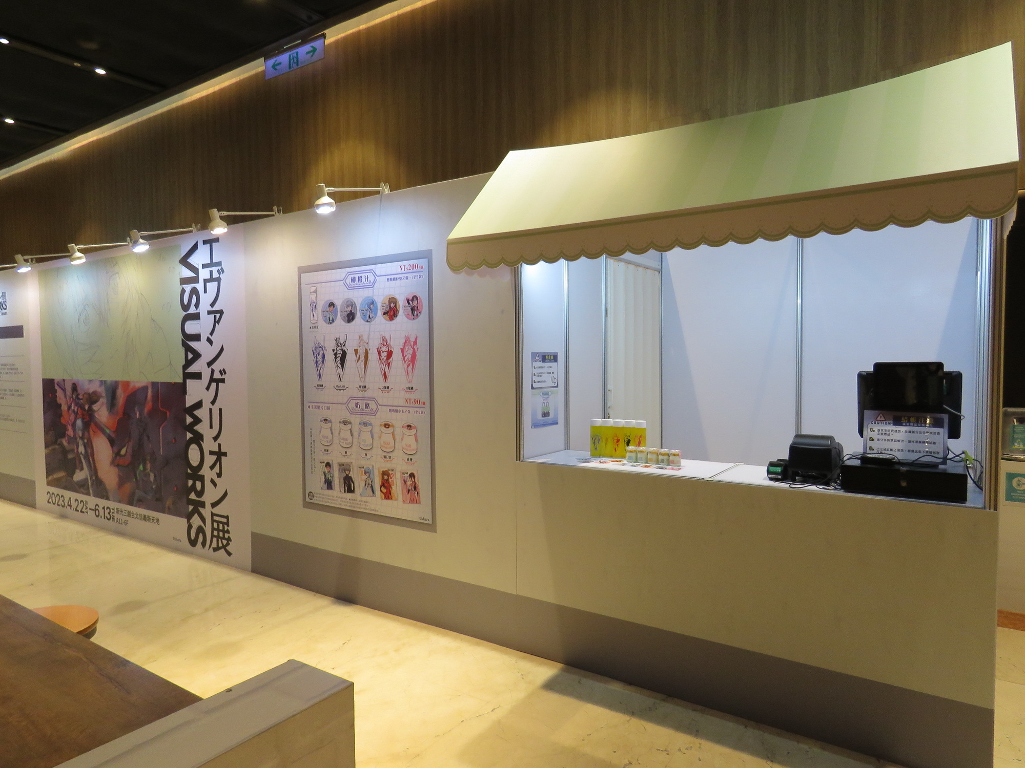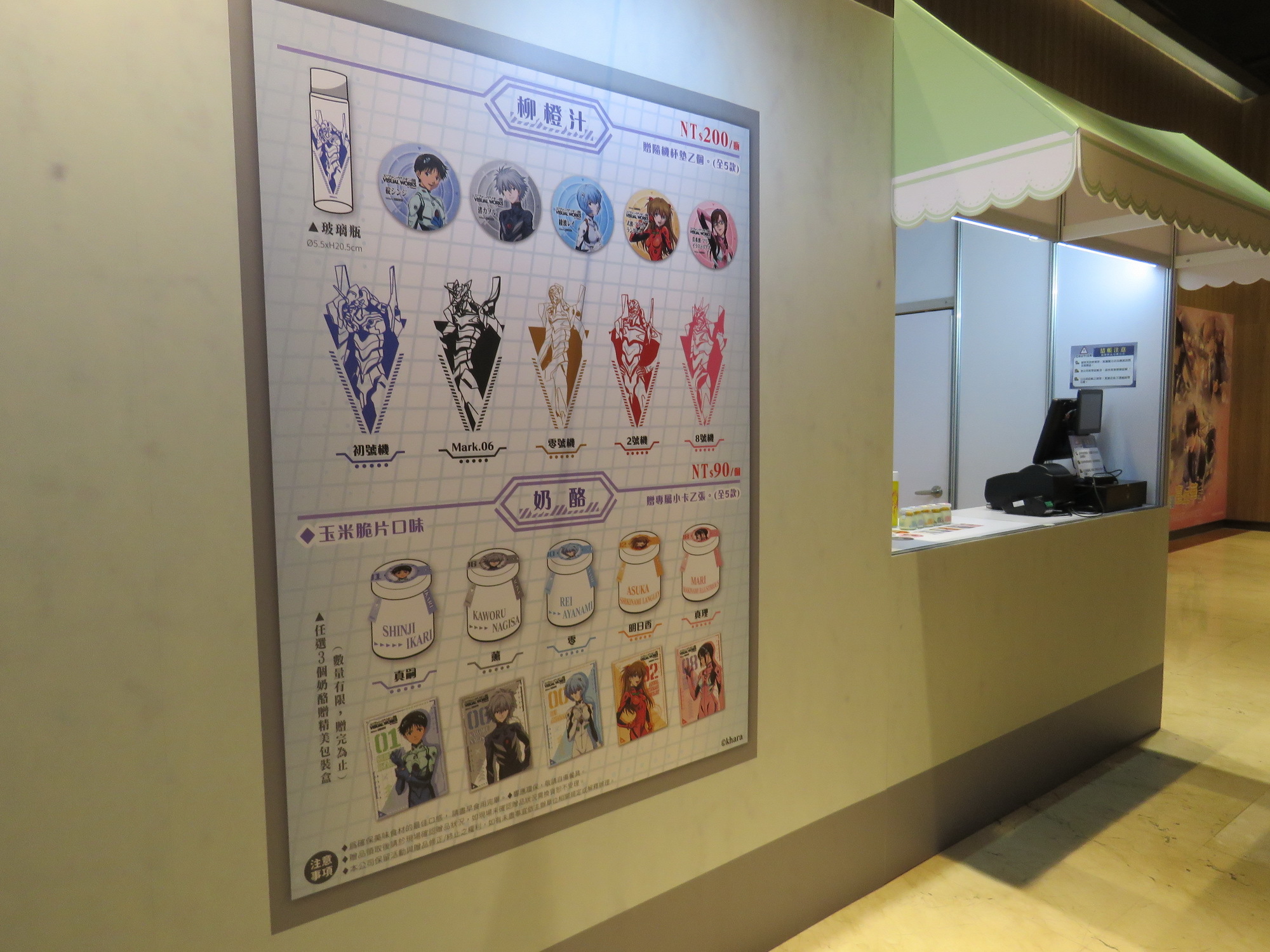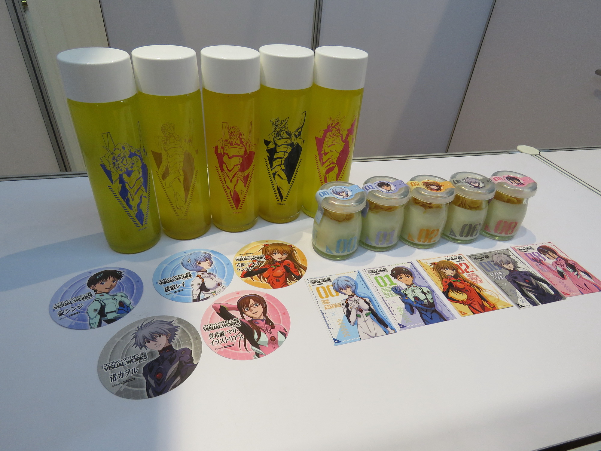 展覽設有 Café stand,以 EVA 概念為設計元素,提供來場粉絲奶酪甜品及 LCL 柳橙汁,還可獲得角色小卡及杯墊。並設計推出機體軍牌、及以軟Q可愛的 YURUSHITO 扭蛋印章。