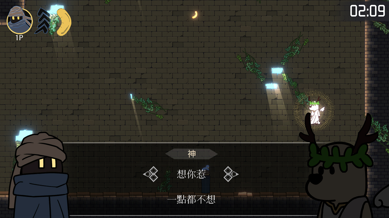 編輯問到為什麼會想要加入 QQ 這個角色?團隊說明:「增加 QQ 主要是為了豐富遊戲內容,讓整個遊戲操作更多元。」而從圖片和遊戲畫面的呈現,編輯覺得 QQ 好像很辛苦,要抓著人不斷往上飛,對此團隊幽默的回應:「QQ 有很多腰果可以吃 OvO」。