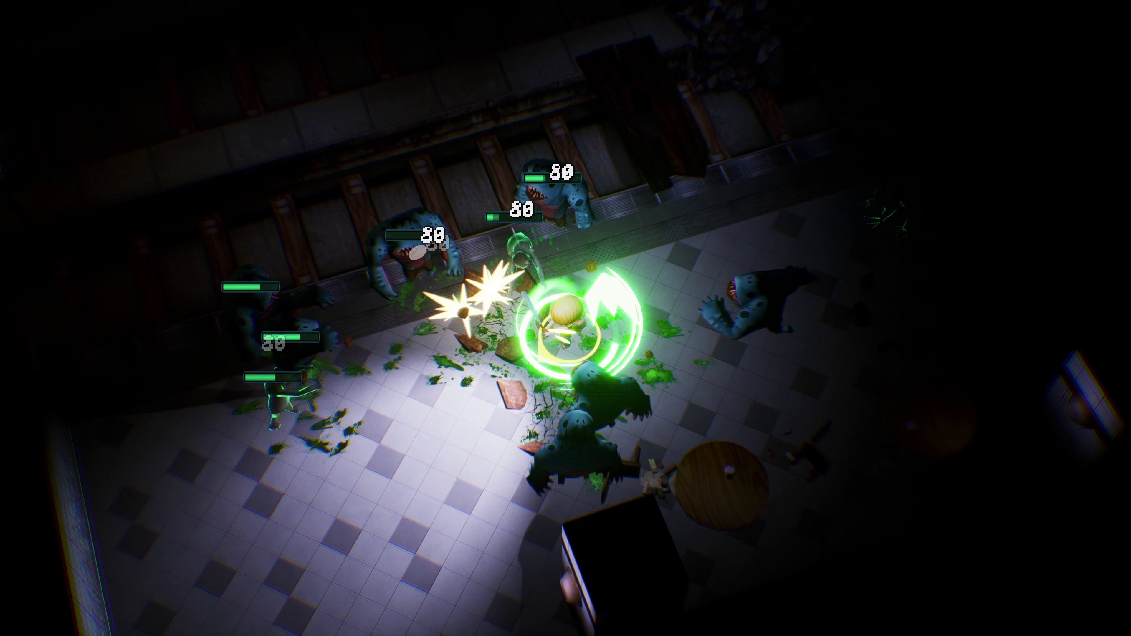 喪靈激湯》是一款俯瞰視角動作射擊遊戲,融合英雄救美及輕度解謎等要素。官方表示,本作曾以爽快的戰鬥和獨特風格獲得「PC Indie Pitch」第三名,並入圍「Level Up」最佳遊戲設計、最佳技術、最佳配樂等獎項。