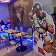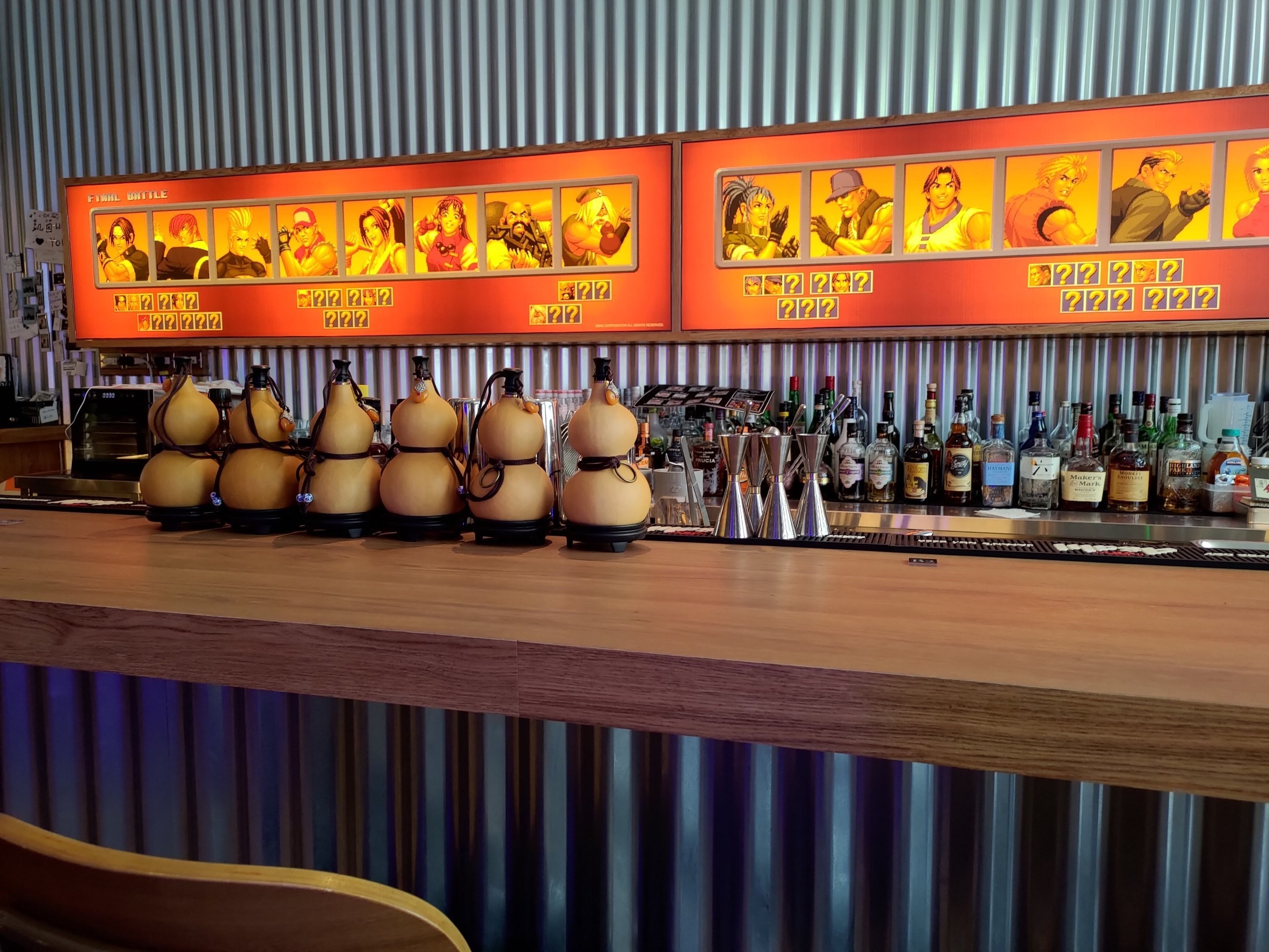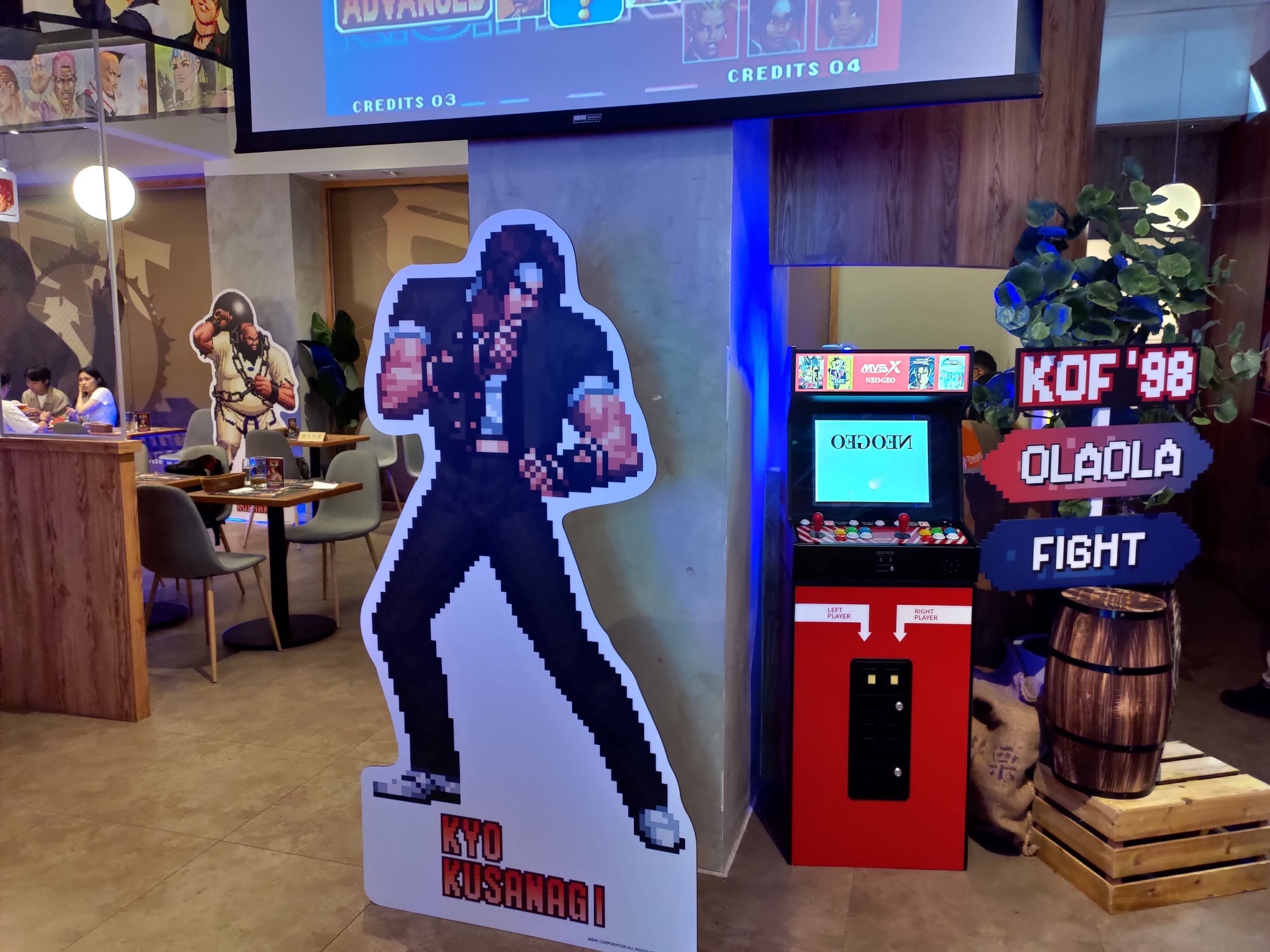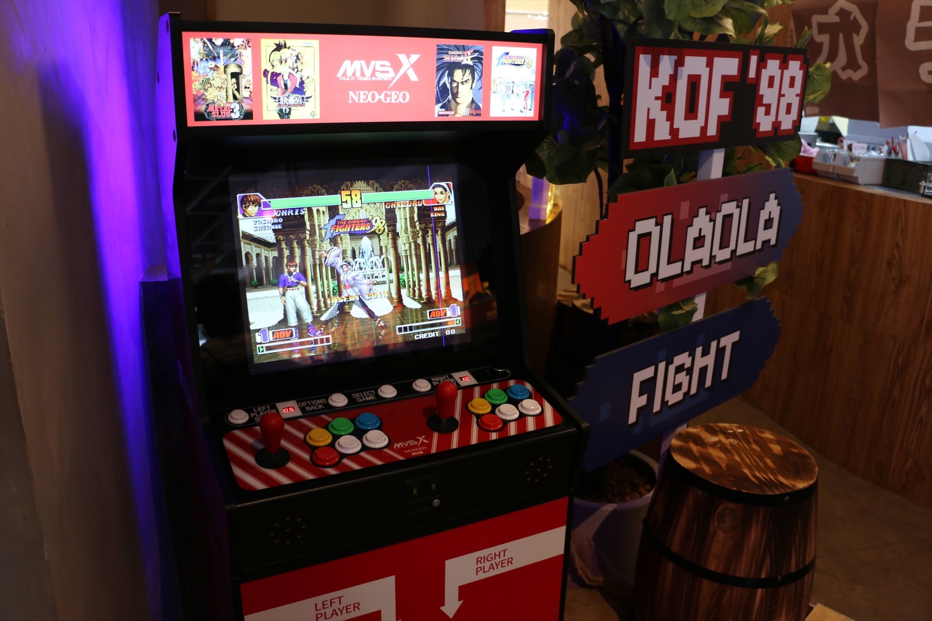 這次「歐拉歐拉オラオラ」餐酒館打造出讓粉絲置身於遊戲世界的氛圍,一進到店內,就可以看到本次對戰成員裝飾,而且還把令人懷念的《拳皇’98》正版授權復古街機搬出來展示,企圖喚起老玩家學生時期在街頭和朋友對戰的回憶。