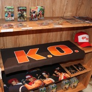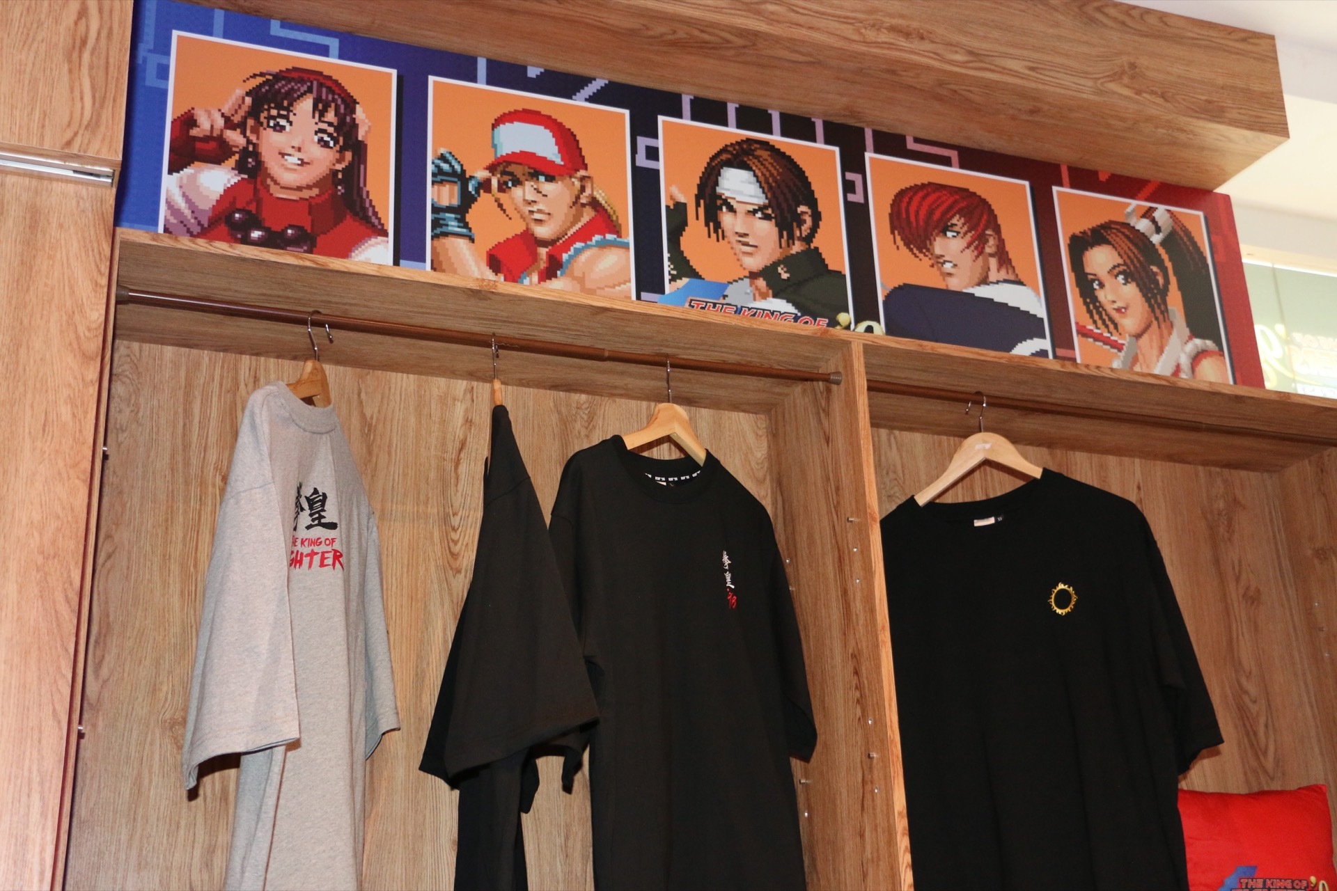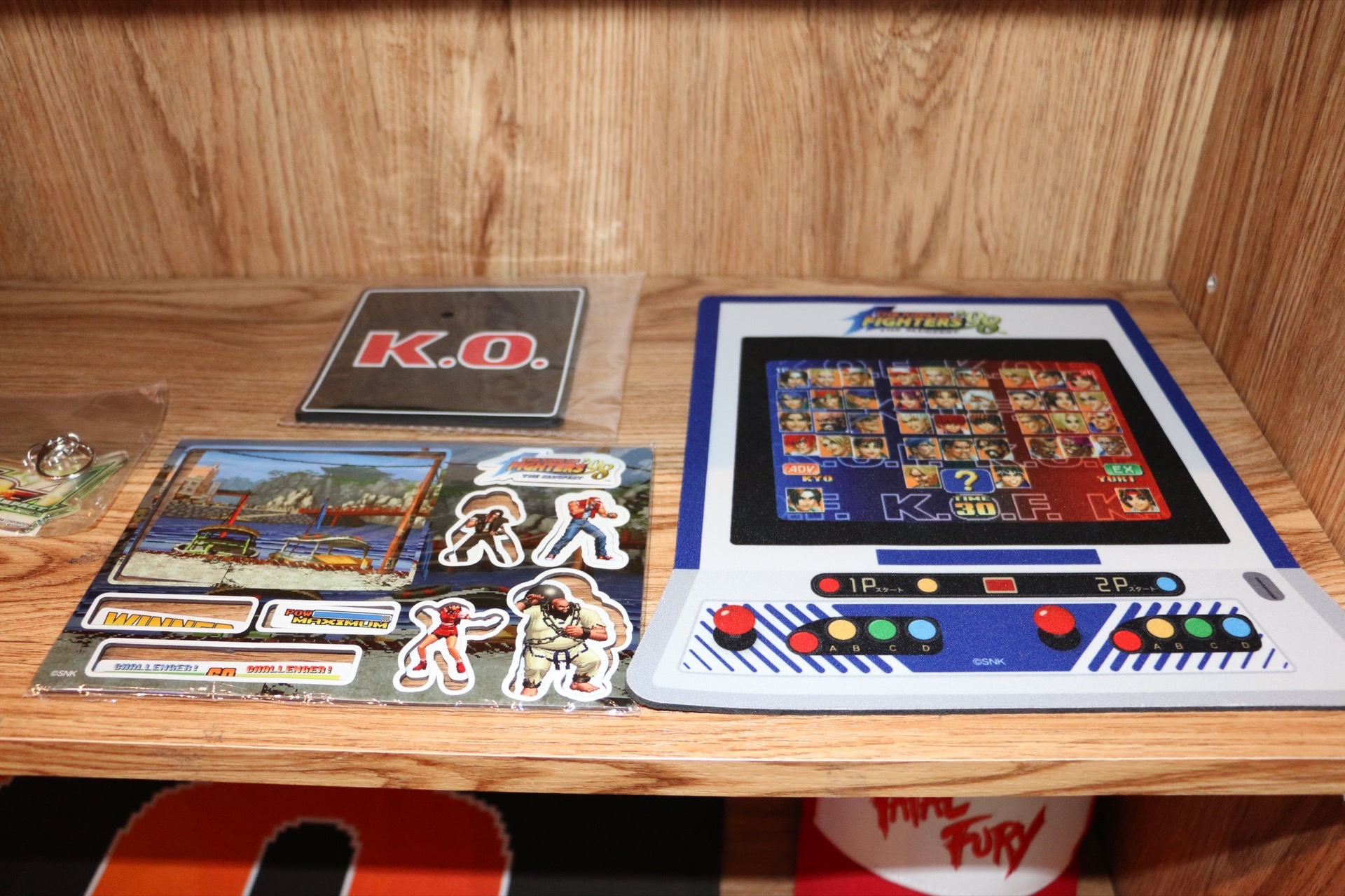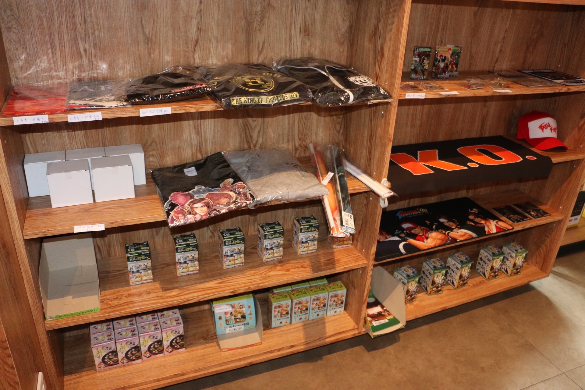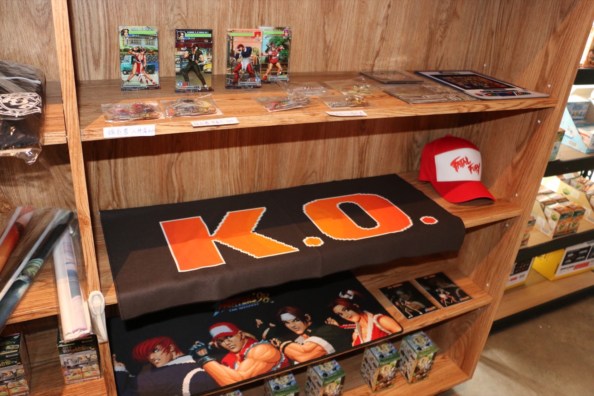 除了餐點以外,餐酒館現場也開放販售、預購全新系列《拳皇’98》合作周邊。由「歐拉歐拉オラオラ」和動漫周邊品牌「FANFANS 粉粉」合作推出的一系列正版授權商品,除了立牌、吊飾外也有許多實用商品,包含不同角色的金屬吊飾、徽章、壓克力立牌、磁鐵,還有 K.O. 毛巾、抱枕、T-shirt、帽子、感溫變色馬克杯等商品。除了現場展售之外,《拳皇’98》系列新品也能於「FANFANS 粉粉」官網預購。