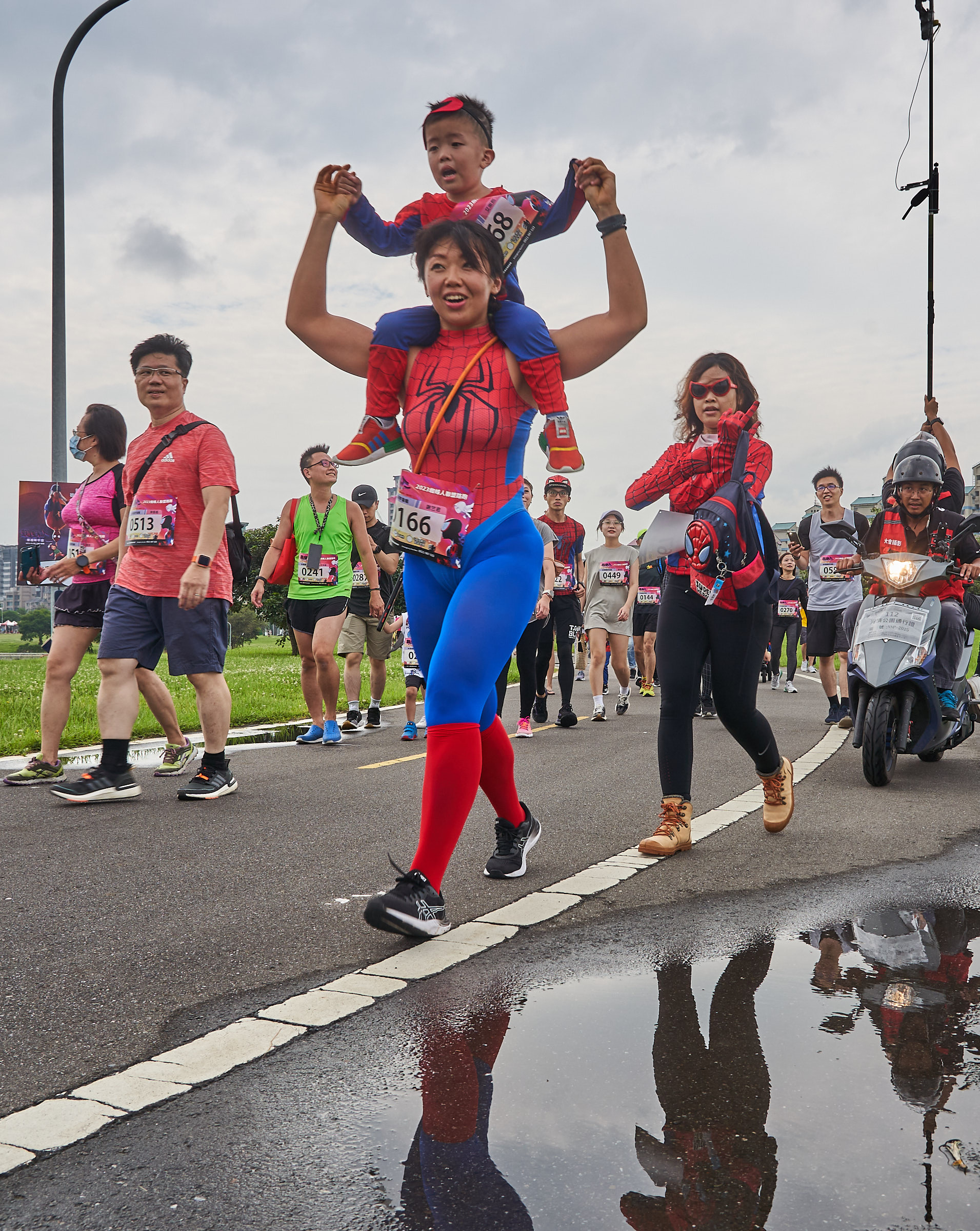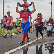 今天參賽者中最引人注目的為全場年紀最小的「跑者」,年僅三個月大的小寶寶也跟著熱情的爸媽跑者來共襄盛舉,本身為超級蜘蛛人狂粉的爸爸,全程揹著嫩嬰一起完成路跑,衝過終點線後他開心的笑道:「這感覺就像電影中的中年彼得 B.帕克一樣,帶著寶寶一起為蜘蛛人聯盟奮鬥,我一直都希望能與小孩分享我喜歡做的事,這次的路跑圓了我作為一個童心未泯爸爸的夢!」