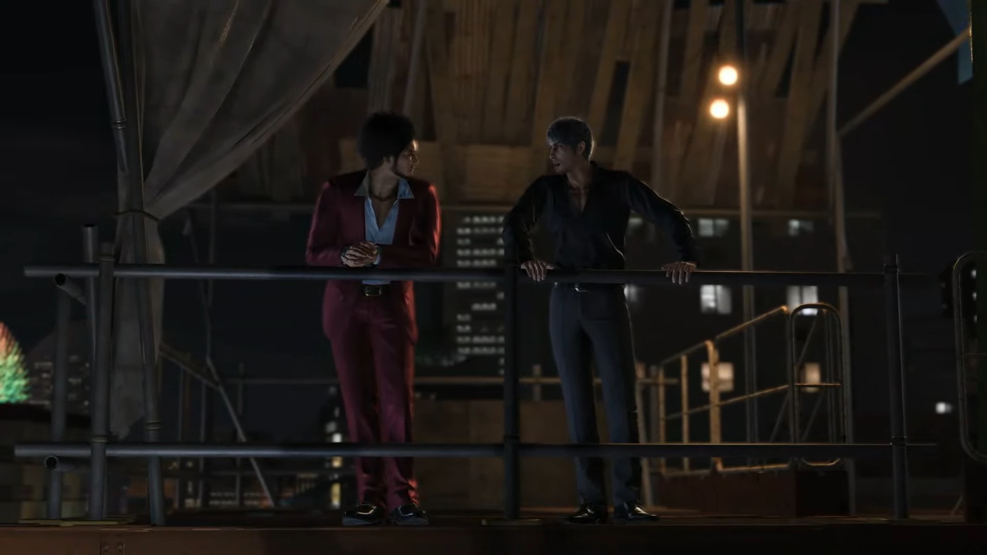 雖說今日沒有公開太多遊戲資訊,不過官方也於發表會過程中公開了春日一番與桐生一馬的對話場景。在對話開頭,春日一番請求桐生一馬幫忙大解散一事收尾後,被桐生調侃沒想到有被春日說教的一天,並且反過來對春日說教,沒想到在故事中春日向紗榮子求婚導致她勃然大怒?!因此春日也向桐生請教是否有什麼好的建議與求婚方法。雖說目前仍無法得知該段劇情將會在何處登場,但兩位主角頗富趣味的對話也讓人備感期待遊戲的推出。