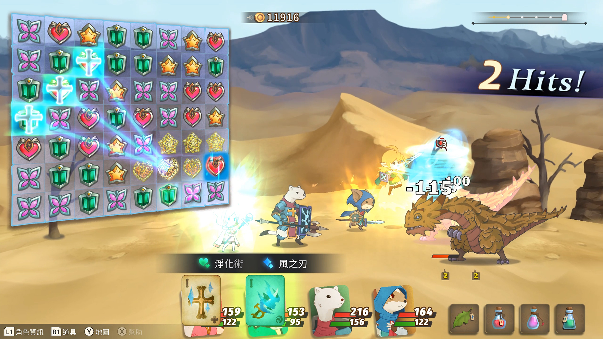 Hero Emblems II》是款融入三消玩法的 2.5D 橫向捲軸回合制日式 RPG。玩家將扮演一支由多個獨特角色組成的黑夜旅團,每位角色都擁有獨特的技能和被動技,並透過三消玩法發動角色戰鬥動作進行連擊、恢復、解除負狀態等,思考及制定最佳策略來擊敗敵人。團隊表示,玩家將於廣大的冒險地圖上探索,可以隨著豐富的主線劇情前進闖關打怪,或到酒館接受 NPC 請託的支線任務拿取獎賞, 沉浸在遊戲世界中。
