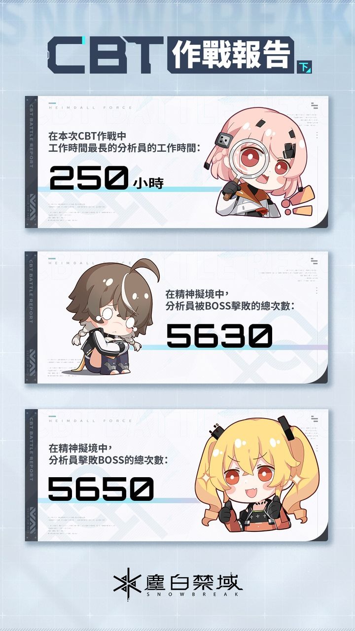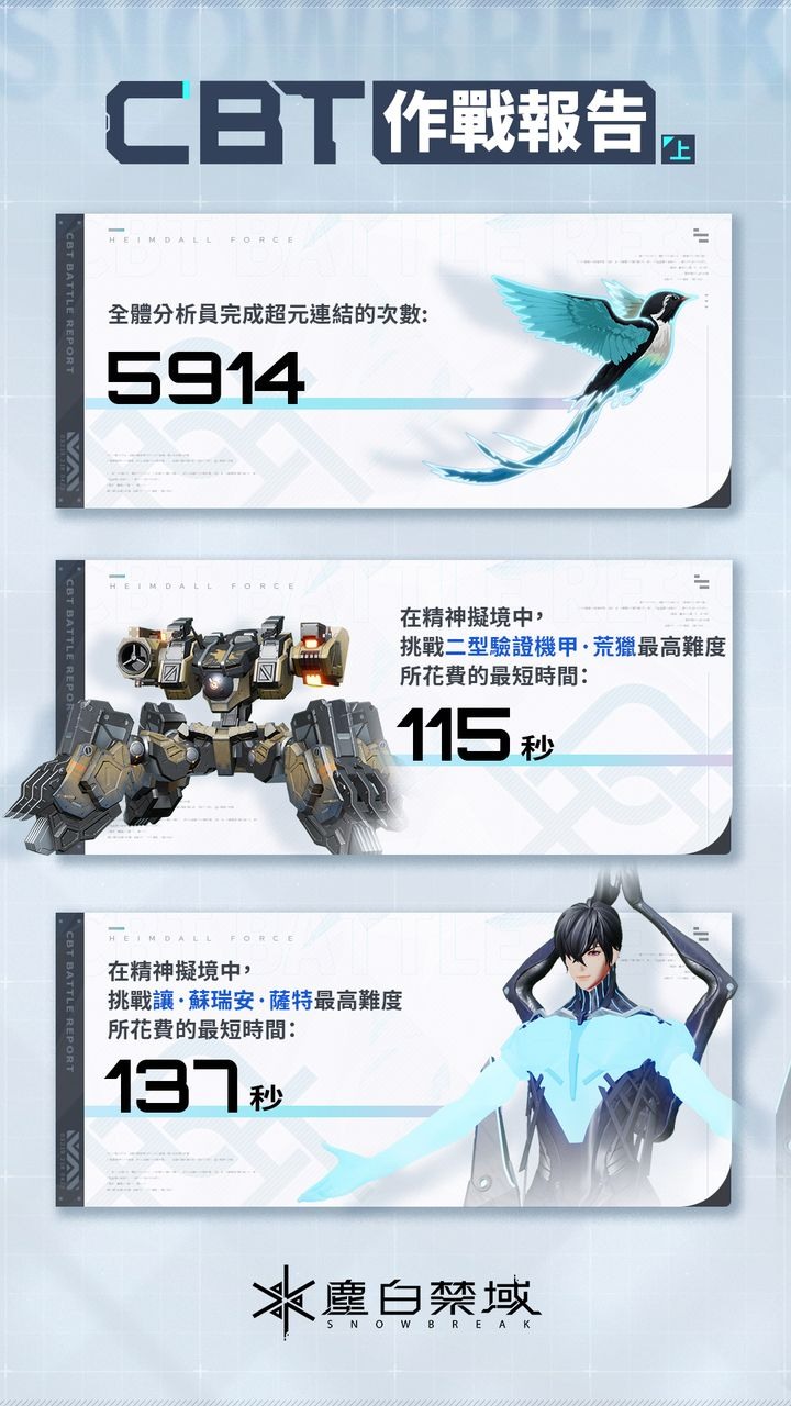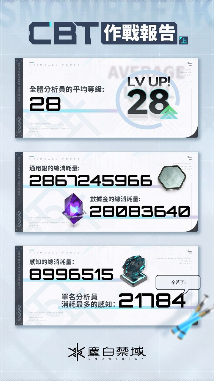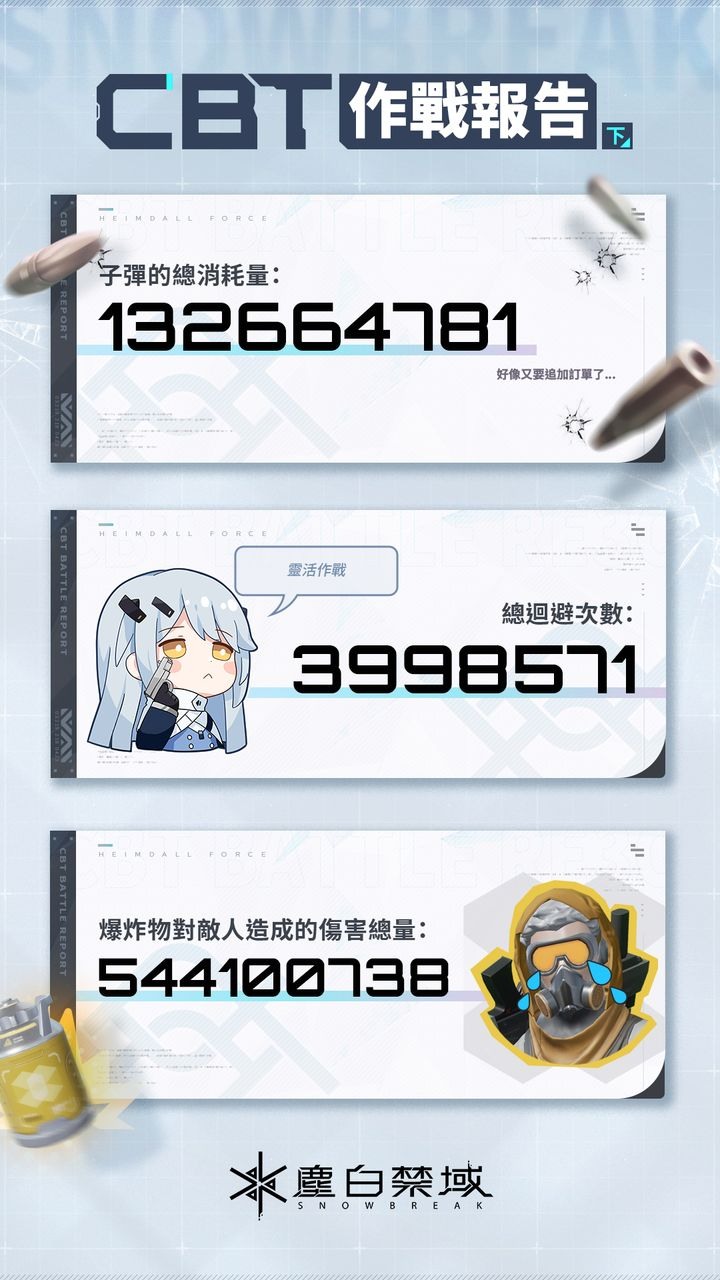 塵白禁域》(iOS / Android / PC)全球 CB 封測已正式落幕,官方收集整理了本次封測過程中的各項趣味數據,供玩家參考。此外,官方將依據封測收集到的反饋建議,擬定一系列最佳化計畫,還將在公測後針對全體玩家送出免費的自選 SSR 角色。同時,瀨戶麻沙美、井澤詩織、相良茉優等人的聲優採訪影片,也正在官方社群平台陸續公開。