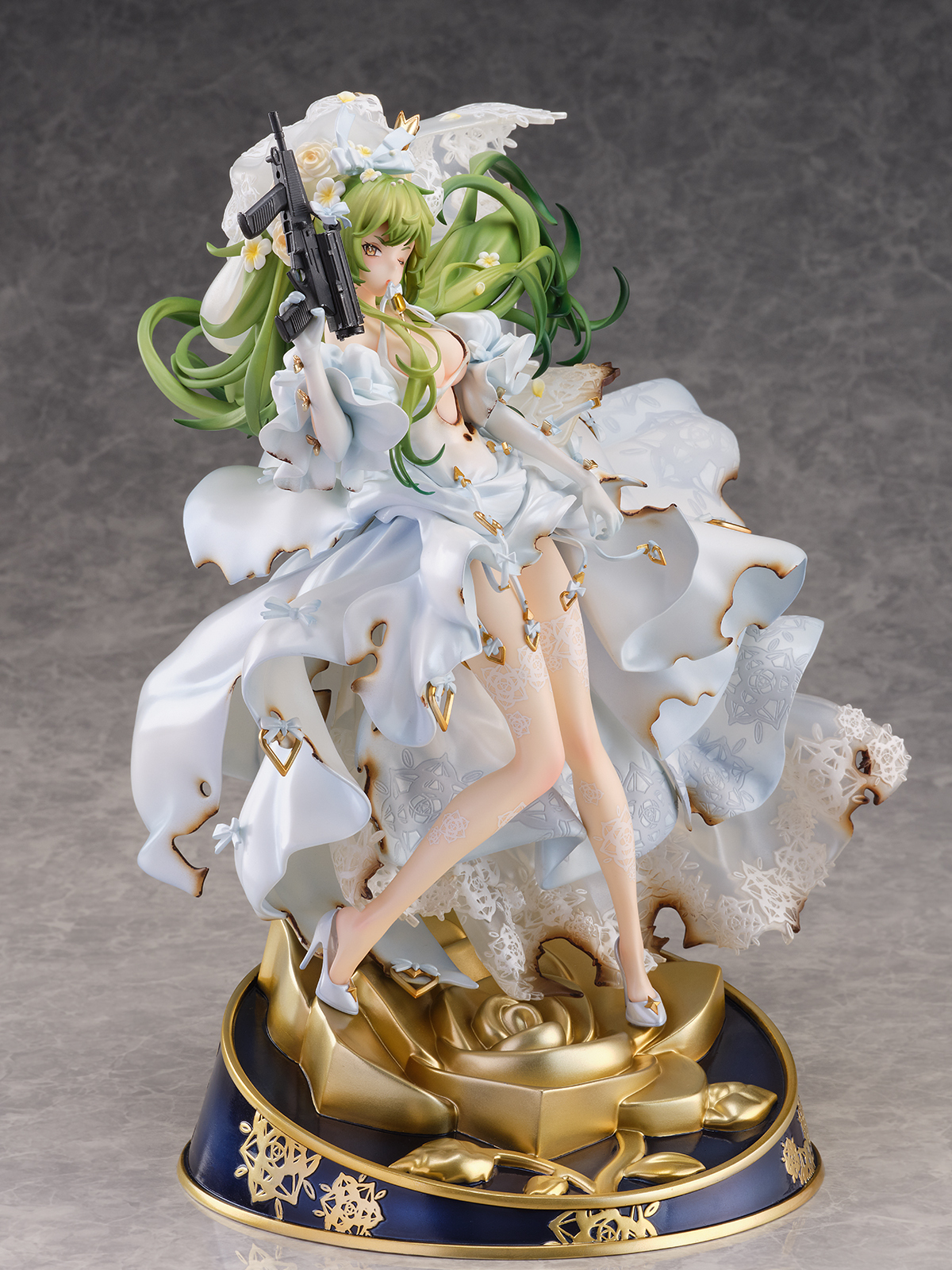》主題採購活動「未聞花語」中實裝的限定裝扮「M950A 柳鶯與薔薇」重傷時的姿態進行立體化,推出 1/7 比例模型。模型再現了插畫中破損的婚紗隨風大力飄動的衝擊感,受到傷害而突顯出的身體比例、白皙透亮的肌膚與燒焦的裙擺所產生的對比等,還原了眾多原圖的亮點。此外,本商品將附贈立體的薔薇底座,襯托出「M950A」的美麗及增添高級感。