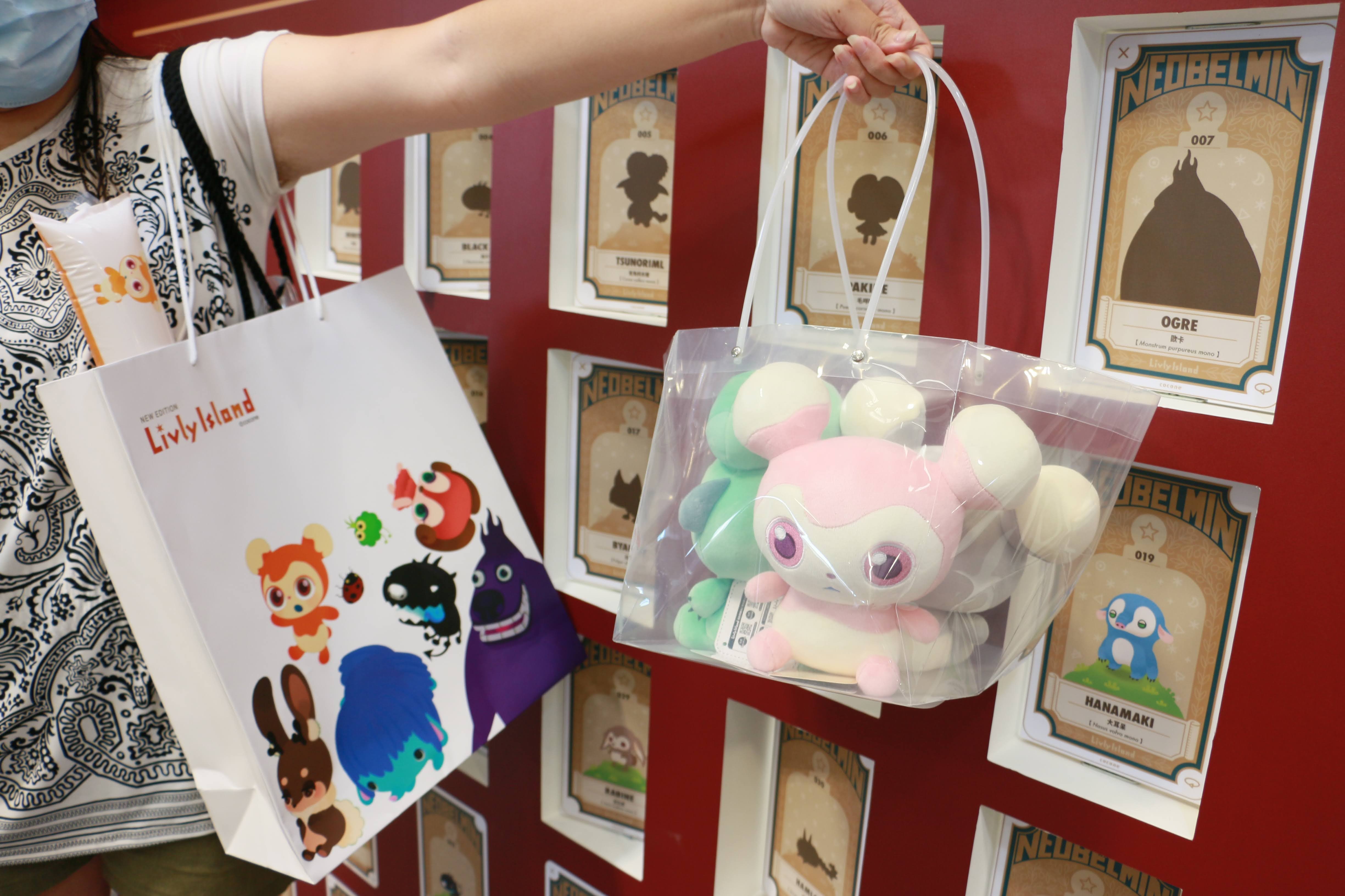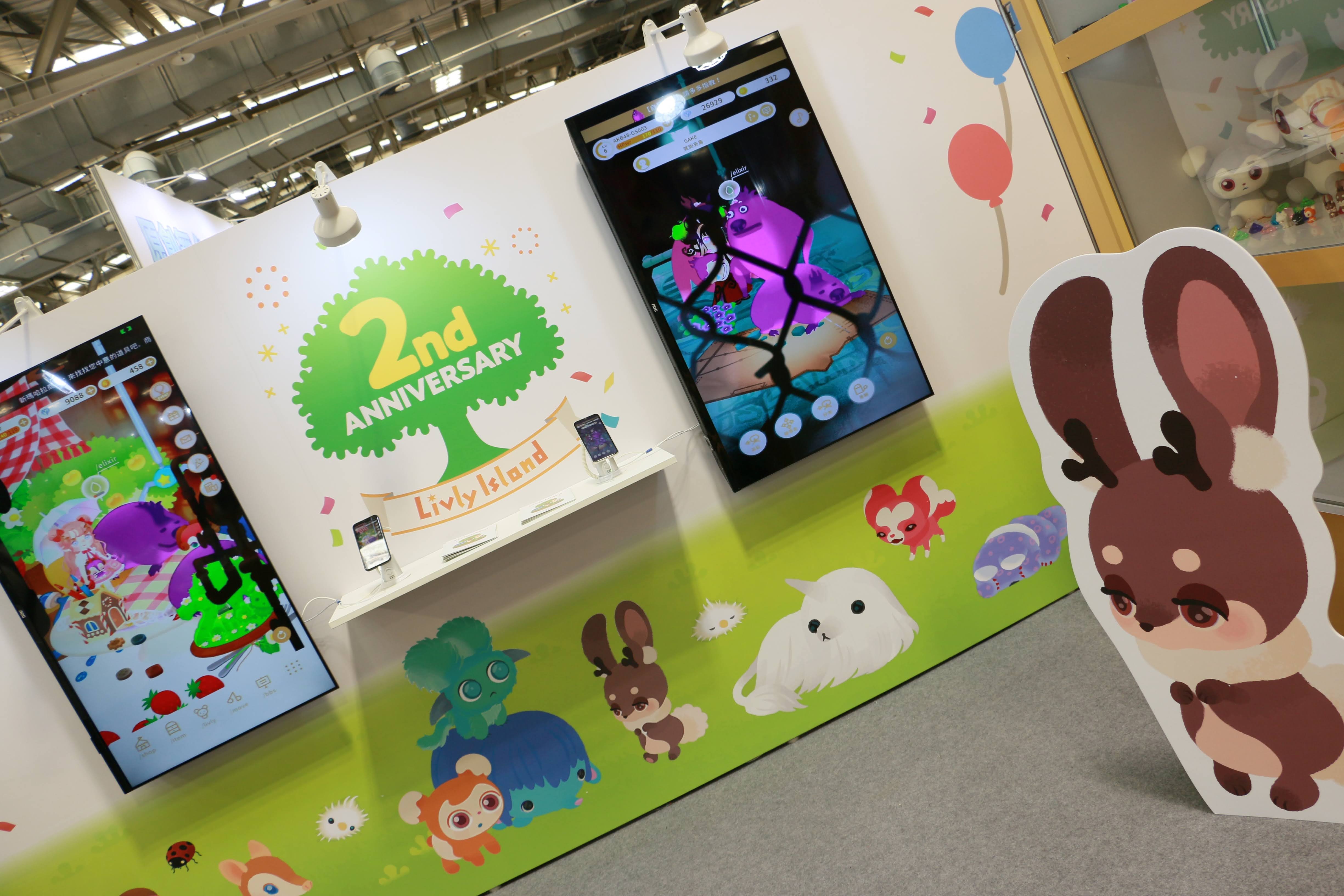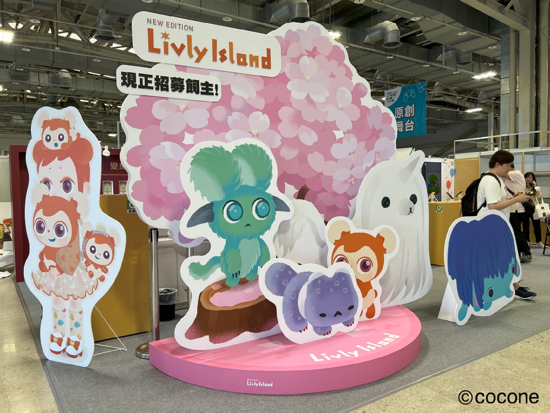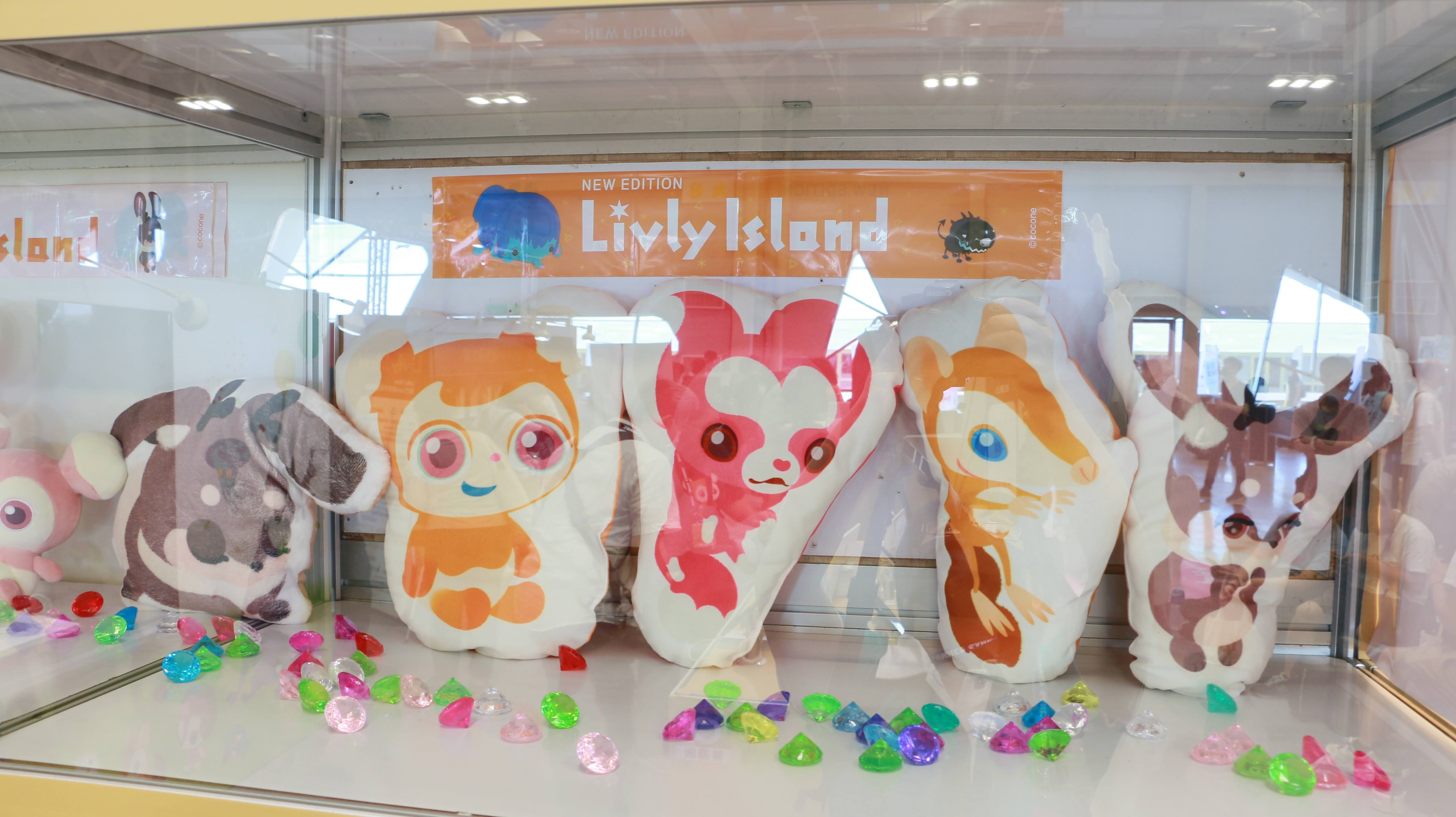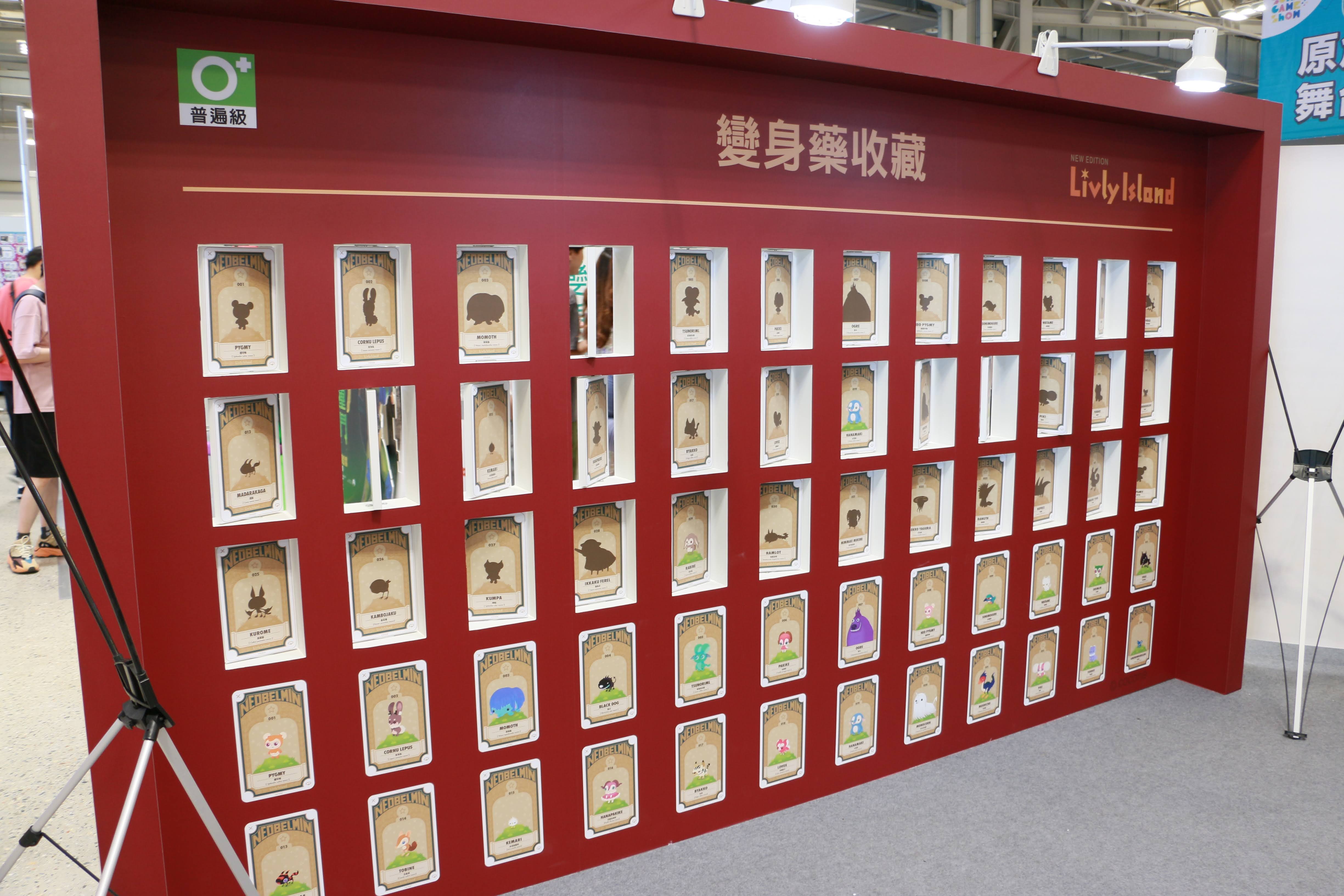 本次攤位上除了能與放大為真人比例的大型櫻花樹和 Livly 合照,也可以實際翻轉體驗 APP 內變身藥所組成的牆面,還有試玩區、小島回顧區以及日本限定周邊商品展示區等。在超大型的 Livly 變身藥配方牆,眾多玩家參觀翻轉著各種特別的 Livly 並分享彼此的飼養過程,更讓玩家眼睛一亮的就是日本空運來台展示的限定 Livly 周邊商品。