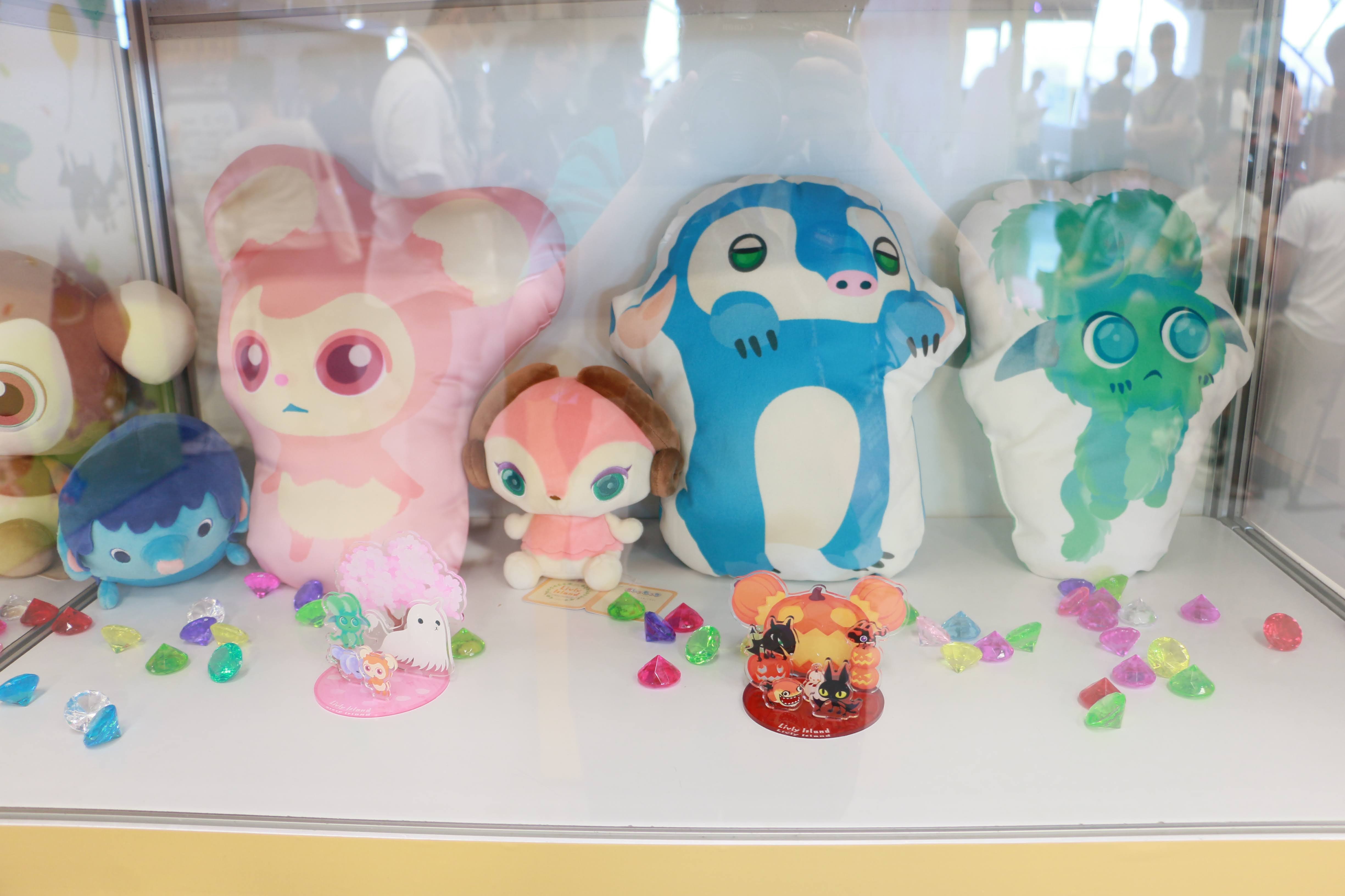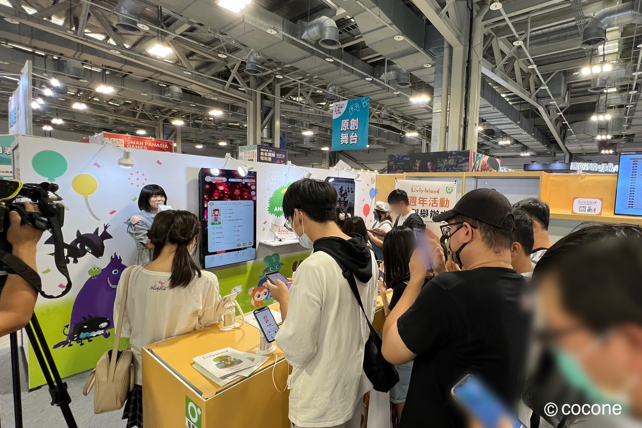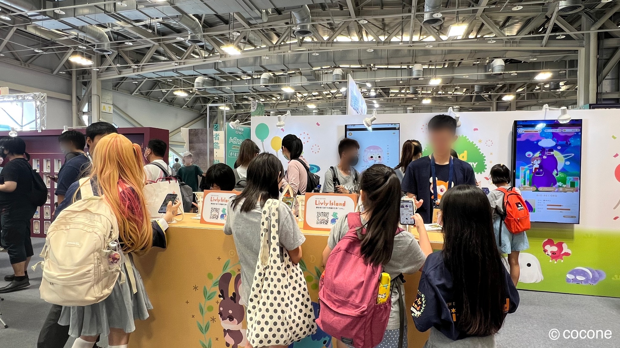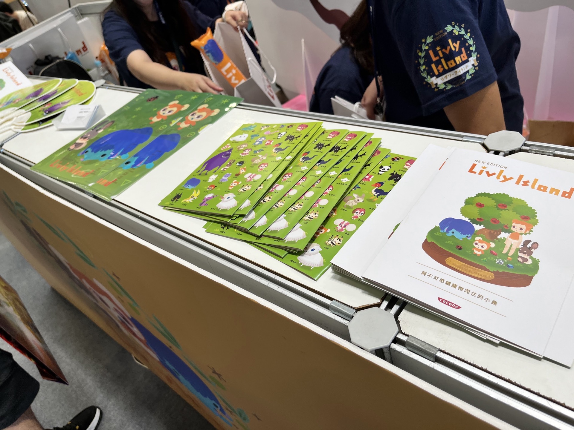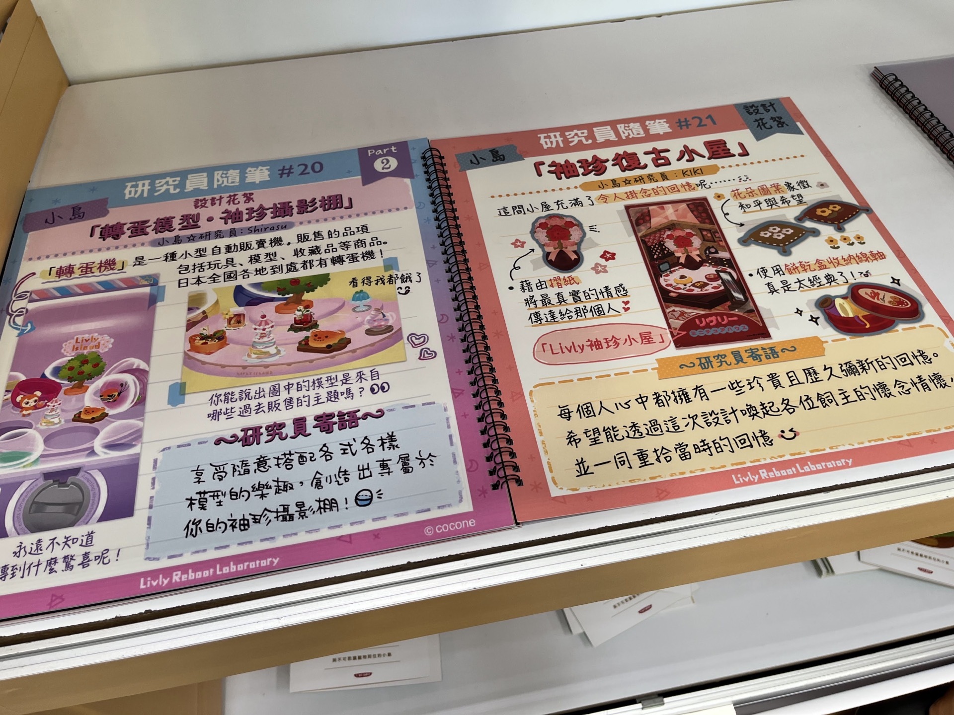 本次攤位上除了能與放大為真人比例的大型櫻花樹和 Livly 合照,也可以實際翻轉體驗 APP 內變身藥所組成的牆面,還有試玩區、小島回顧區以及日本限定周邊商品展示區等。在超大型的 Livly 變身藥配方牆,眾多玩家參觀翻轉著各種特別的 Livly 並分享彼此的飼養過程,更讓玩家眼睛一亮的就是日本空運來台展示的限定 Livly 周邊商品。