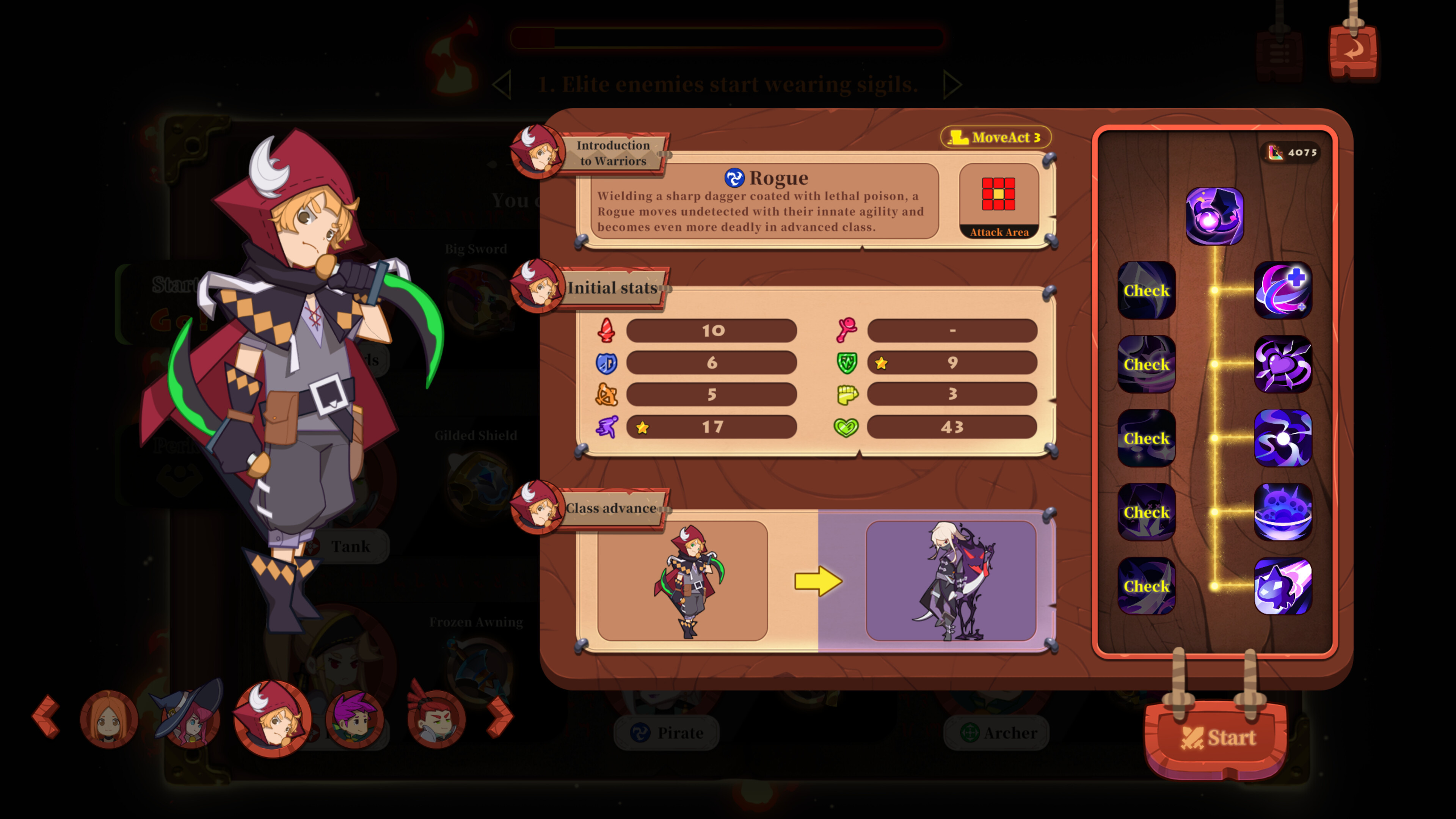 在遊戲中,玩家可以選擇從三大派系(近戰、遊走、遠程)和九種職業(劍士、重甲、騎士、遊蕩者、拳師、牧師、法師、弓手和船長)中組建自己的角色陣容,每種職業都擁有獨特的技能和戰鬥特色。玩家可以藉由升級、獨特的主動技能、紋章效果和天賦系統來提升角色的能力和戰鬥力,或是透過如藥水、寵物等道具來提升額外的能力和效果。