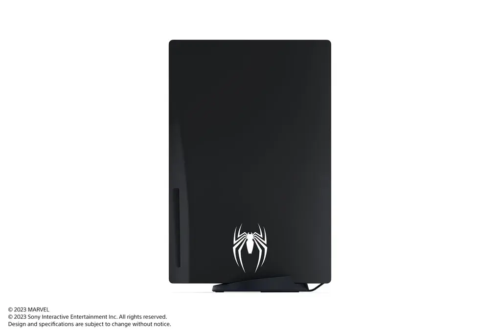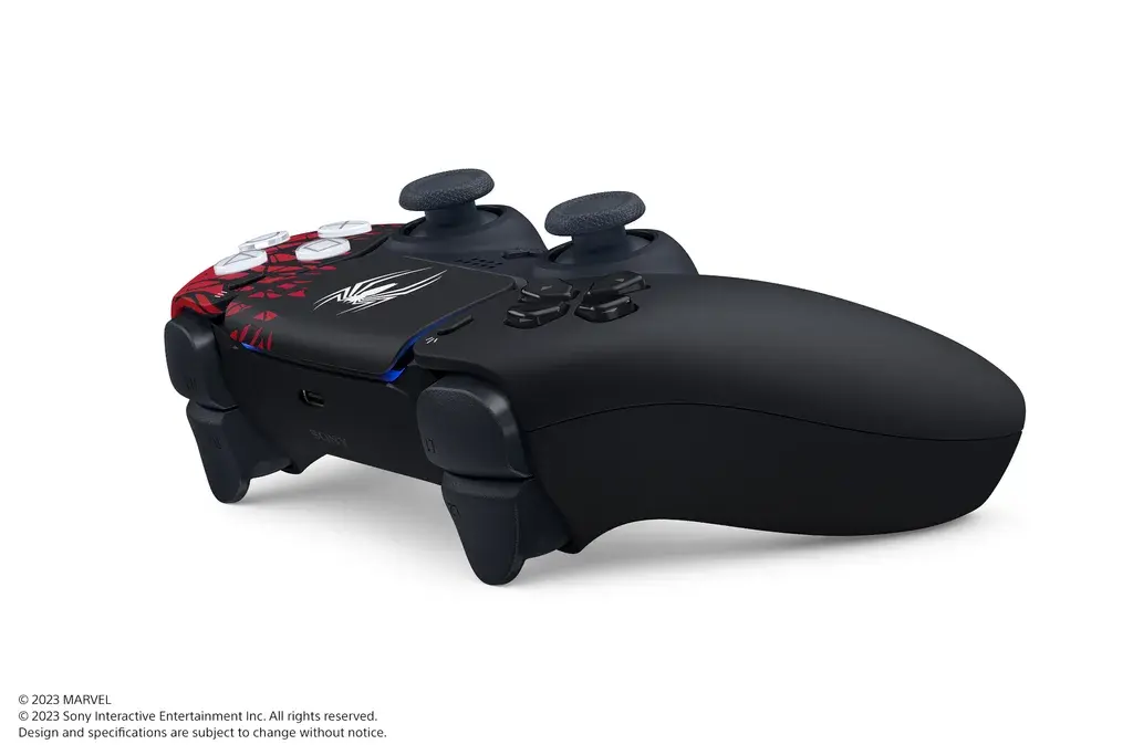 漫威蜘蛛人 2》主題限量特別款式 PS5 主機與 DualSense 無線控制器套組。以黑色的共生體逼近白色的蜘蛛人標示為概念,在紅黑雙色圖樣上以白色標誌點綴。而已經入手 PS5 主機的玩家,也可以單獨購買《
