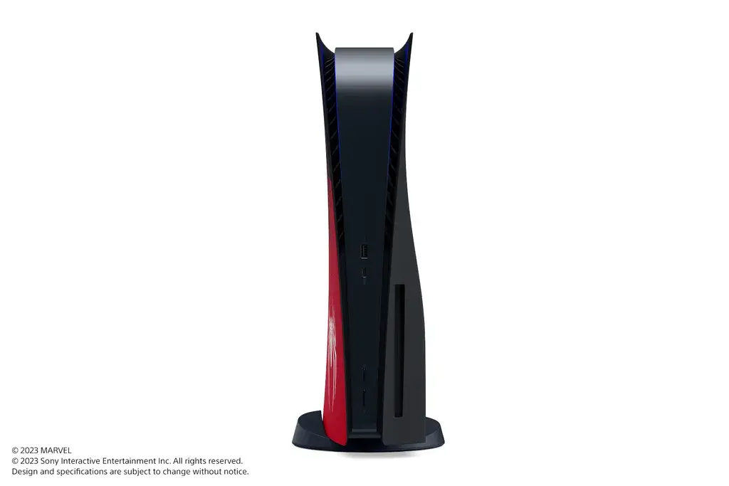 漫威蜘蛛人 2》主題的主機護蓋與 DualSense 無線控制器來搭配。