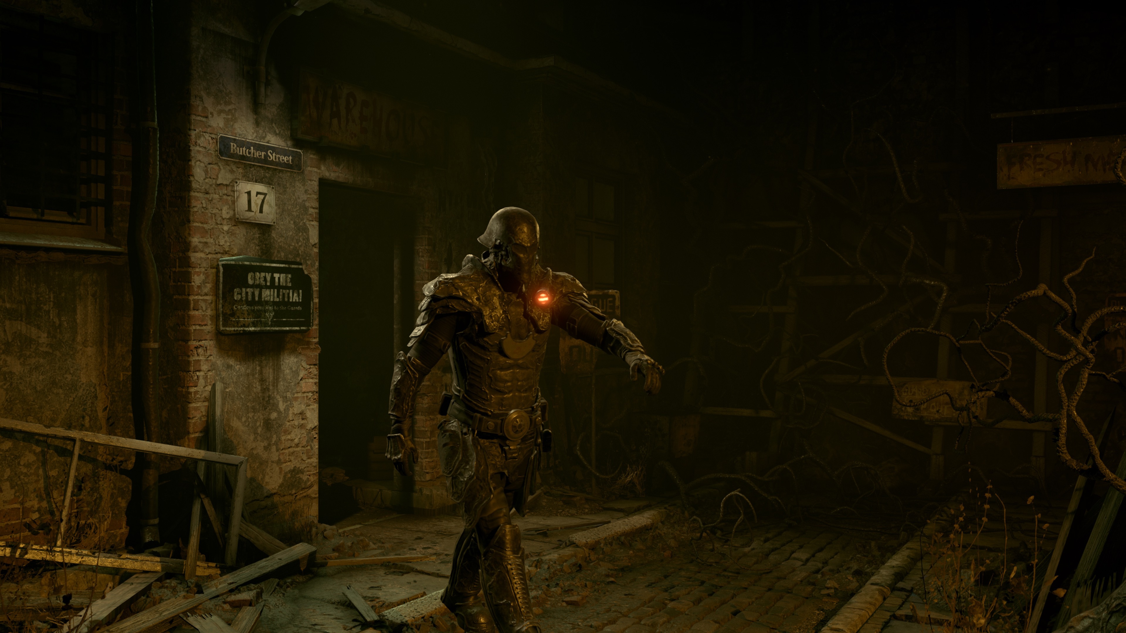 詭門世界,由邪神僕役施行高壓統治的怪誕社會。於褻瀆世界中,每個人都躲藏在面具背後。這兩面代表著生與死。玩家要打造你自己的面具以獲得新技能且提升能力,或換一個面具去潛入、欺騙你的敵人,偽裝成你的對手。