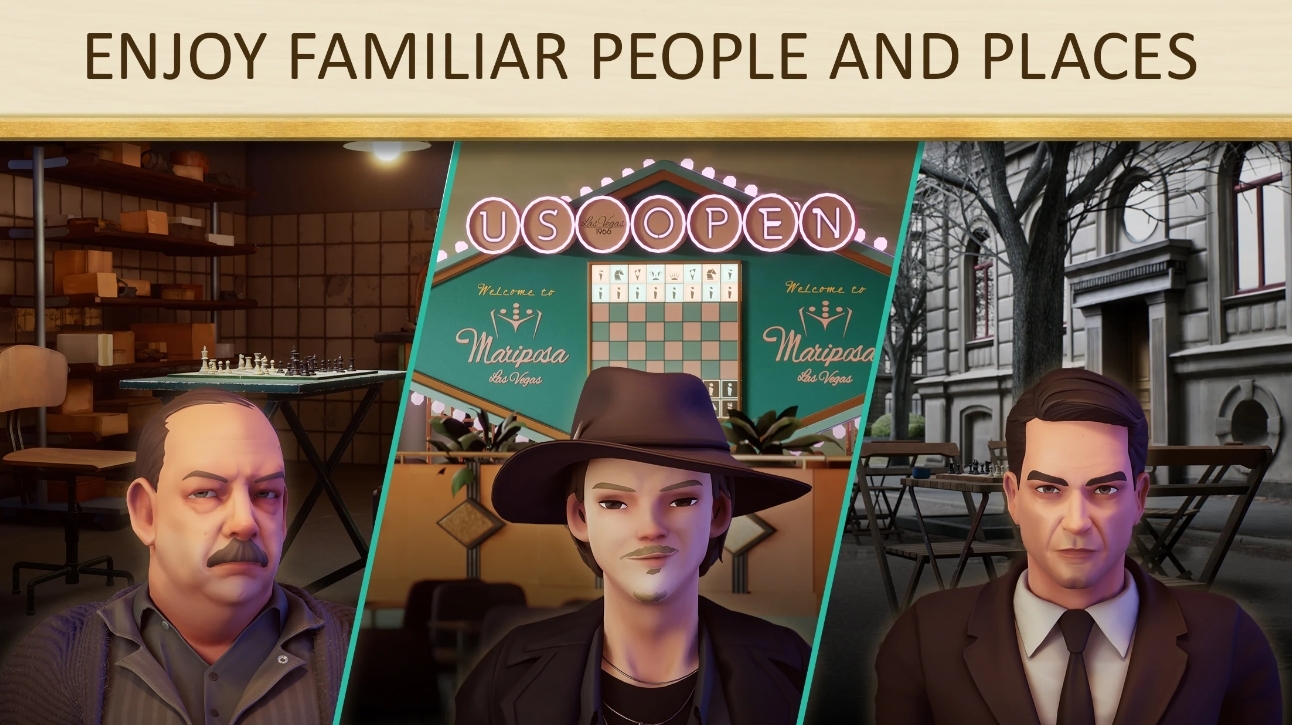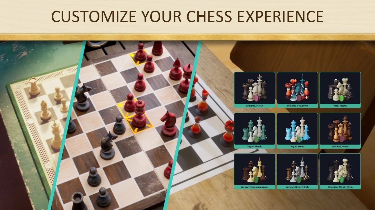 玩家可以和好友進行對局,或挑戰思路縝密的 AI,而 AI 將模仿你最愛角色的西洋棋水準與風格。