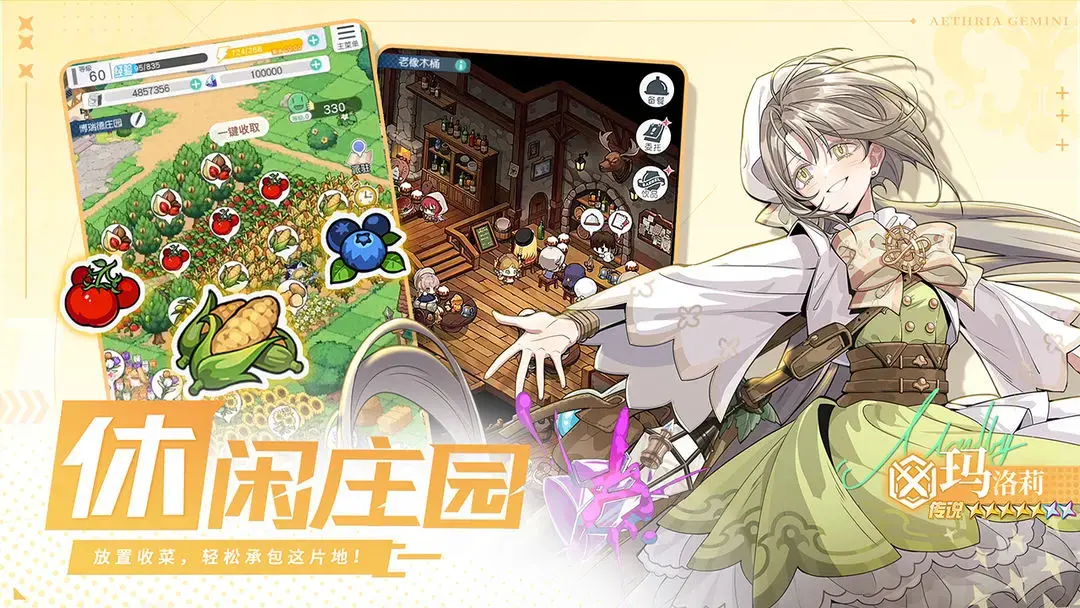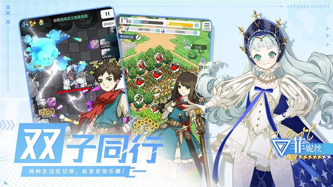 而玩家將扮演雙子角色,其中一個被認定具有極高的冒險天賦,於是踏上了外出冒險的旅程。另一個打理莊園,隨心播種,輕鬆收穫,並到市場裡交易資源,做冒險團最強大的後盾。一個遊戲,兩種人生,冒險種菜兩手抓。