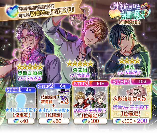 《夢 100》全新覺醒硬幣活動「對你施展無法解開的魔法」正式開放,即日起至 2023 年 8 月 13 日進行活動任務即可獲得 SP 王子「★5 派提爾」、「★4 安魯馬利」與豪華獎勵!另可於抽池內獲得「★5 齊艾爾」、「★5 奧斯瓦爾德」、「★4 伊凡」SP 王子,另開啟 STEP 召喚抽池,達到第 3 階必可遇見活動 Ver. 王子;本次召喚附贈露娜寶石,該寶石達指定數量可至交換所直接兌換活動 Ver. 王子殿下!