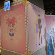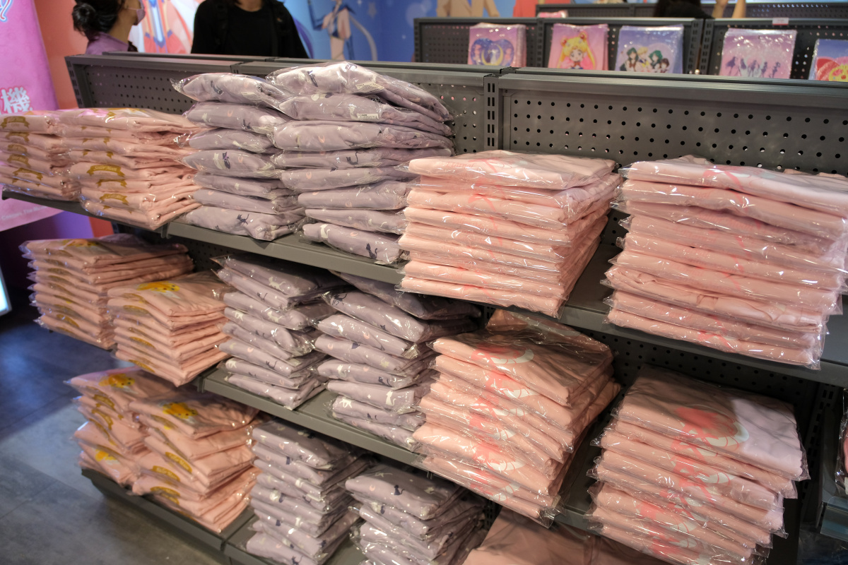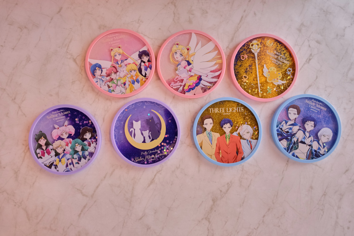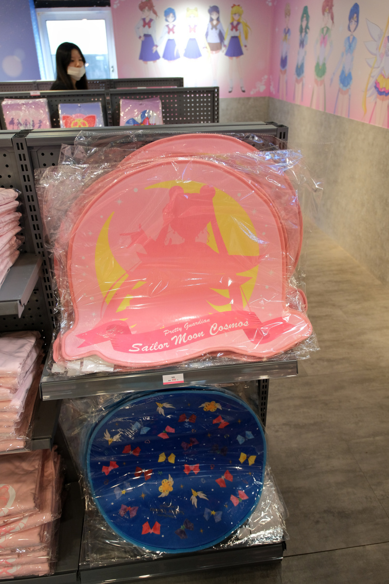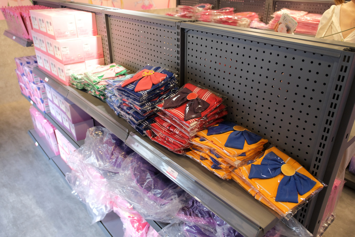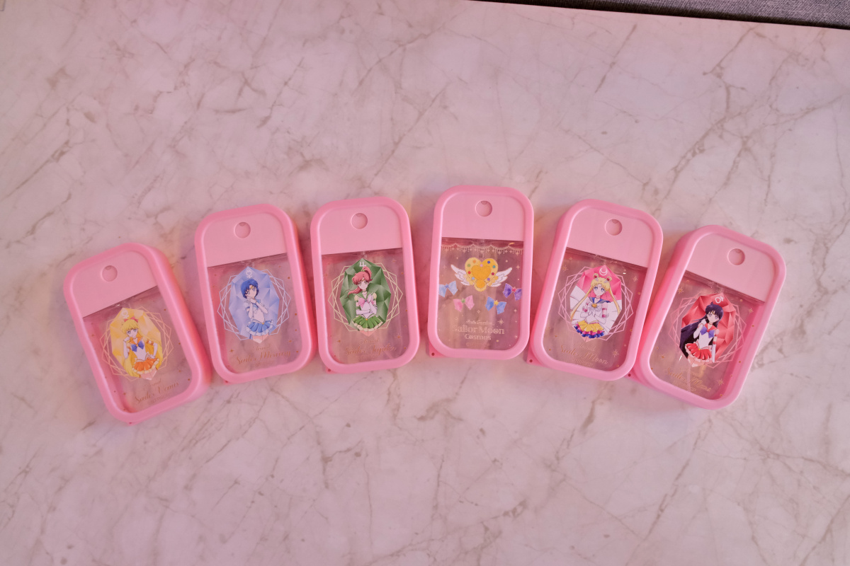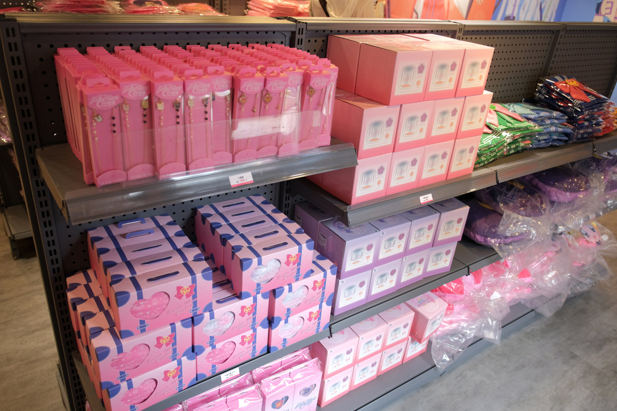 周邊商品的部分,這次的期間限定店則是有著露娜剪影或道具圖案的小型行李收納箱、共有五戰士及變身器等道具圖案可選擇的噴霧瓶、扇子、飾品、雕花玻璃杯或者是保溫瓶等實用周邊於活動登場。