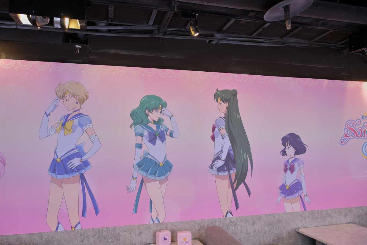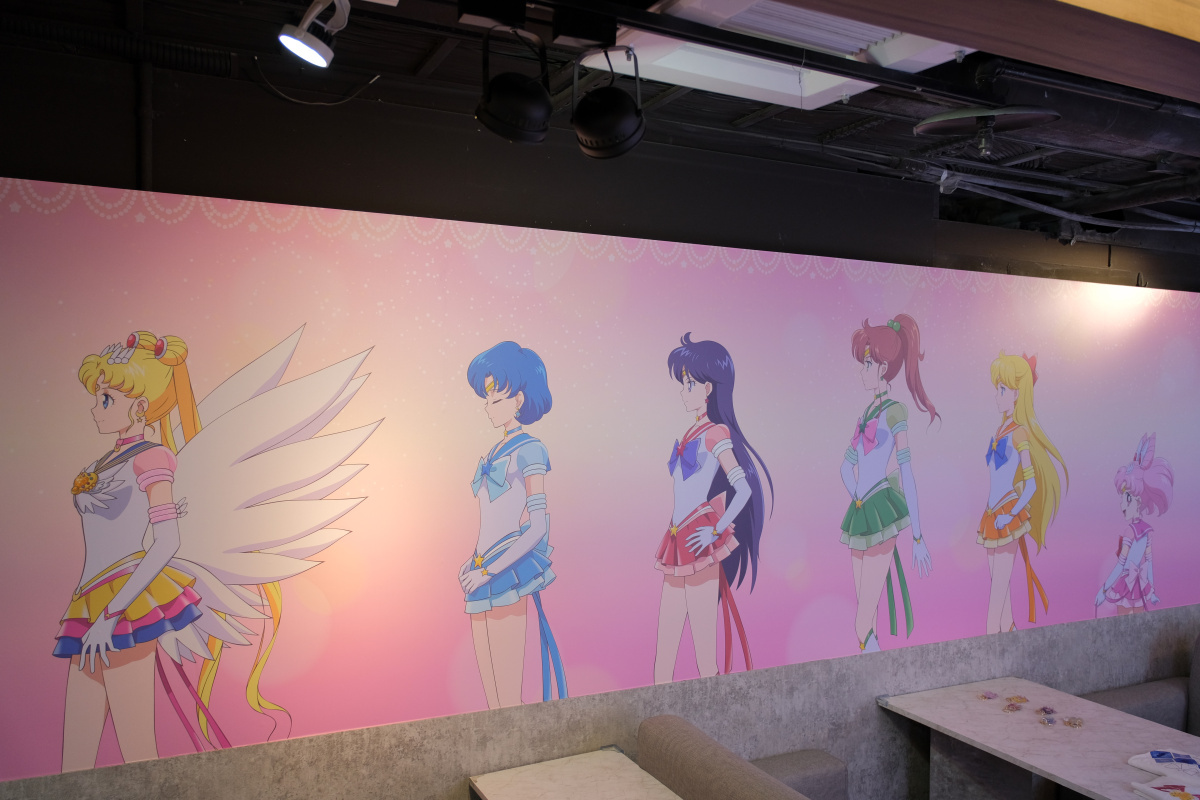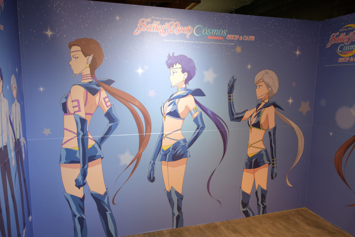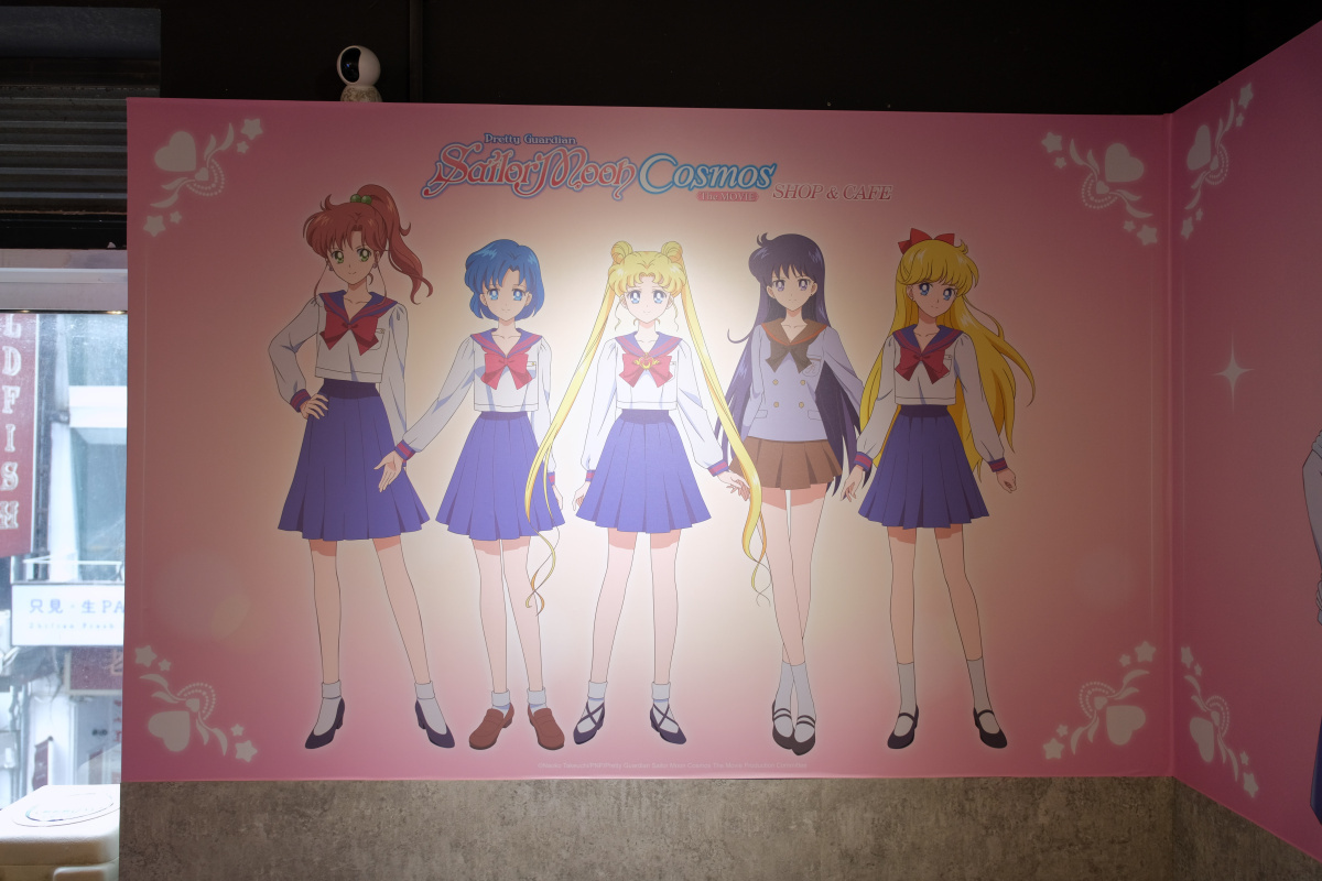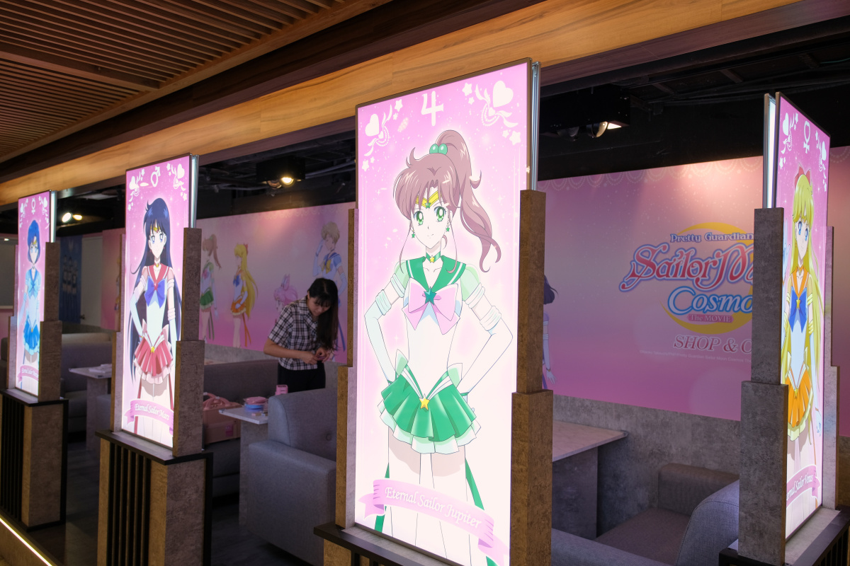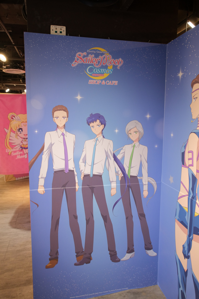 「劇場版 美少女戰士 Cosmos shop & café 期間限定店」打卡點分成水手五戰士、水手十戰士、露娜、阿爾特米斯、黛安娜到水手星光戰士等四大元素,入口處也有等身高的「水手五戰士立牌區」,另外還有像是「水手五戰士 Q 版」及「水手五戰士學生制服」等打卡牆,水手十戰士則有現身餐飲區的「水手十戰士側身」打卡牆及「主視覺」牆面陪你共進下午茶,商售區還有兩處一字排開「水手十戰士」打卡牆。以前顯少出現的水手星光戰士也有「水手星光戰士戰鬥服」及「星光三人組西裝」等兩區打卡區,用餐區還有 7 面海報屏風有水手十戰士和水手星光戰士的角色海報登場。