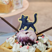 在餐點的部分,則是有著水手星光戰士耳麥變成的造型蛋糕、還有以永恆水手月亮為主有著蝴蝶結造型巧克力以及兩款鬆餅,兩球冰淇淋搭配上永恆水手月亮或是露娜及阿爾特米斯插牌。氣泡飲共有水手五戰士、小小兔及水手星光戰士等七款選擇,將會額外贈送飲料提袋。霜淇淋則是有草莓及香草兩種口味,杯子上印有水手星光戰士及火球公主兩選擇,隨機贈送實用小湯匙。而蜜糖吐司則是搭配草莓或葡萄兩種冰淇淋,還有月野兔或露娜&阿爾特米斯造型紙卡,吃上一口滿滿都是幸福啊。雞蛋糕這次則是有著永恆月光變身盒、戰士服的蝴蝶結及水手星光戰士的水晶等造型。