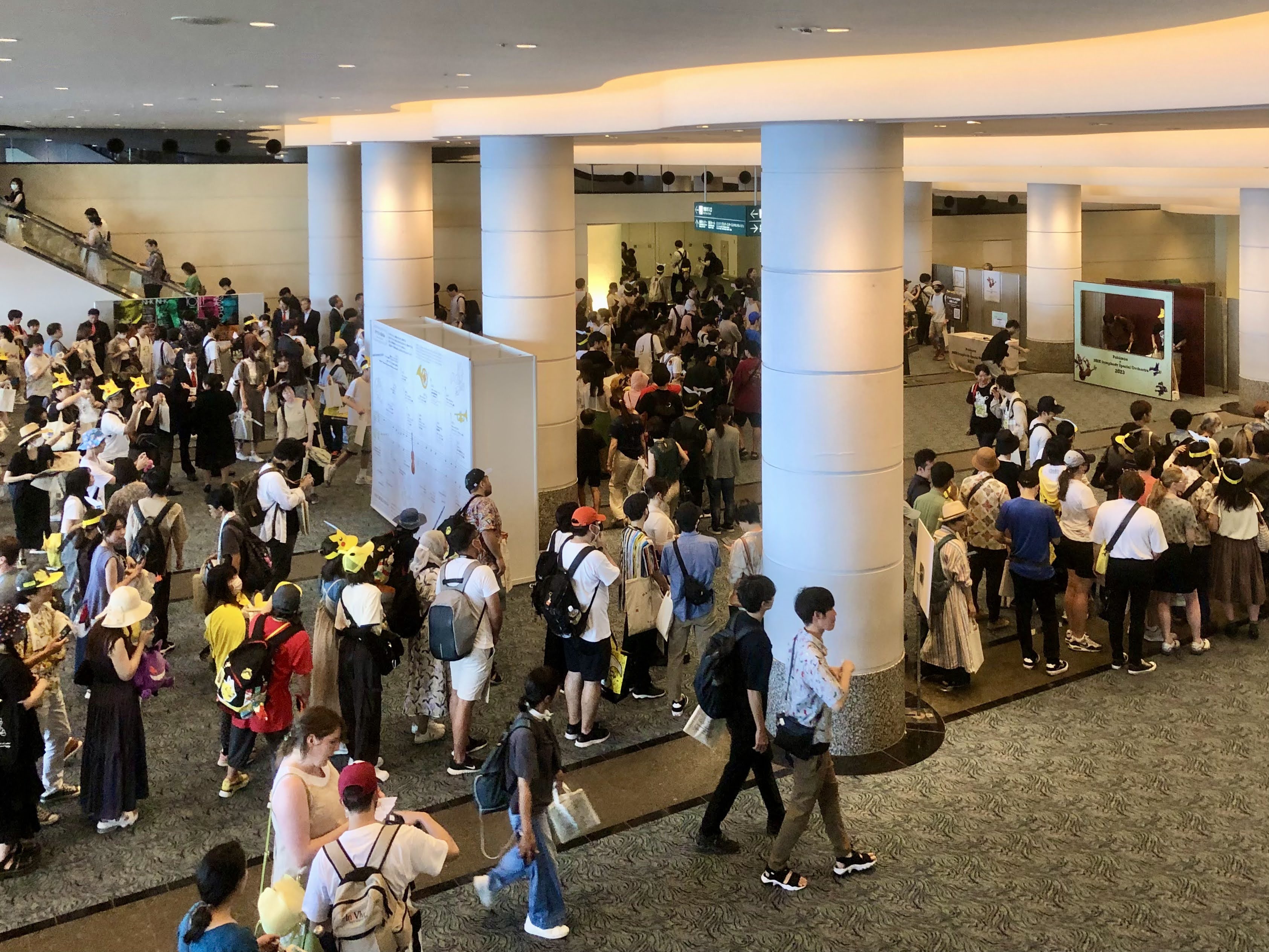 音樂會的時程是 2023 年 8 月 10 日 14:00 入場、15:00 開始演奏,筆者本身是跟朋友住在橫濱車站附近的飯店,逛完附近的寶可夢中心橫濱店之後直接搭東京 Metro 到「港未來站(みなとみらい駅)」。從橫濱車站還感受不到這次寶可夢世界錦標賽的氣氛,一到港未來站下車直接看到世界賽形象圖,甚至往 PACIFICO 橫濱方向也會慢慢開始有明顯的指引和寶可夢卡片裝飾和形象圖出現,讓人逐漸心生雀躍。