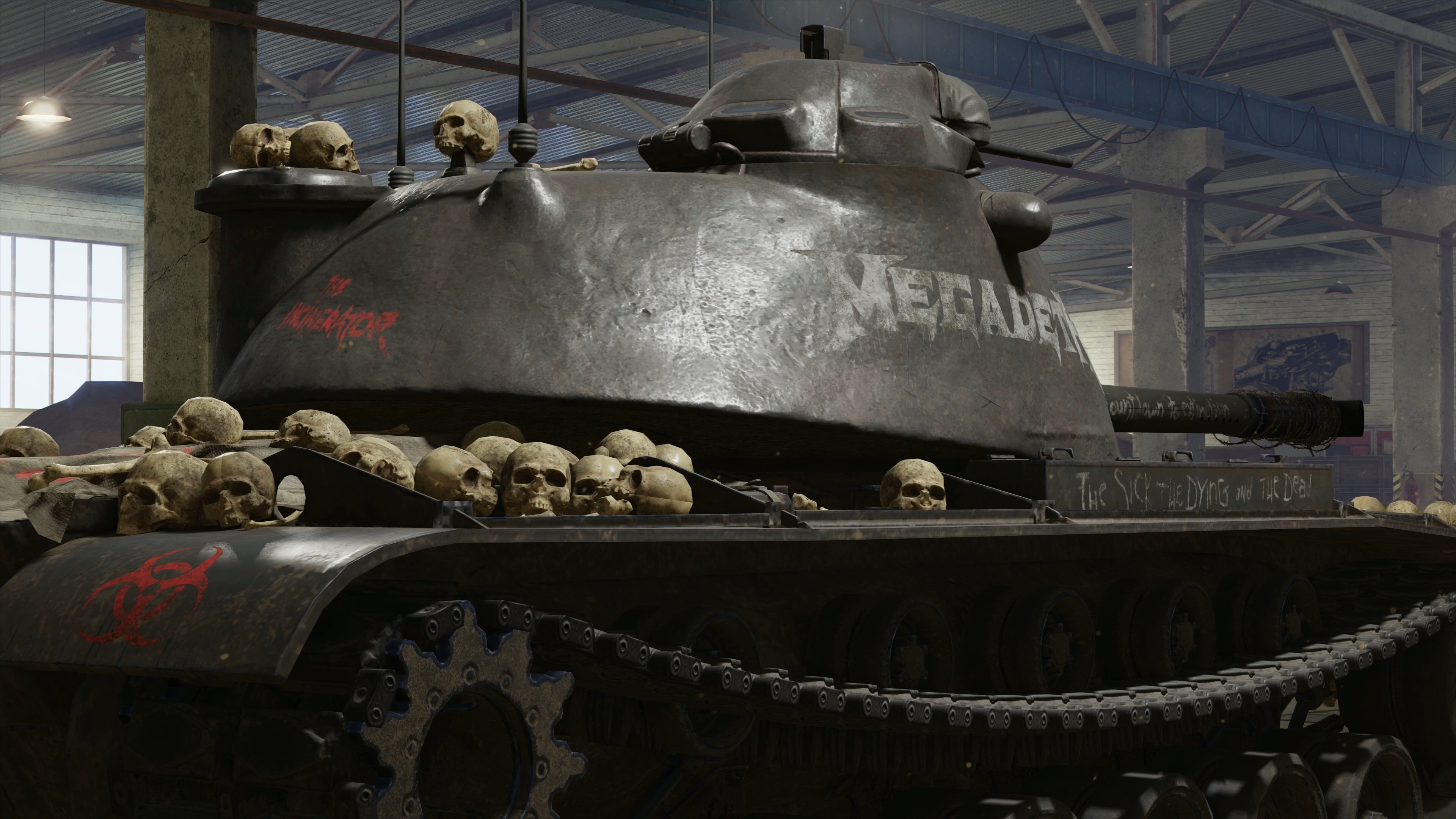 戰車世界 》家用主機版玩家將能解鎖多樣 Megadeth 主題的獎勵。兩款以專輯為設計來源的戰車將於加值商店中首次亮相;Vic Rattlehead 將化身為 3D 指揮官,而 Dave Mustaine、James Lomenzo、Dirk Verbeuren 和 Kiko L
