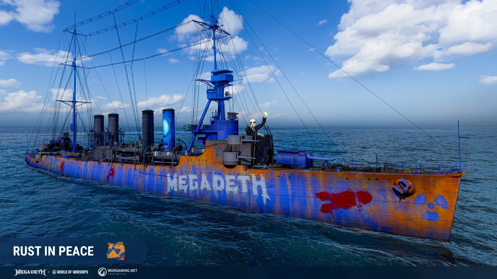 戰艦世界 》中推出兩款 Megadeth 主題組合包,其中一款為 Megadeth: Set the Seas Afire 組合包,裡面包含以 Rust in Peace 專輯封面為設計靈感的 Rattlehead 巡洋艦。