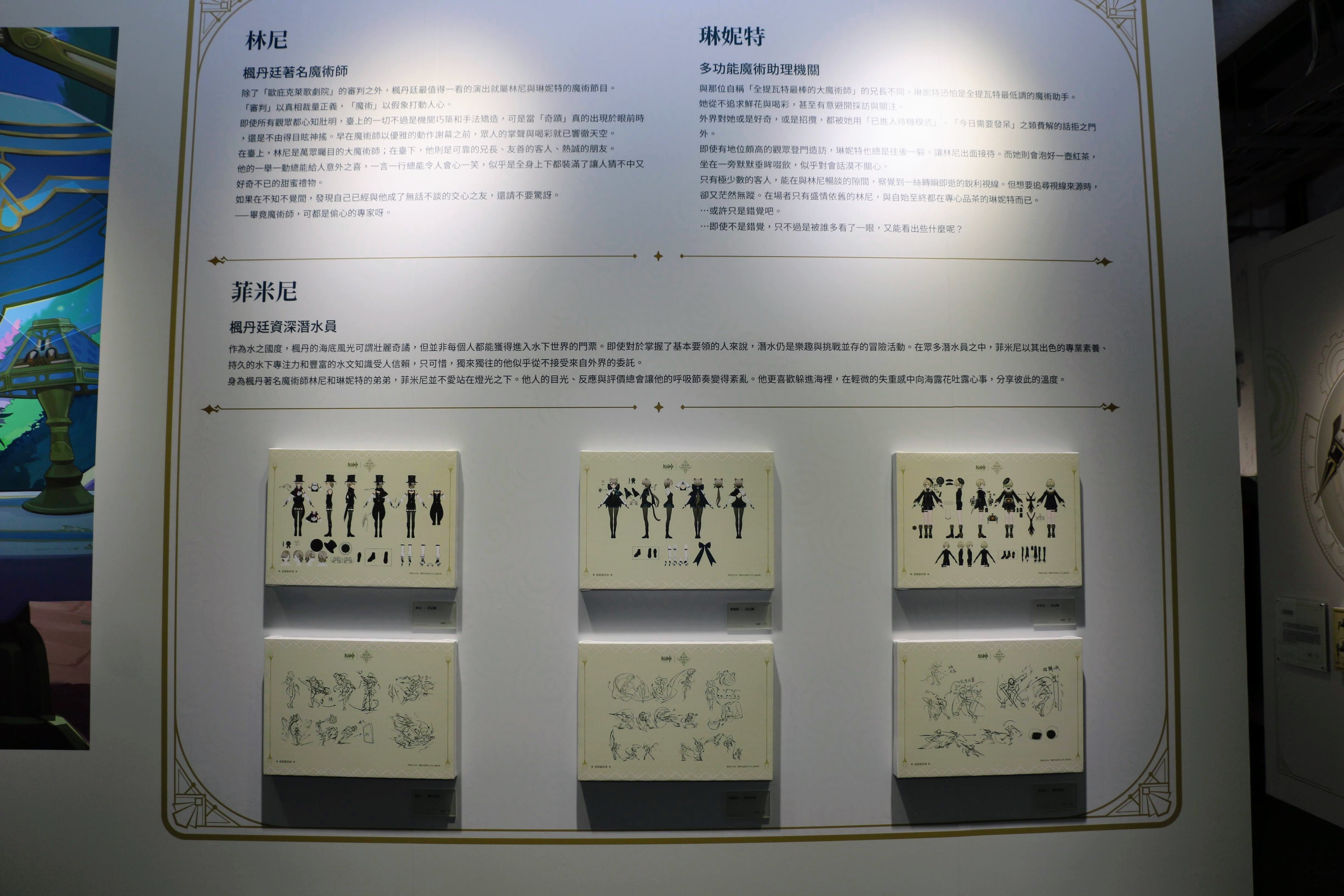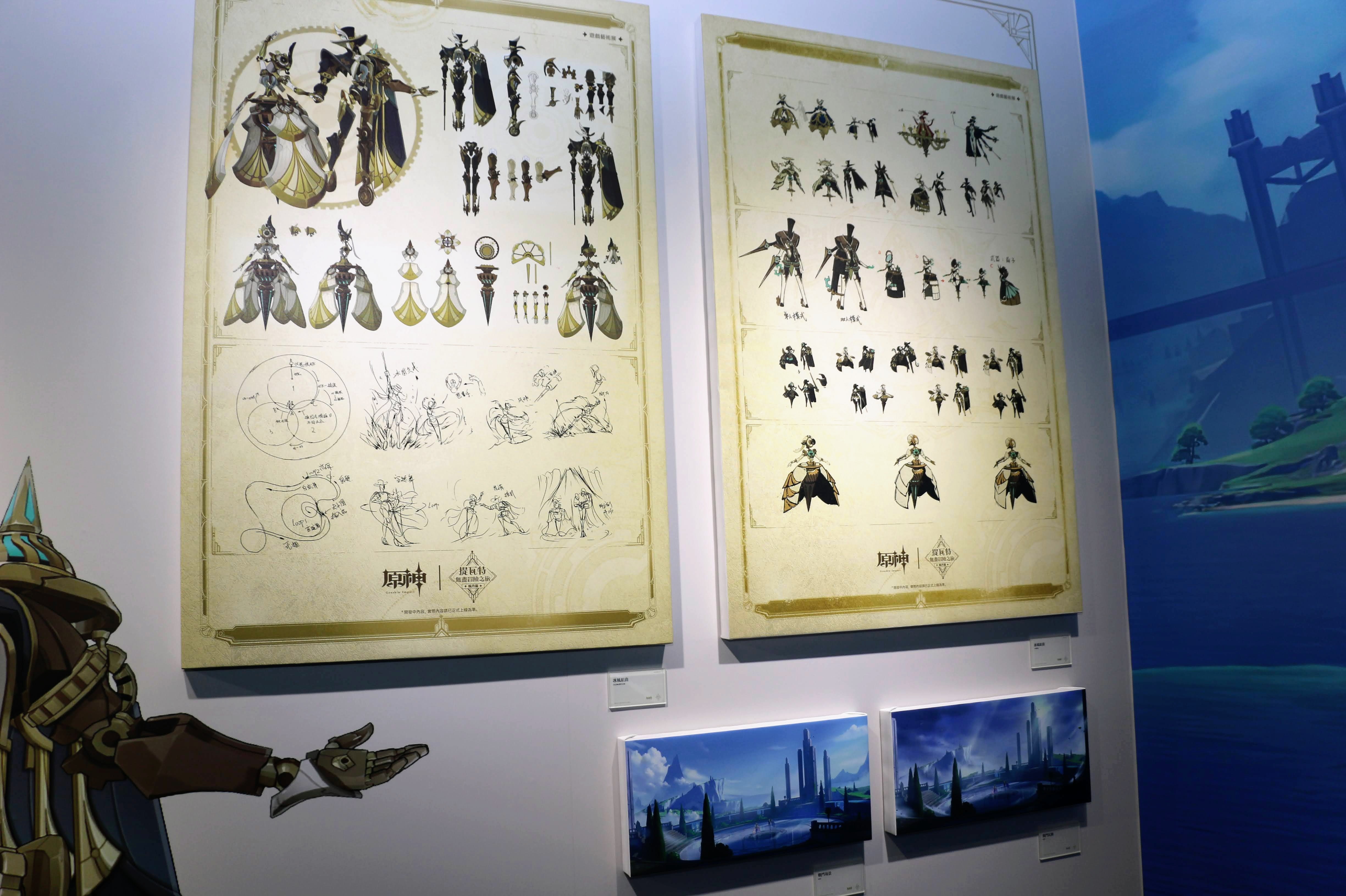 官方表示,本次展覽為紀念於 4.0 版本登場的新地區「楓丹」所舉辦,透過 60 餘幅設計稿,帶領參觀者從幕後視角深入瞭解楓丹的自然、景觀、文化、建築、生物、角色等各方面的設計理念和流程。另外更有超過 30 幅概念圖將進一步展示設計師如何將水、齒輪、發條等要素與巴洛克風格建築相結合,又如何從歐洲的雄偉山川和自然景觀中汲取靈感,以及怎樣嘗試不同的方式來創作變化萬千的奇幻水下世界。展覽將用巨型的 1:1 模型和微縮景觀來展現遊戲內容,並首次為音樂愛好者和公眾呈現楓丹的交響主題曲和戰鬥主題曲的完整樂譜。