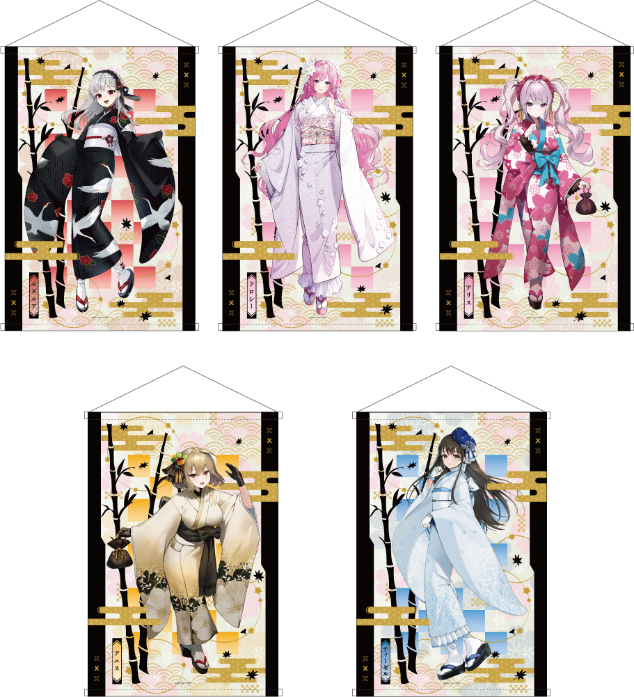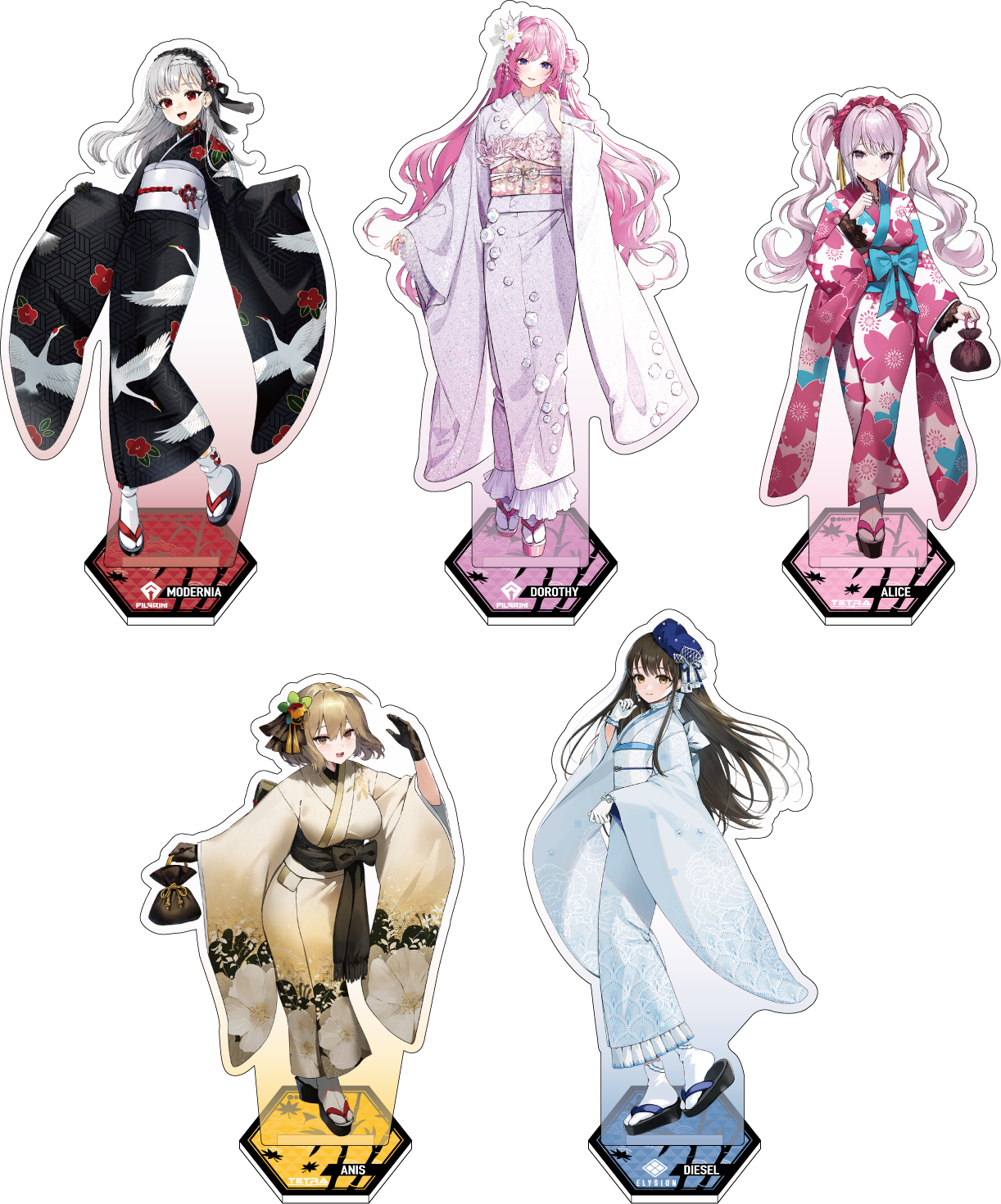 而本次妮姬們將以和服造型亮相,現場預計將販售包含壓克力立牌、掛軸、明信片套組等《
