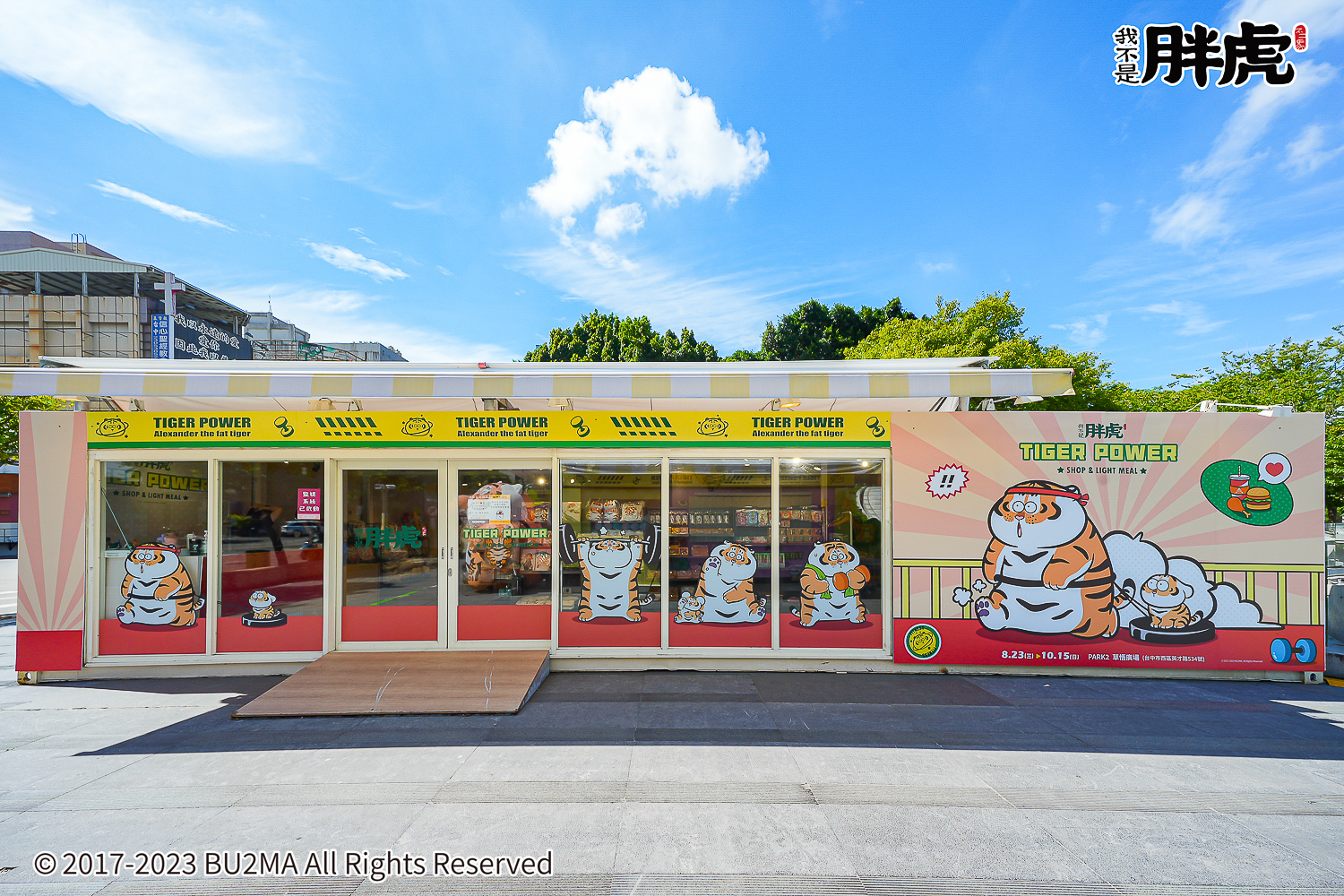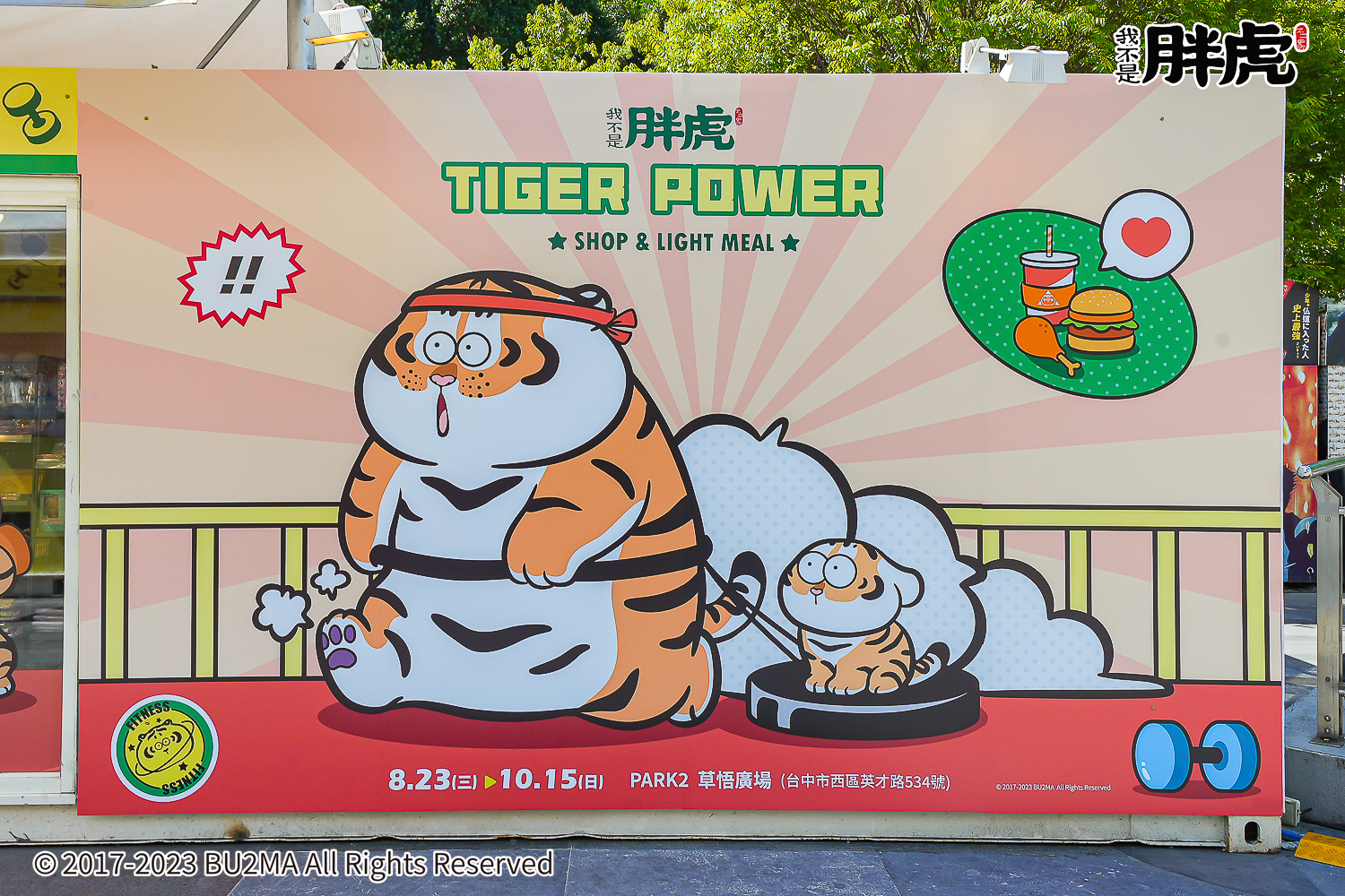 「TIGEH POWER」我不是胖虎快閃店已自 8/23 起正式開幕,將至10/15 為止在台中草悟登場,現場有高達 2.5 米高「運動賺健康」充氣胖虎,還有認真舉著啞鈴的「超夯胖虎」、訓練臉部肌肉的「咀嚼肌打卡」、胖虎吃力的「胖虎挺舉中」、健身完開心收操的「胖虎伸展中」等六大拍照點。現場還有首次推出的扭蛋機,還推出奇異果、百香果、草莓及水蜜桃四款水汽泡飲,以及「胖虎雞蛋糕」和超過 70 款全新周邊商品,提供有興趣的人參考。