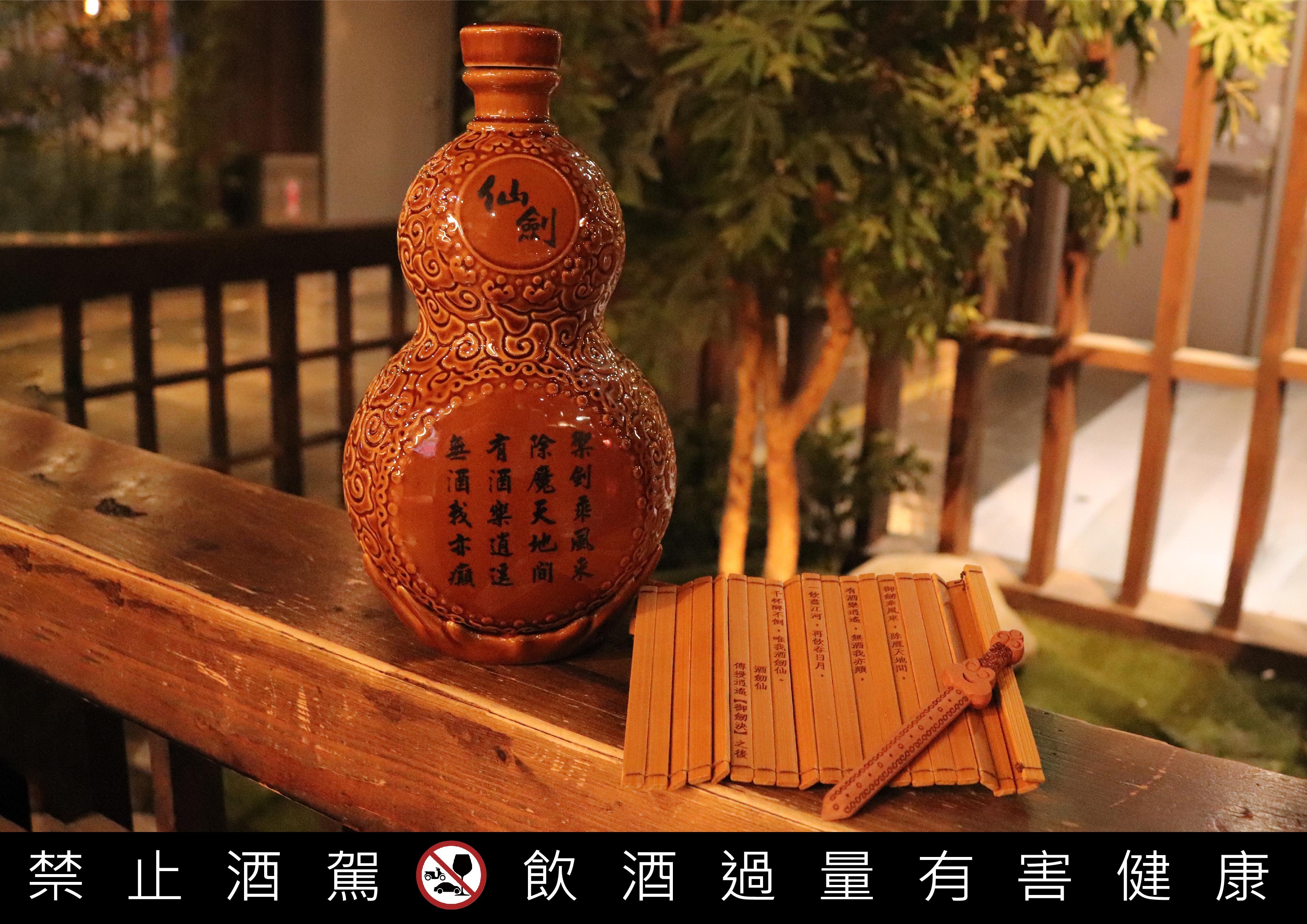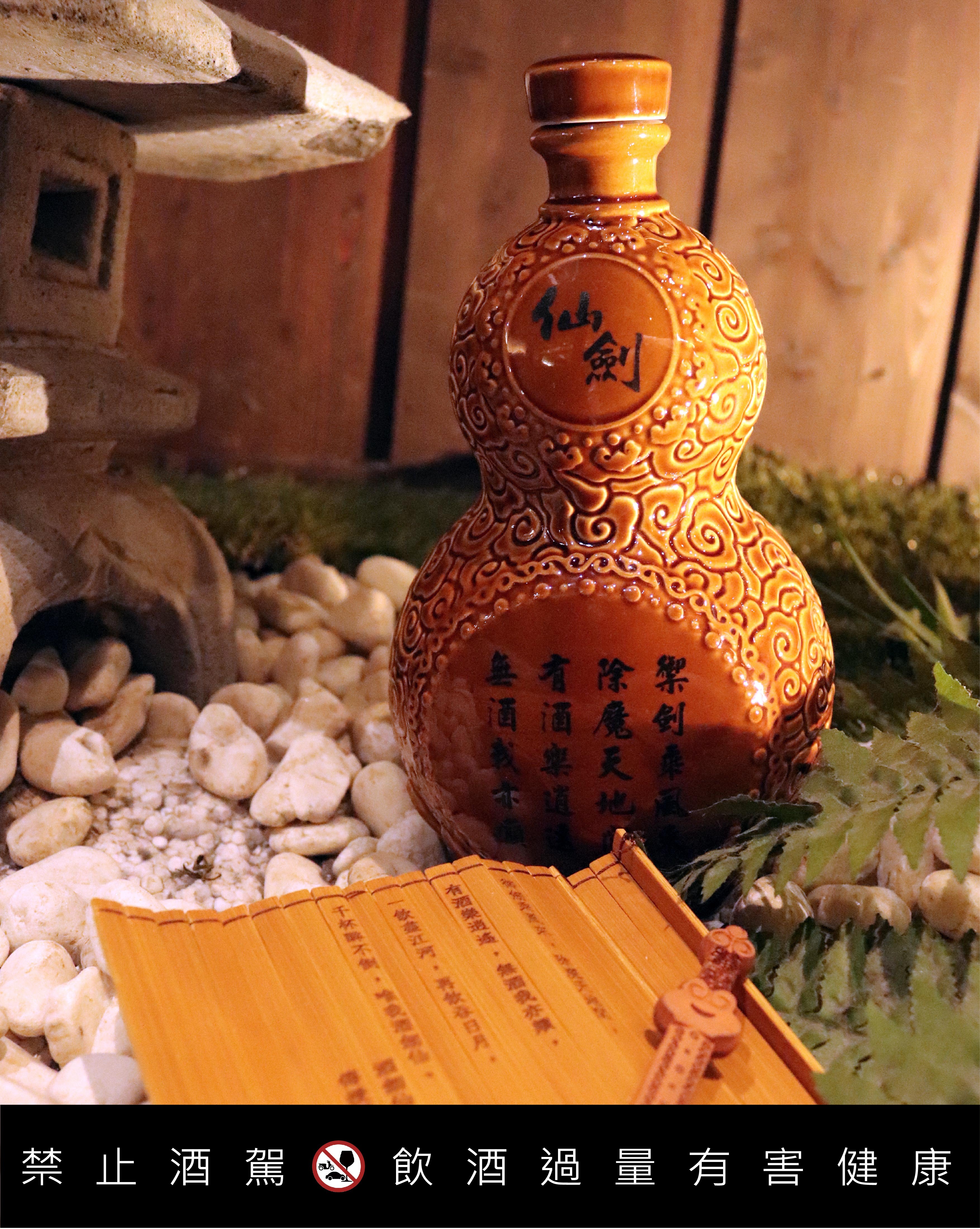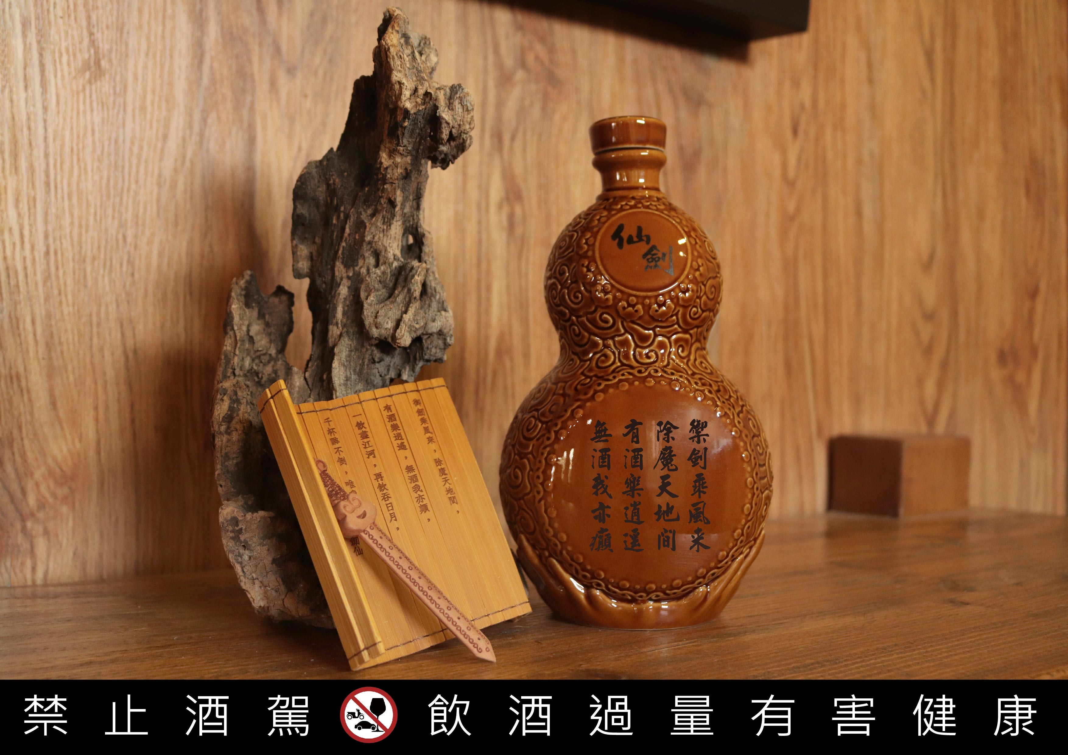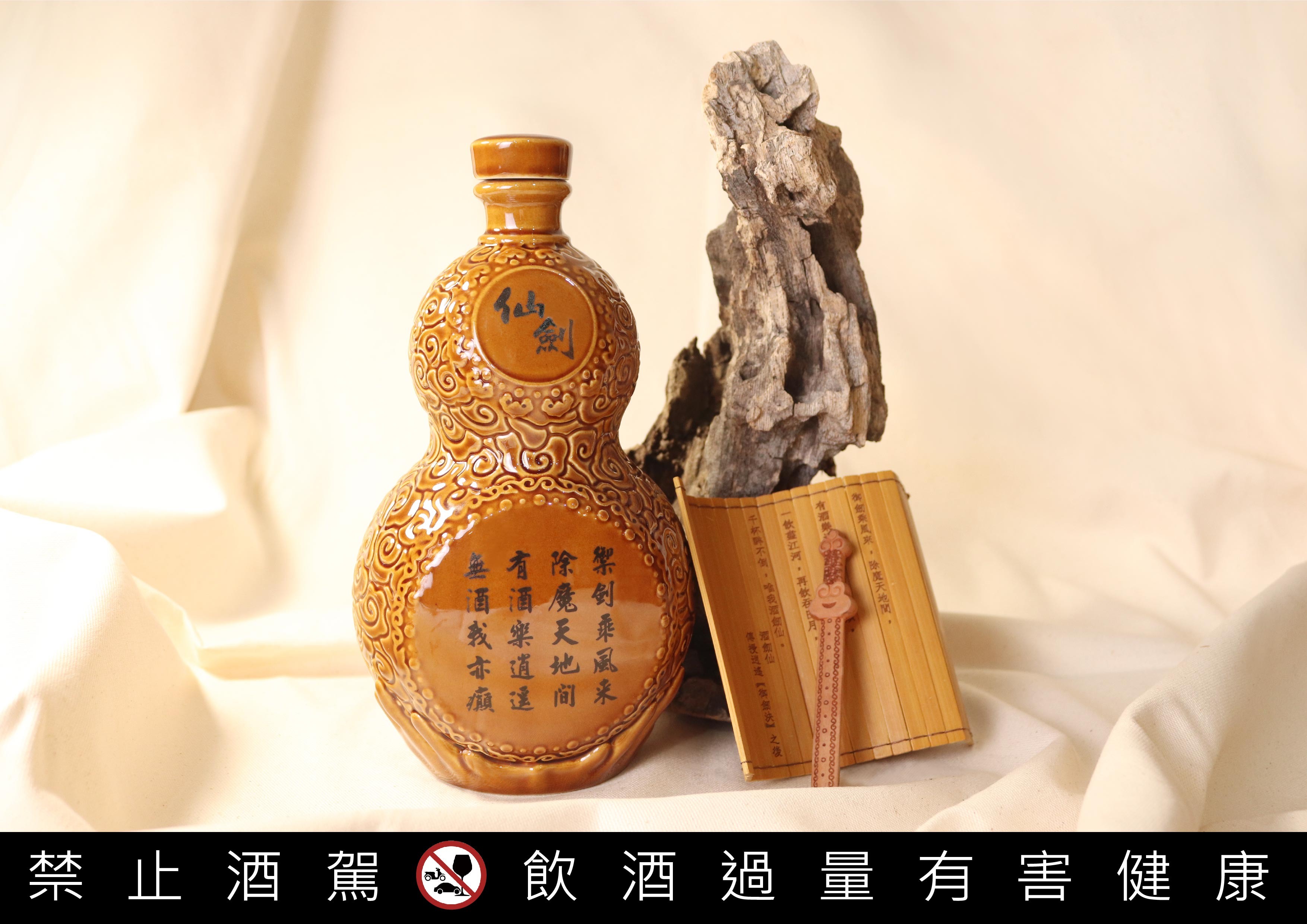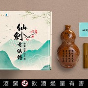 仙劍奇俠傳》葫蘆造型紀念酒」以遊戲中的珍寶道具葫蘆造型為設計,外觀呈現酒劍仙經典詩句,內含金門皇家 58° 高粱酒。在配件方面,官方加入了俠義古風詩句竹簡及木劍,映照出遊戲登入的場景,期望將玩家帶回遊戲中仙俠的冒險旅程。
