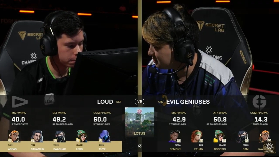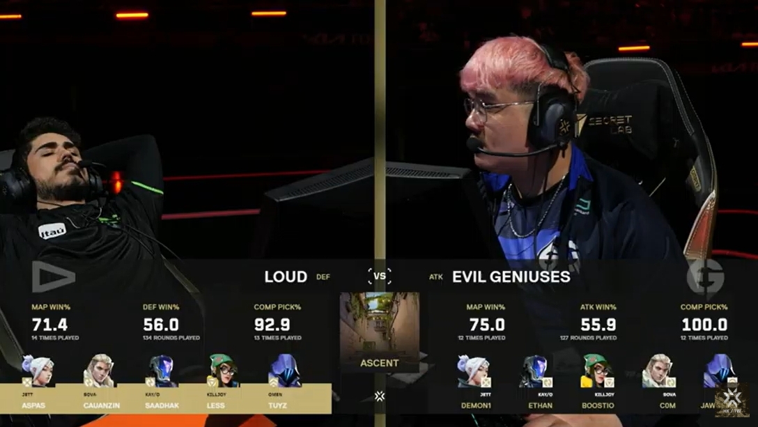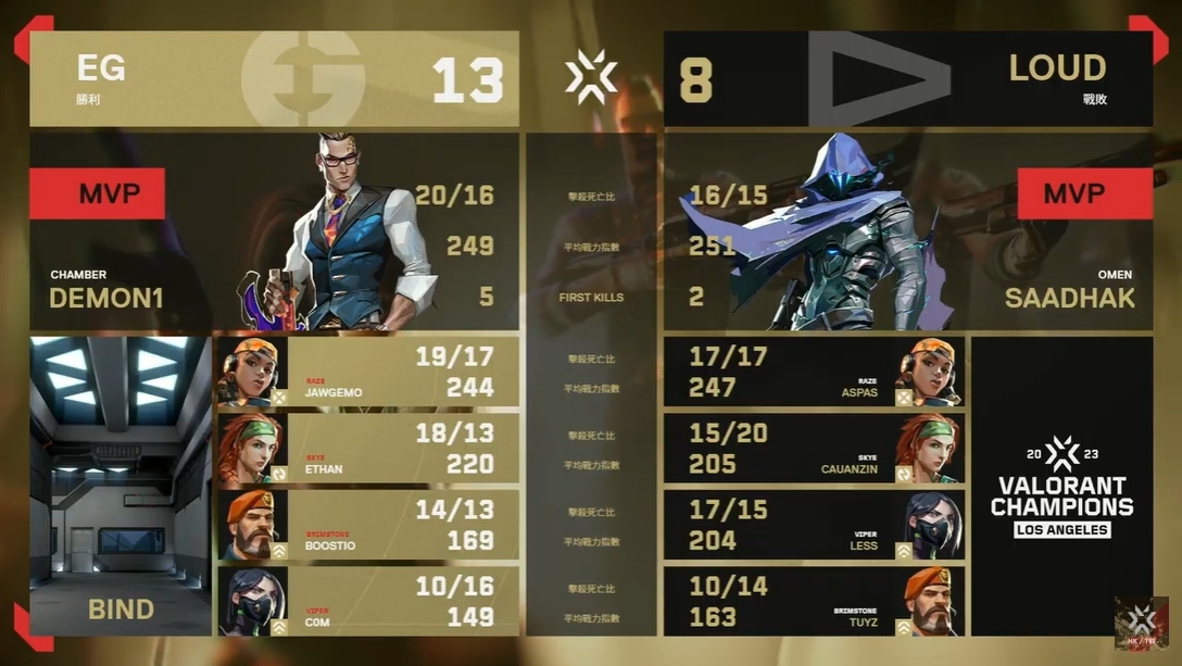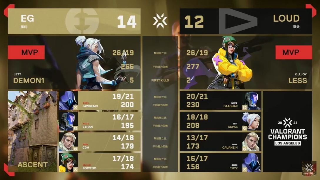 特戰英豪》2023 VCT 冠軍賽倒數第二天展開敗部決賽,北美隊伍 Evil Geniuses(EG)以 3:2 戰績擊敗巴西隊伍 LOUD,確定晉級明日的總決賽,屆時將出戰亞太賽區新加坡隊伍 Paper Rex(PRX)。