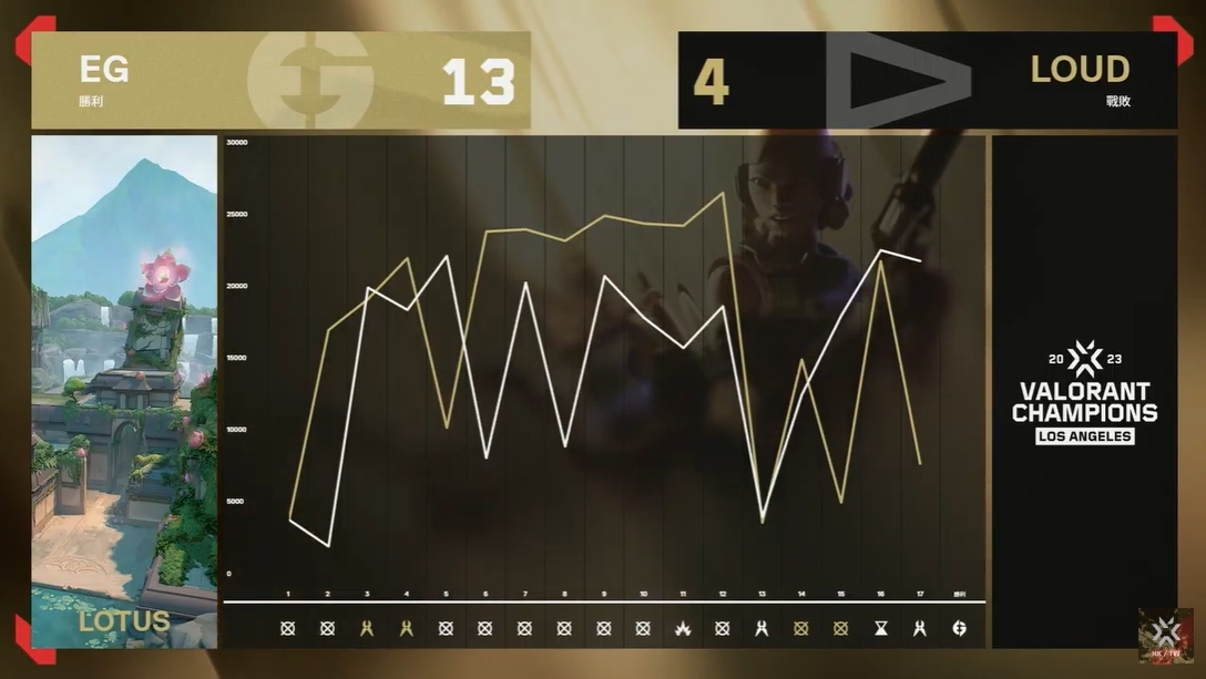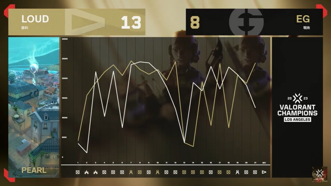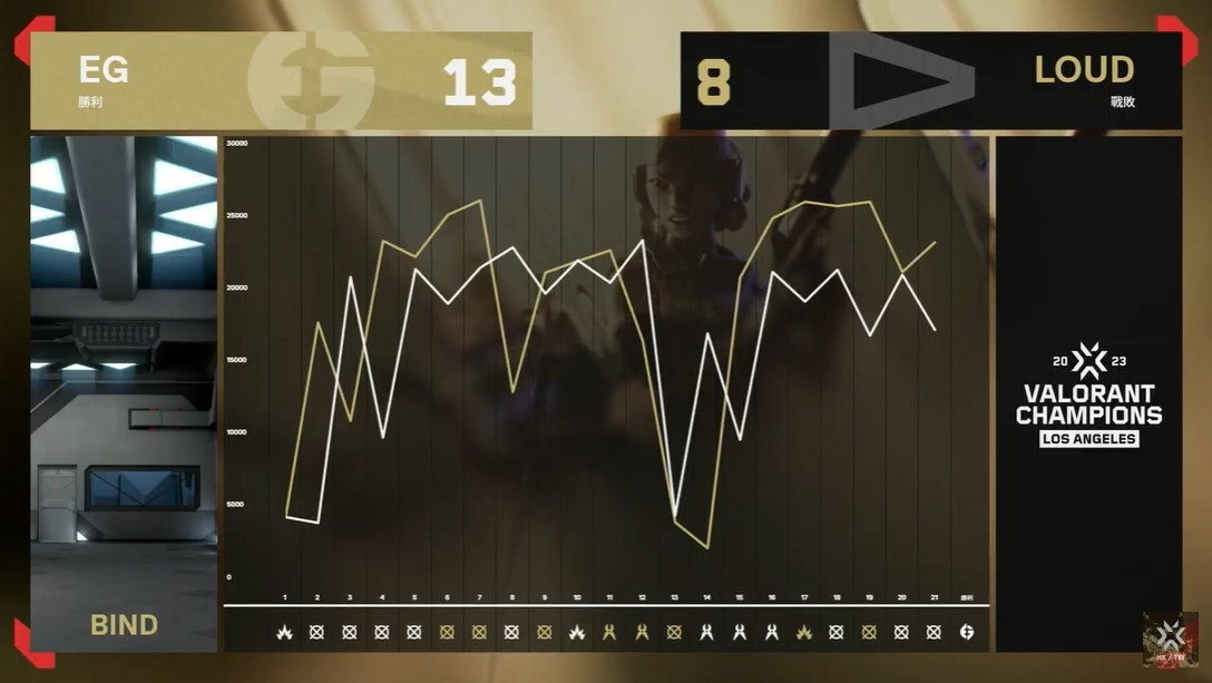 特戰英豪》2023 VCT 冠軍賽最後三天賽事於美國洛杉磯 The Kia Forum 開打,今日進入第二天敗部決賽,LOUD 和 EG 將在五戰三勝的比賽中,力拼最後晉級機會,獲勝的隊伍將可以前進明日的總決賽,與 PRX 爭奪冠軍榮耀。