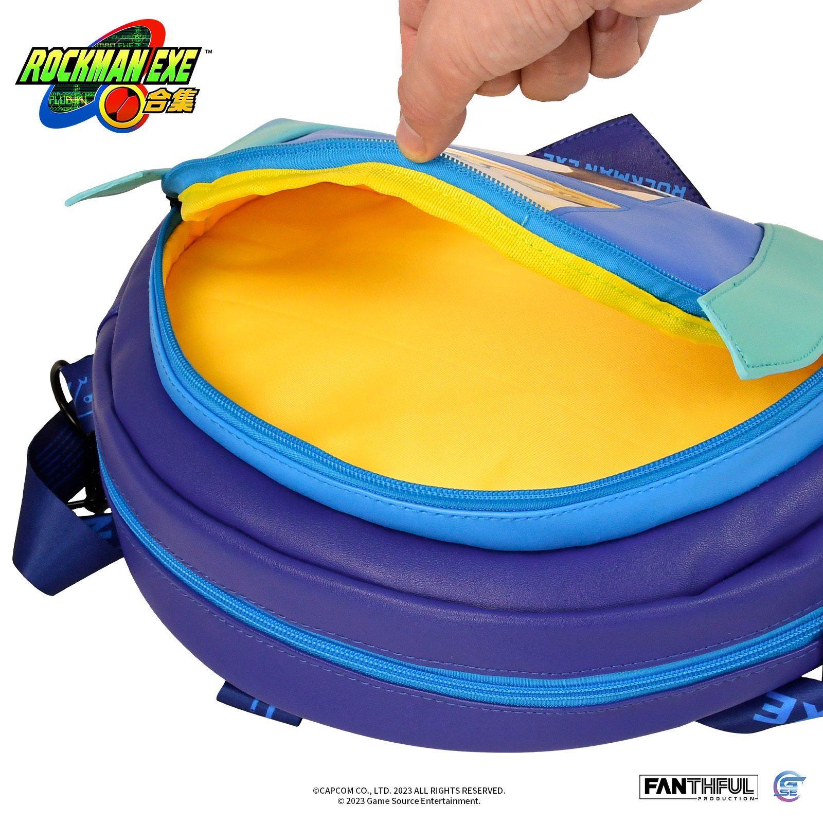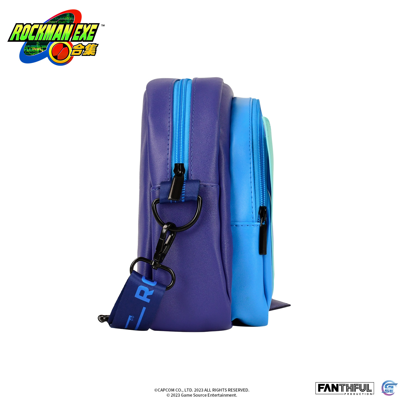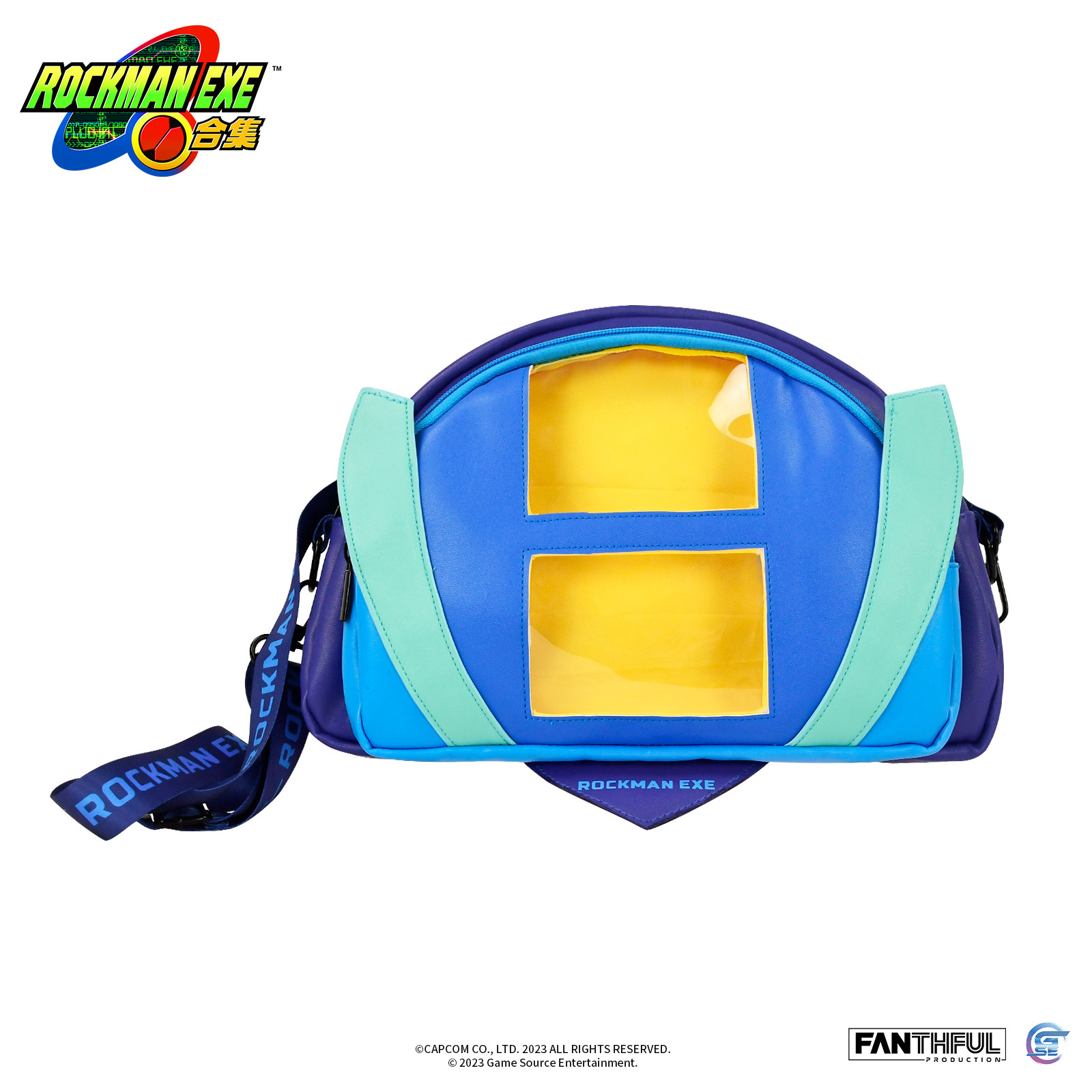 洛克人頭盔作為主題設計開發的便攜包。半圓造型、適當鏤空的細節及顏色的選擇,還原度非常高。背面則是壓印了 ROCKMAN EXE 的字樣。便攜包的容量也非常適合日常工作生活,質感極佳。同時,配備了印有 ROCKMAN EXE 字樣的背帶,讓便攜包單肩斜挎均可,彷彿
