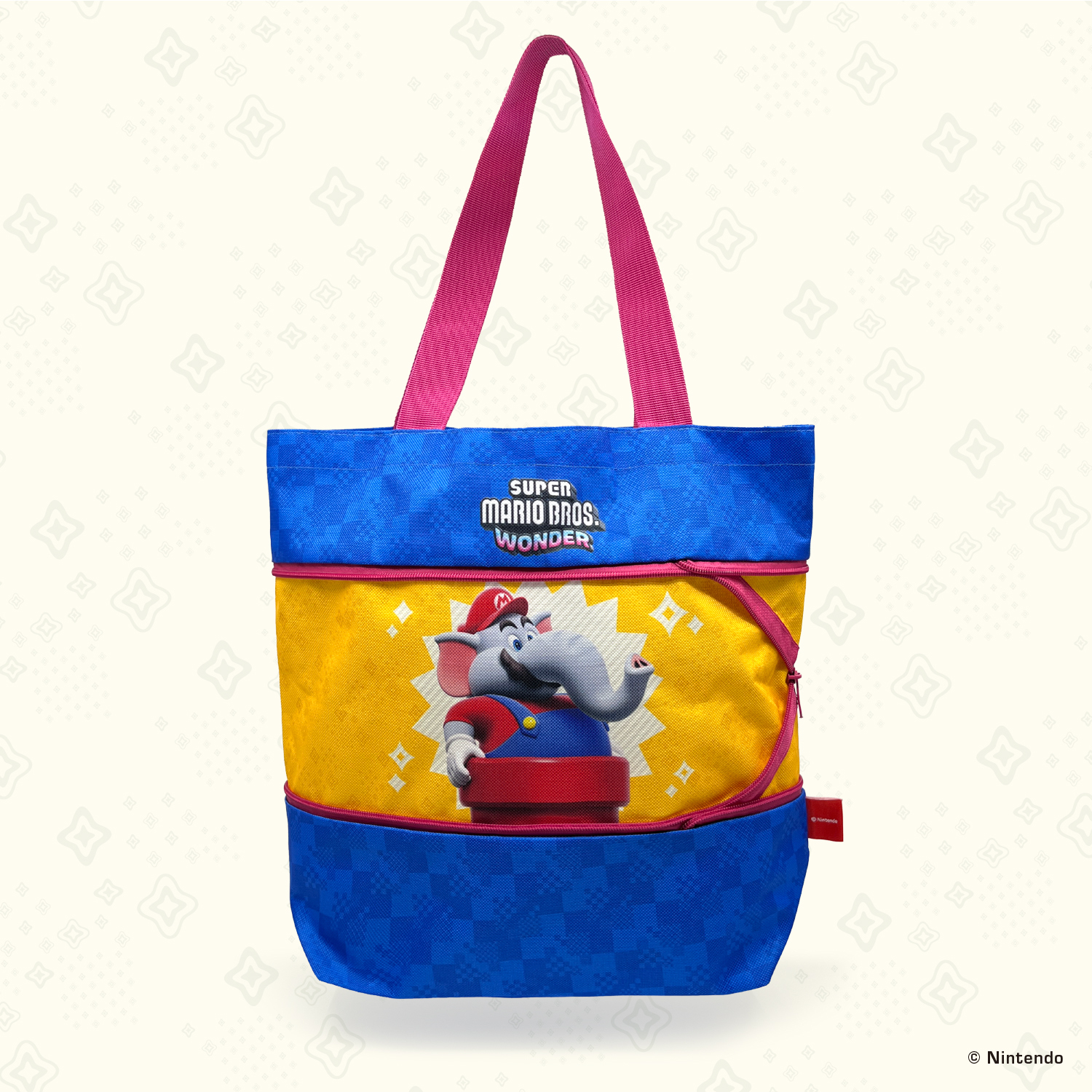超級瑪利歐兄弟 驚奇》伸縮購物袋」。拉開拉鏈,就能看到瑪利歐等人和變身成大象形態的瑪利歐。外出購物帶著它,享受「驚奇」的變化吧。