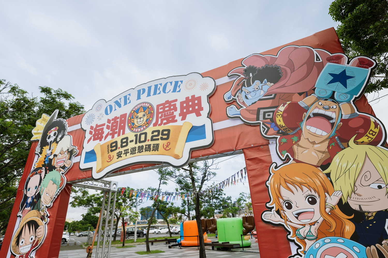 觀光旅遊局林國華局長表示,海潮慶典以 12 米千陽號做為主要安平遊憩碼頭展出裝置,活動期間也將打造夜間絢麗燈光秀,從 9 月8 日到 10 月 29 日每天晚上將搭配《航海王》特色主題曲帶大家進入作品的世界。除了主要的展區外,現場也布置有各種充滿創意的主題裝置等著海賊迷一同探索。此外還有活動期間限定的商品販售區,將販售《航海王》限量週邊美食與商品,包含壓克力鑰匙圈、壓克力胸章、紀念杯、爆米花、棉花糖、霜淇淋……等。