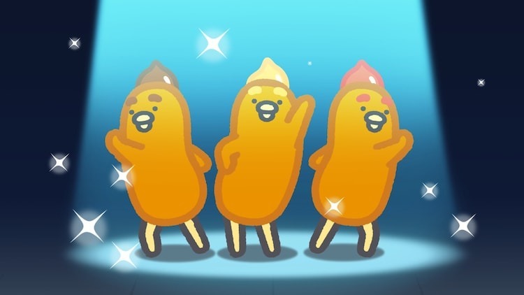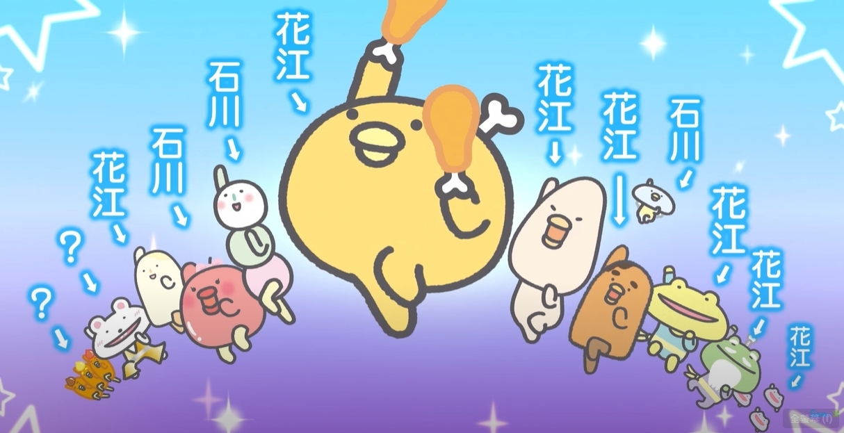 跳跳小雞》,描繪一群可愛的角色們快樂跳舞的日常,主要角色包含喜歡跳躍的「帶骨雞」、大家的舞蹈老師「小跳步青蛙老師」、充滿活力的女孩「蘋果糖」……等。參與作品配音演出的聲優有花江夏樹、石川由依、弓木英梨乃(擔任旁白)等人。