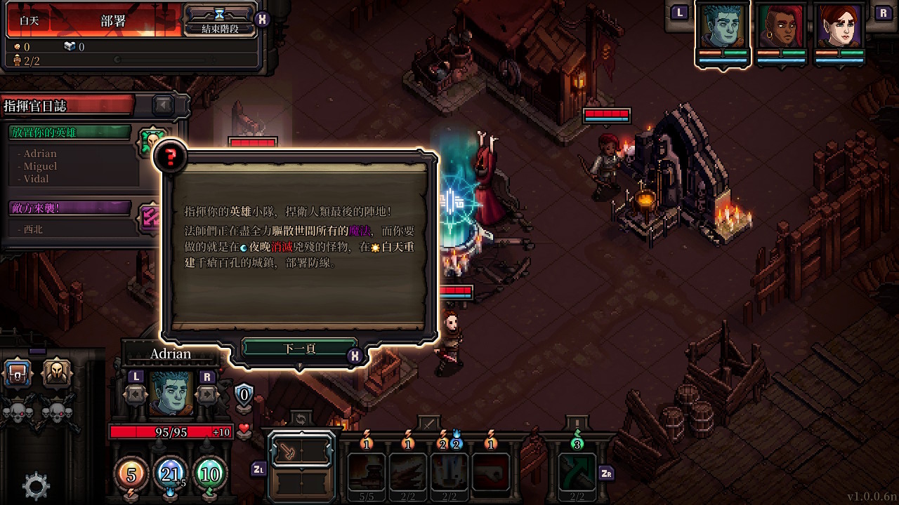 合理運用資源來重建城鎮,在戰鬥之餘透過治療、採購裝備、招募英雄等方式強化戰力