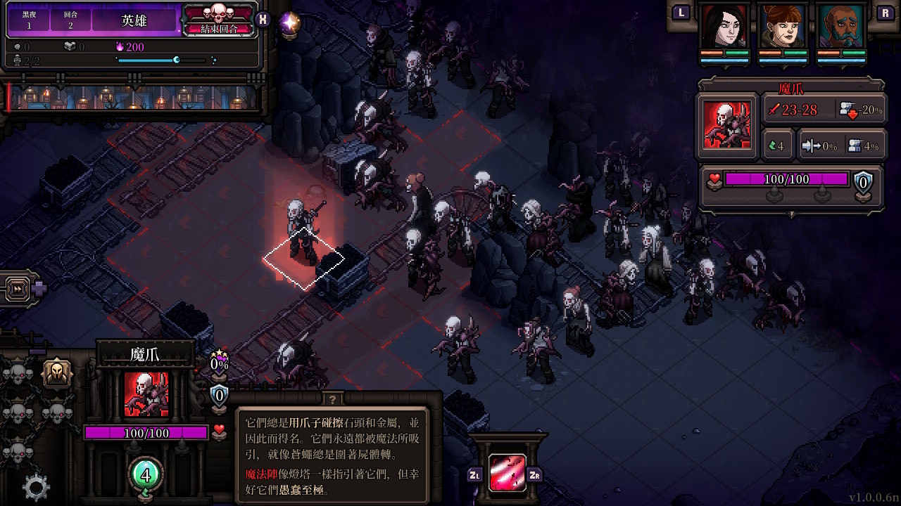 敵方的數量遠遠多於我方,身為指揮官的你需要制定出最優的戰術,運用 AOE 技能造成殺傷,群體控制,下毒…… 每一個行動點都有可能成為扭轉戰局的關鍵