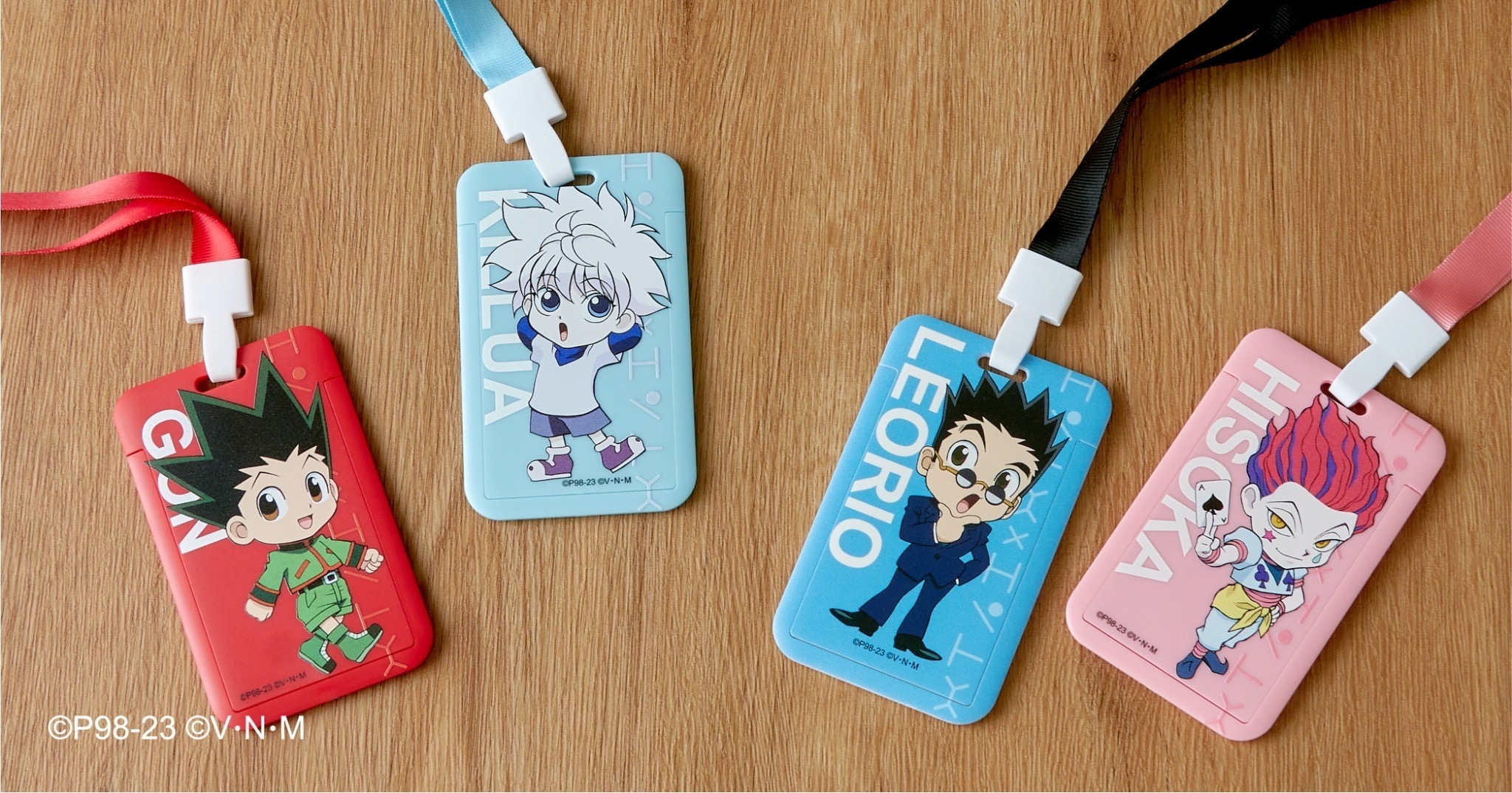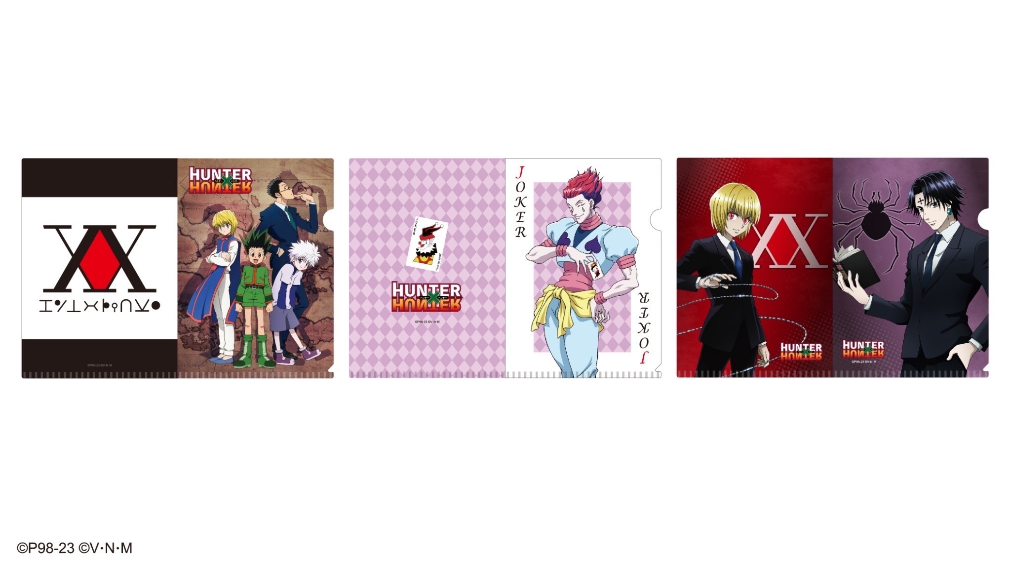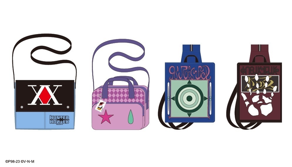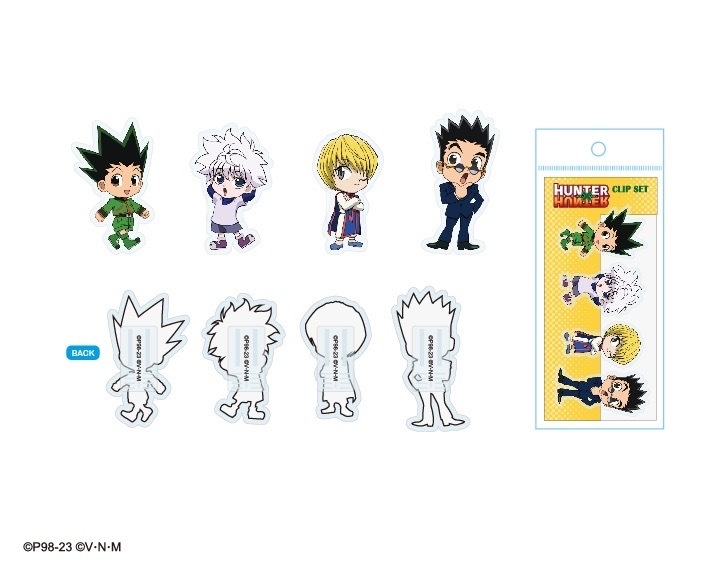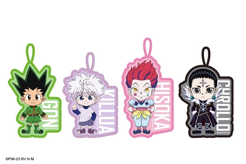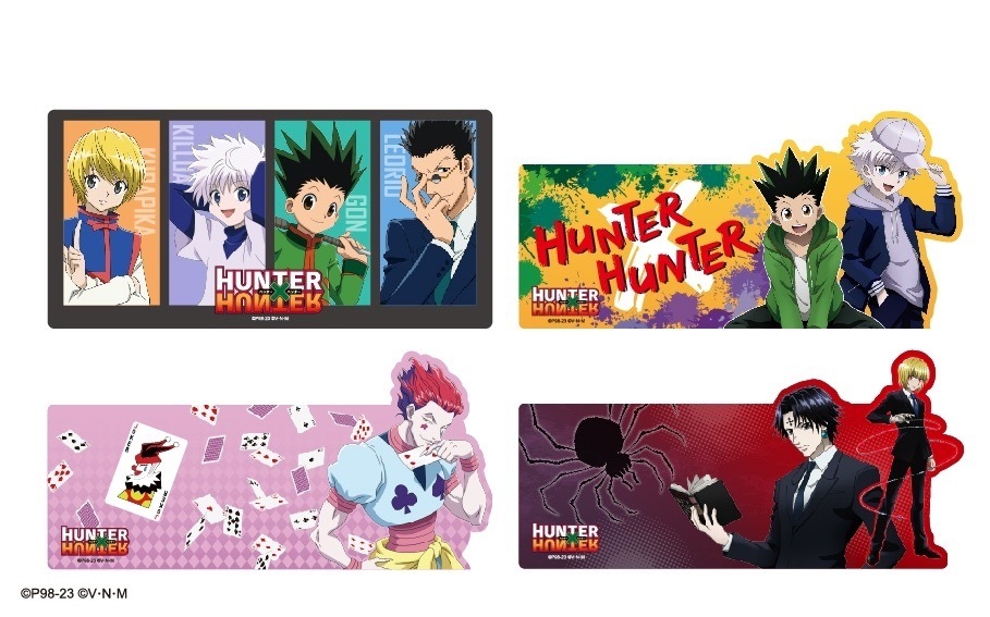 本次推出的周邊商品部分,有小傑與奇犽私服掛軸、西索與庫洛洛西裝等多款尺寸圖樣無框畫、六種款式吸水杯墊、四位主角立牌、四款滑鼠墊、四款角色造型鑰匙圈、四款角色Q版抱枕、獵人執照與撲克牌造型擴香石、幻影旅團及獵人協會款式地墊、三款造型門簾、空調毯、擦手巾、車用套組、造型夾、長吊繩、識別套、文件夾、側背包、Airpods 保護套等各式各樣的內容,提供給大家參考。