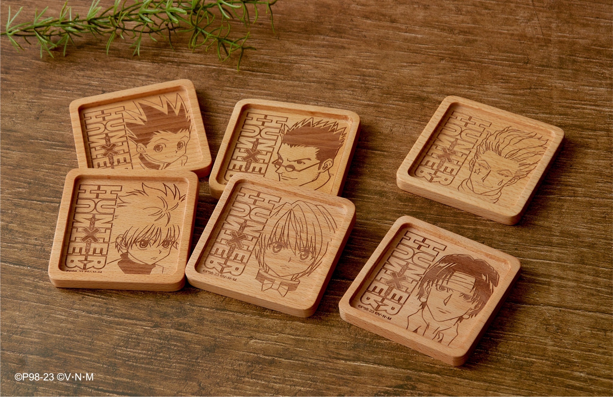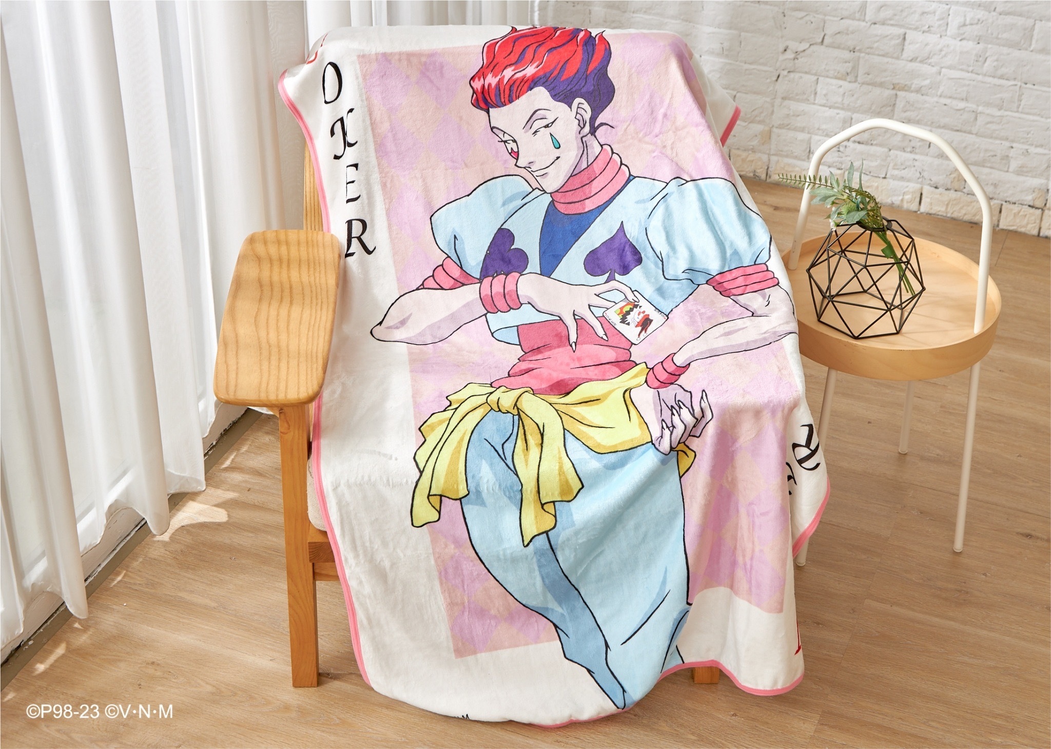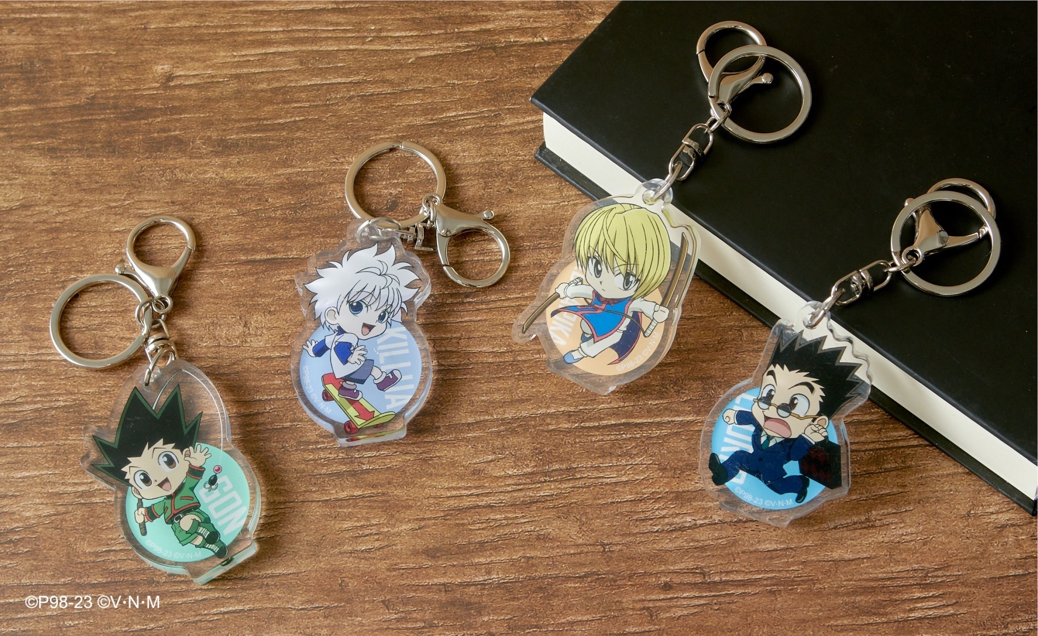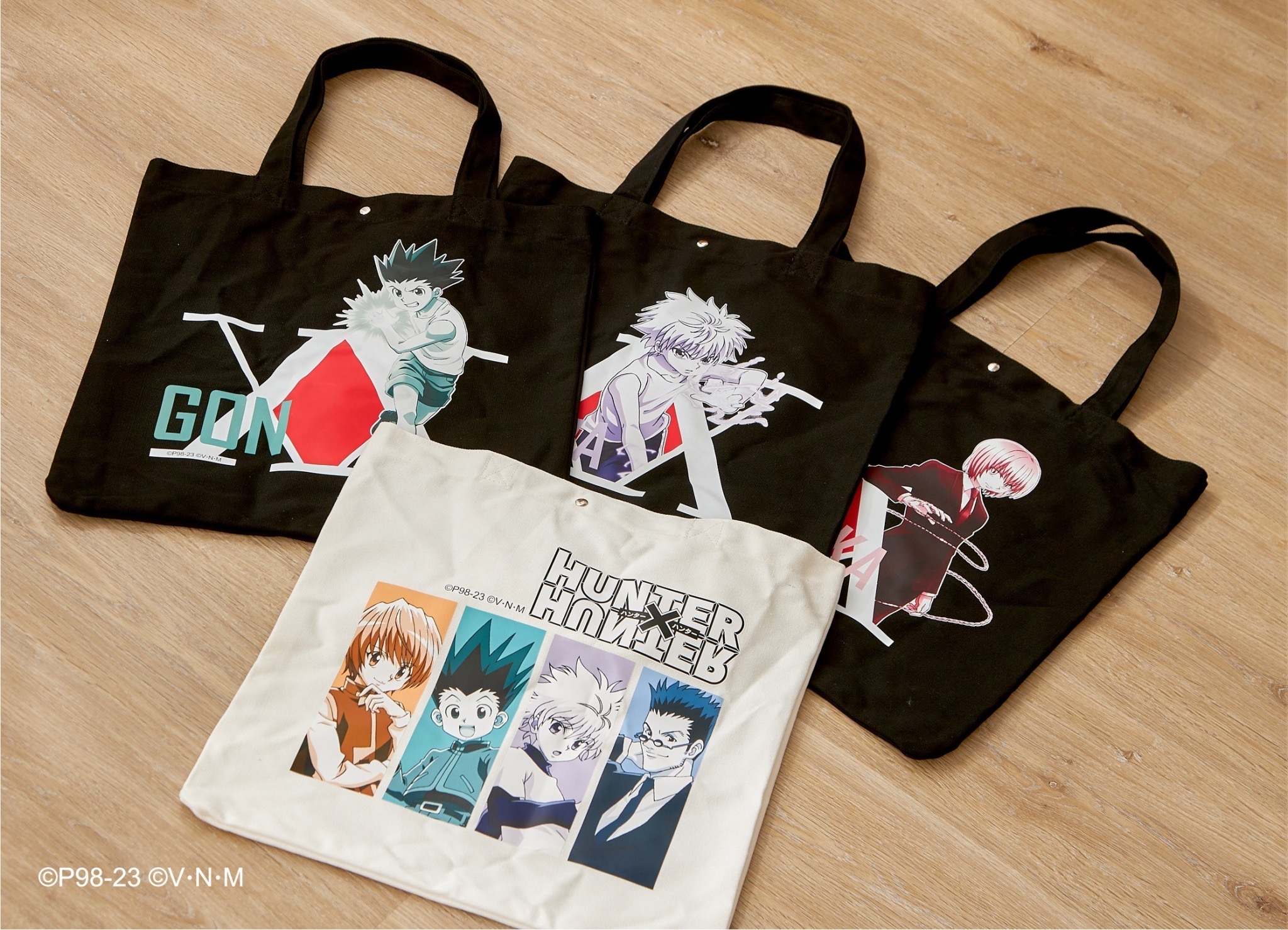 本次推出的周邊商品部分,有小傑與奇犽私服掛軸、西索與庫洛洛西裝等多款尺寸圖樣無框畫、六種款式吸水杯墊、四位主角立牌、四款滑鼠墊、四款角色造型鑰匙圈、四款角色Q版抱枕、獵人執照與撲克牌造型擴香石、幻影旅團及獵人協會款式地墊、三款造型門簾、空調毯、擦手巾、車用套組、造型夾、長吊繩、識別套、文件夾、側背包、Airpods 保護套等各式各樣的內容,提供給大家參考。