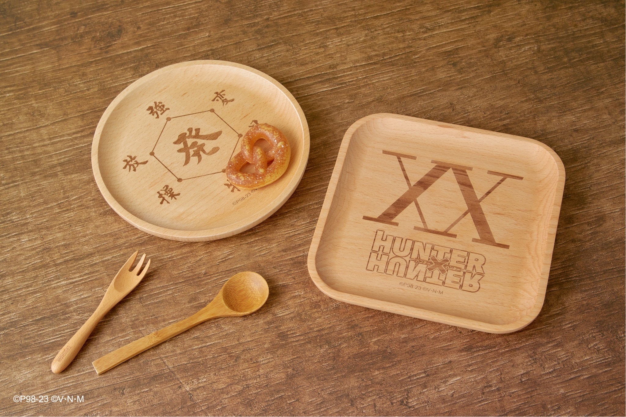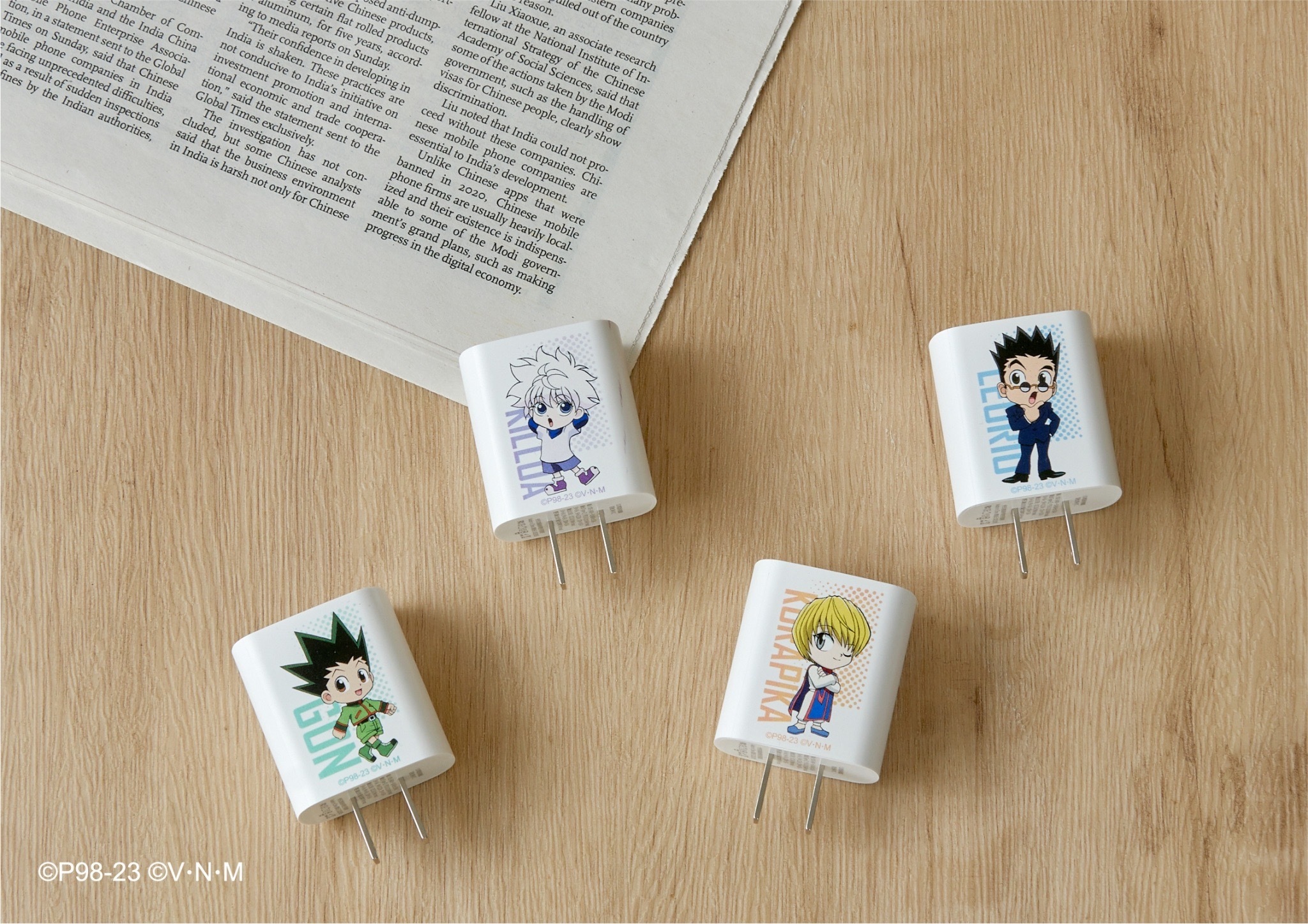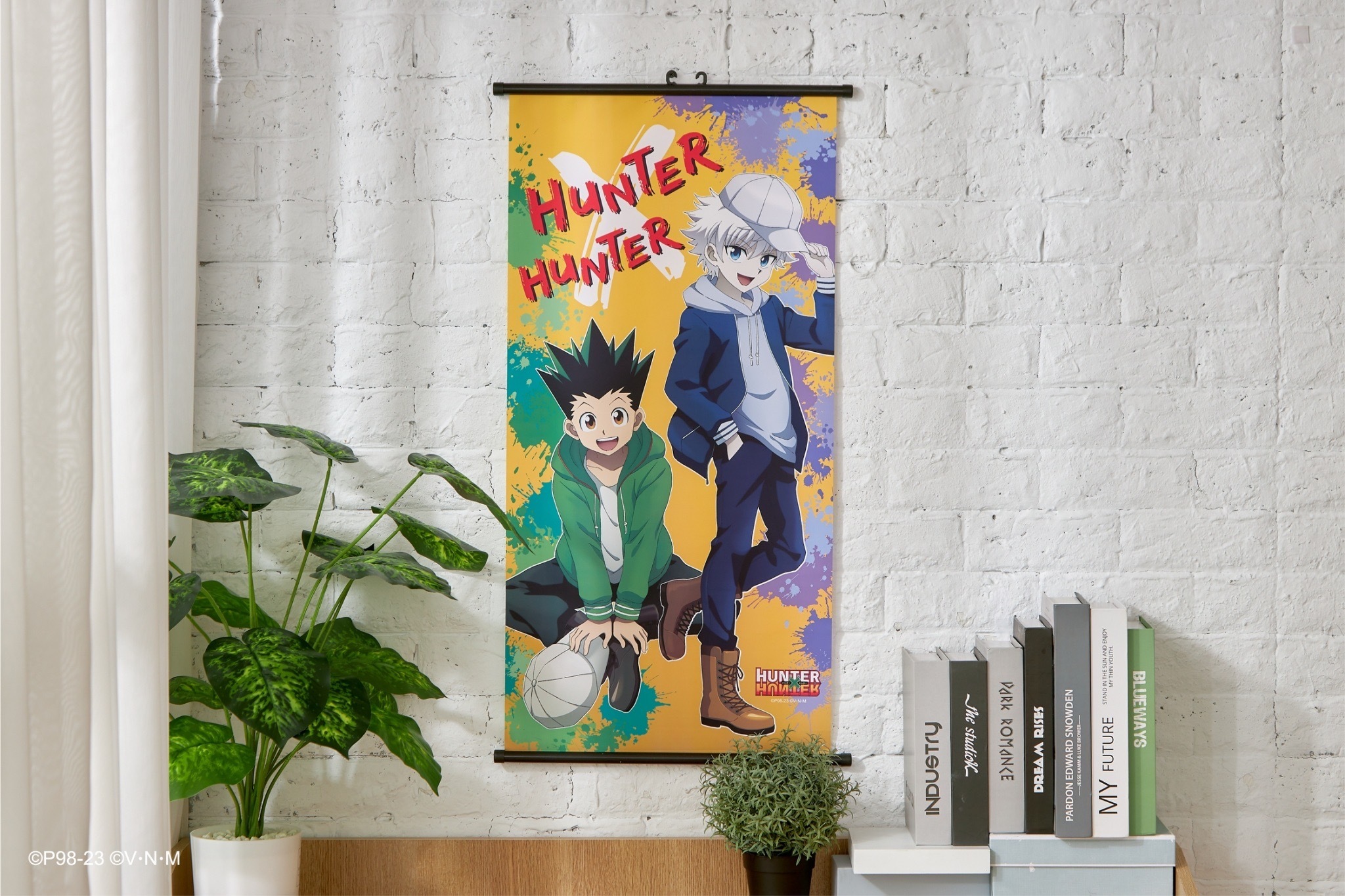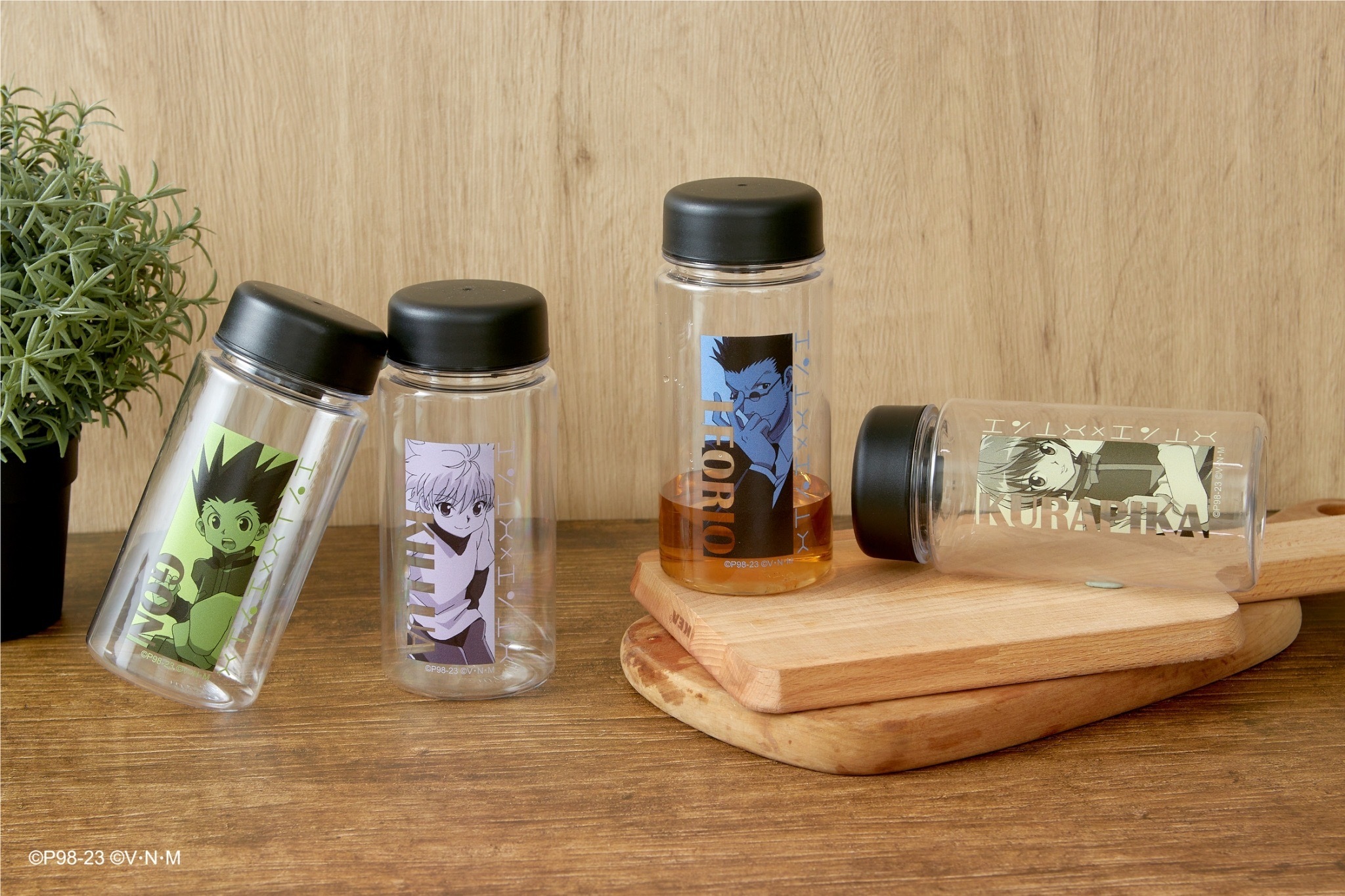 本次推出的周邊商品部分,有小傑與奇犽私服掛軸、西索與庫洛洛西裝等多款尺寸圖樣無框畫、六種款式吸水杯墊、四位主角立牌、四款滑鼠墊、四款角色造型鑰匙圈、四款角色Q版抱枕、獵人執照與撲克牌造型擴香石、幻影旅團及獵人協會款式地墊、三款造型門簾、空調毯、擦手巾、車用套組、造型夾、長吊繩、識別套、文件夾、側背包、Airpods 保護套等各式各樣的內容,提供給大家參考。