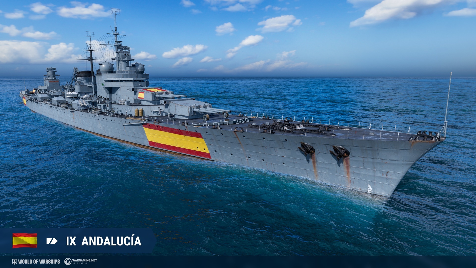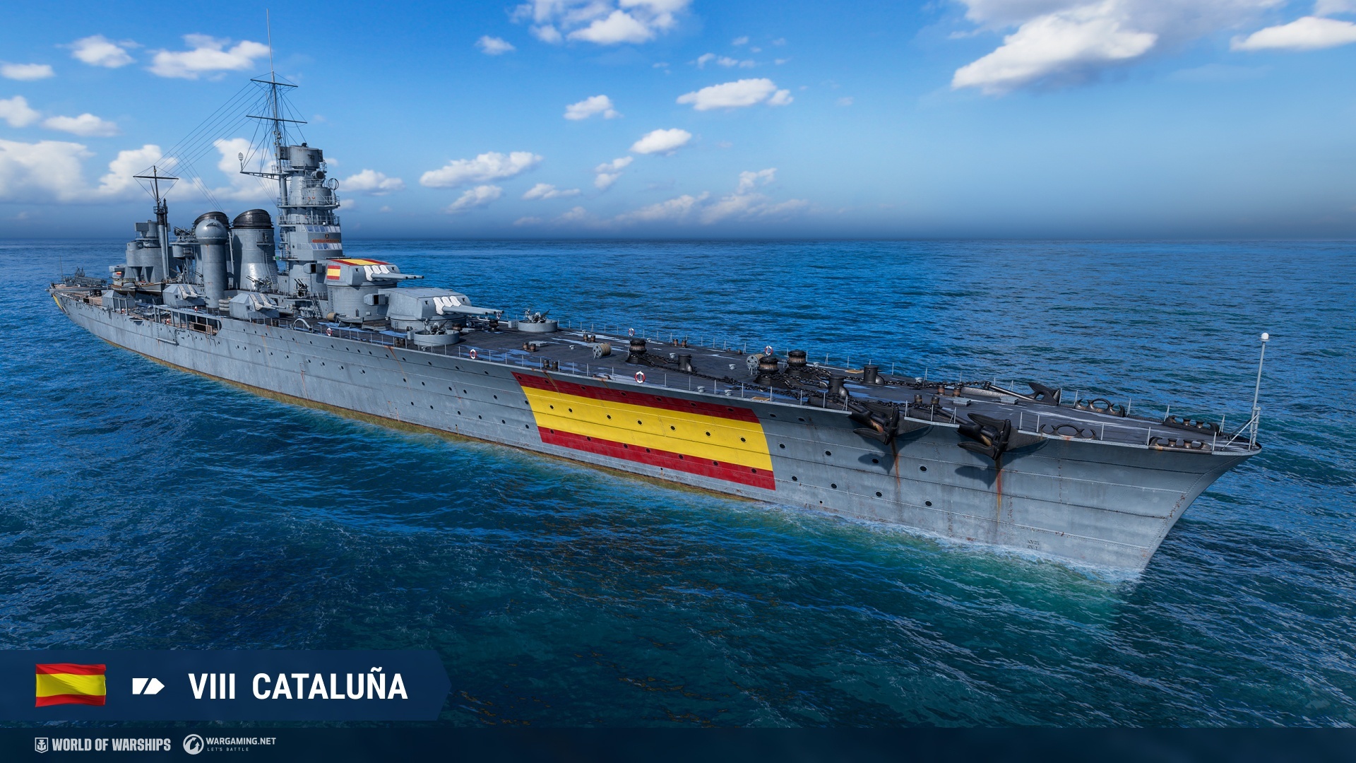 蒼藍鋼鐵戰艦》主題指揮官、一系列組合包(內含戰艦與指揮官)和加值貨櫃。最後,西班牙巡洋艦在 12.8 版本更新中開放讓所有玩家進行研發。