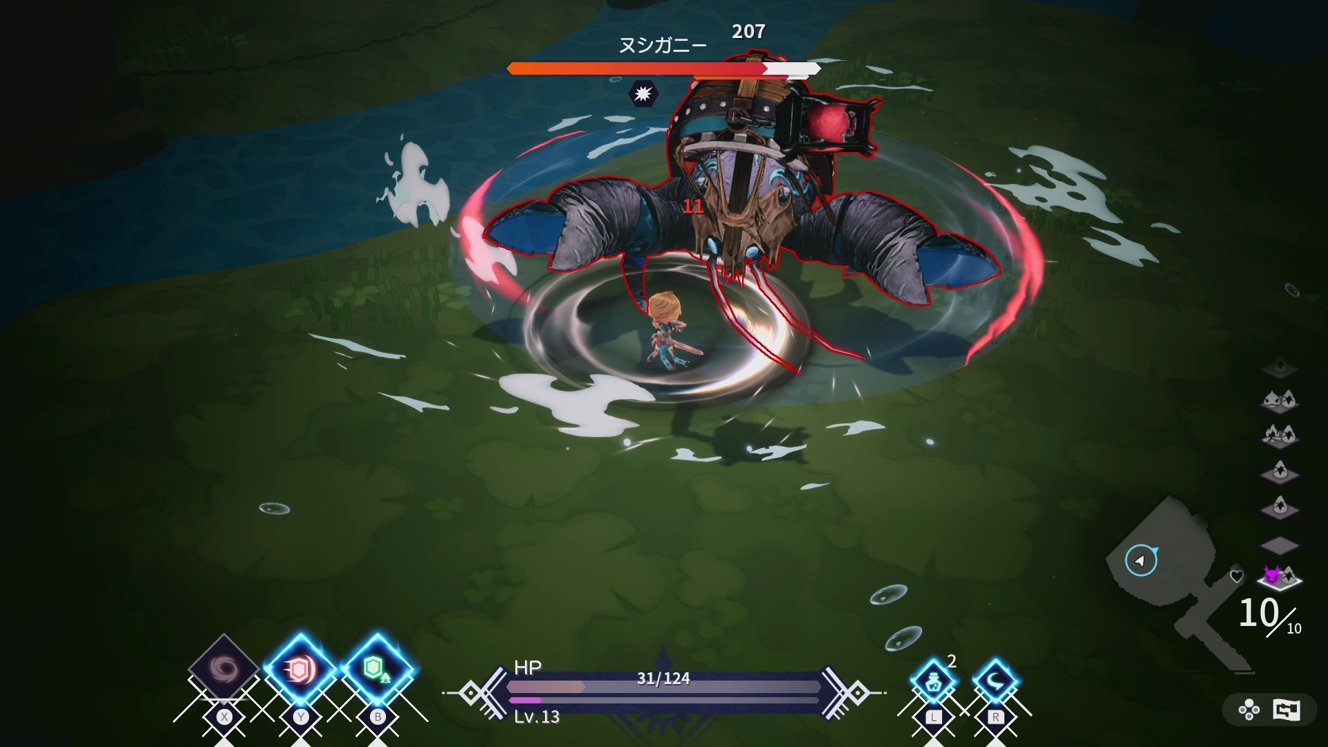 本作的操作簡單,可以輕鬆享受爽快的動作戰鬥。玩家必須打倒魔物,向迷宮深處一步步前進。隨著不斷挑戰,主角們的能力也會越來越強。在迷宮中打倒魔物來「升級」,在據點「生產新的裝備」,往返於迷宮與據點讓 7 位主角逐漸變強吧!
