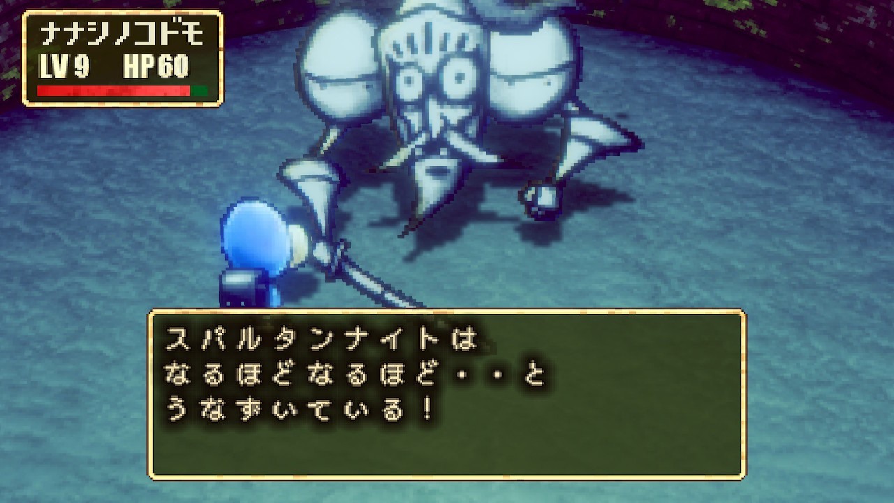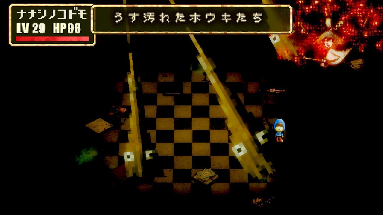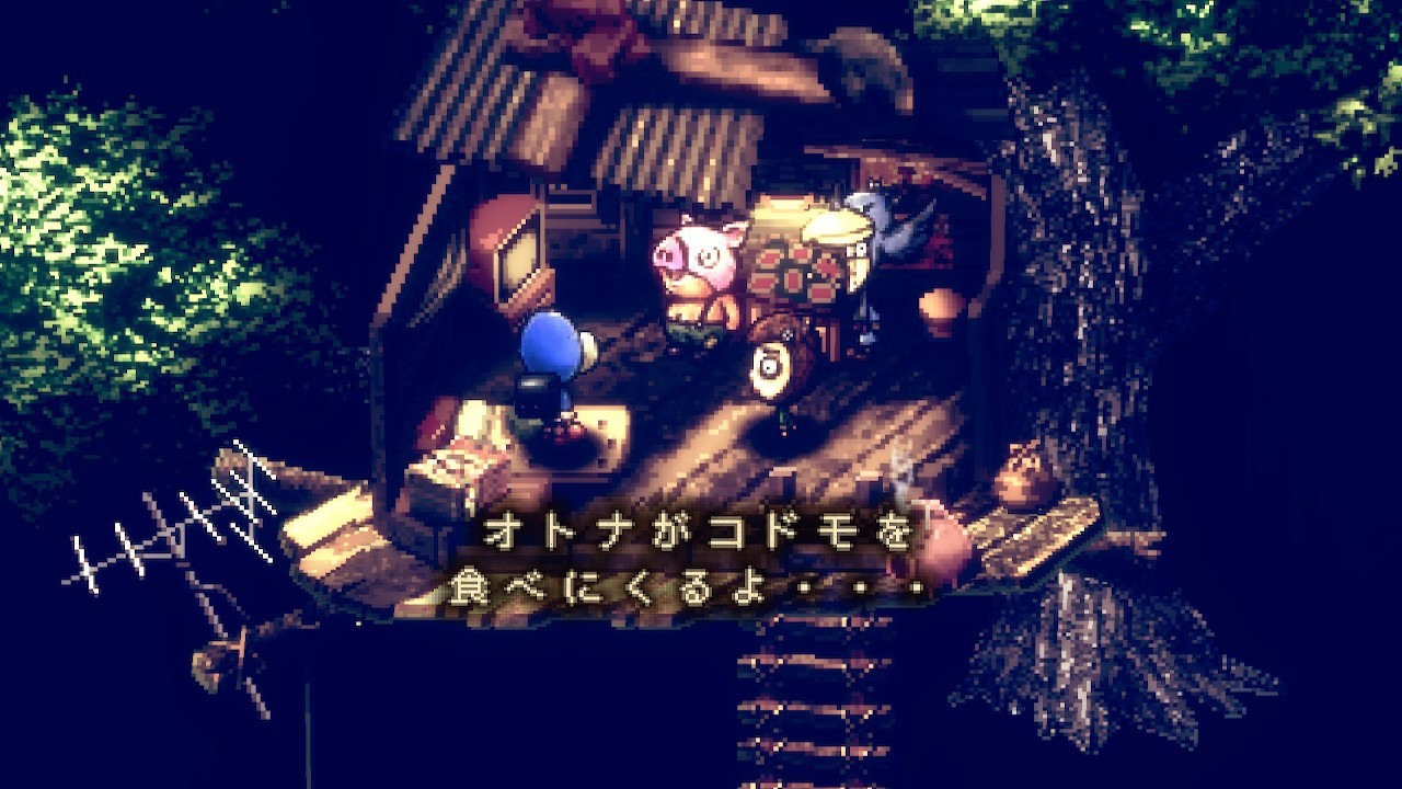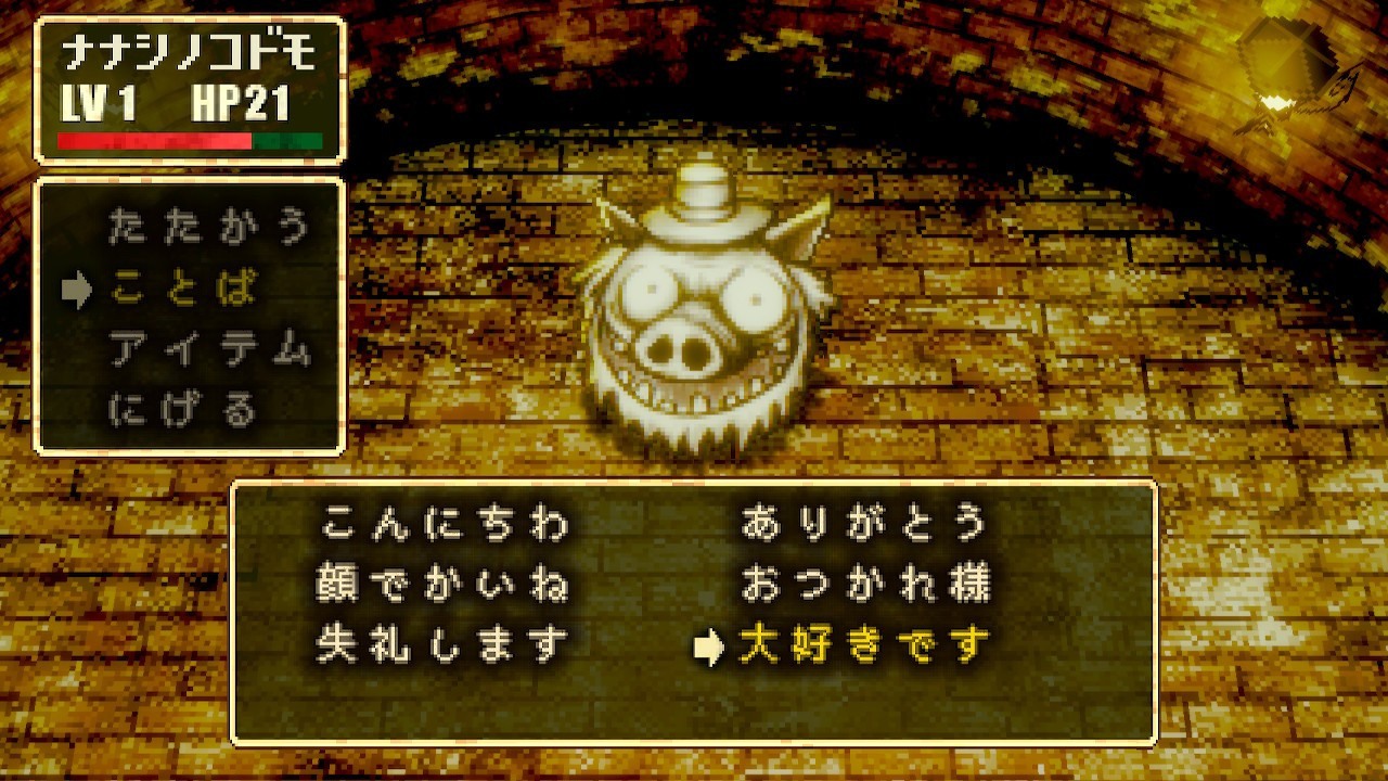 這群孩子說著奇怪的話,意思似乎是指有著名為「成人(オトナ)」怪物會吃掉孩童。玩家在遊戲中可以使用鎬來攻擊怪物成人,也可以透過對話、用言語觸動他們的心靈,可能會拯救這些怪物的靈魂。