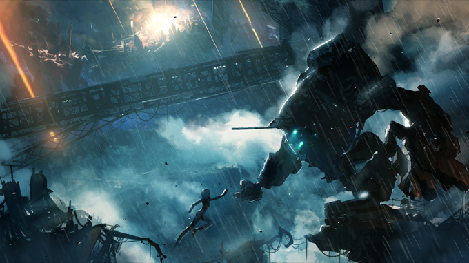 負責人與 AI 共同搭乘的機甲「搖籃靈柩」的機甲設計。