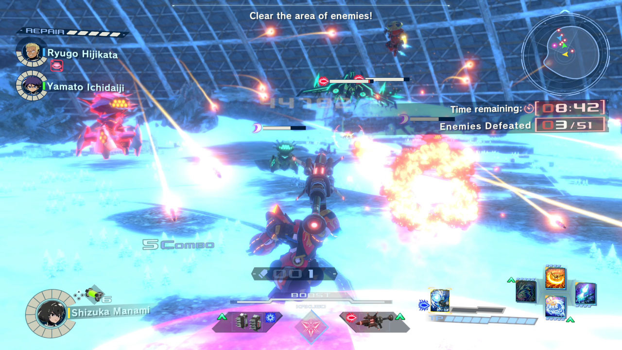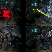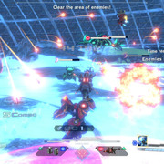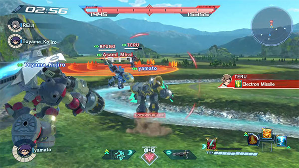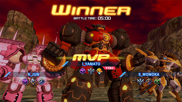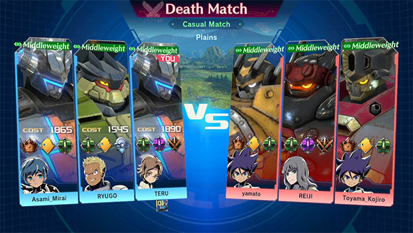 競技場對戰是 3 對 3 的連線對戰模式,駕駛專用機體,讓敵隊戰力耗盡就能獲勝。