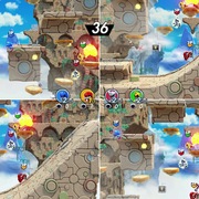 對戰模式裡有 4 種小遊戲會隨機出現,類型包括生存戰、競速、搶奪星星、大亂戰。在三場對戰中,累積積分最高的玩家即為最終勝利者。