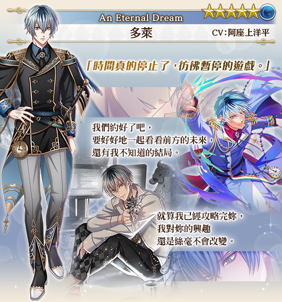 《夢 100》8 周年紀念系列活動「An Eternal Dream」正式開放!即日起至 2023 年 10 月 8 日進行活動任務即可獲得 SP 王子【★5多萊】、【★4路葛蘭休】與其他豪華獎勵!另可於抽池內獲得【★5道格拉斯】、【★5弗洛斯特】、【★4密利恩】SP 王子,且★5 王子出現率 2 倍!本次另開啟 STEP 召喚抽池,達到第四階必可遇見活動 Ver. 王子;本次召喚附贈露娜寶石,該寶石達指定數量可至交換所直接兌換活動 Ver. 王子殿下!