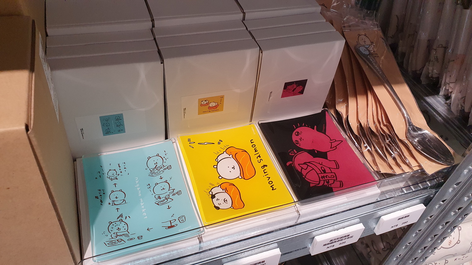 而作者 nagano 也特別為台灣快閃店創作全角色周邊特展「nagano market POP UP」,現場展售各式各樣的周邊:從日本熱賣的玩偶吊飾、紀錄小可愛們日常的面紙架、室內拖鞋與脖圍、三用毛毯與日式土鍋,以及經常和《