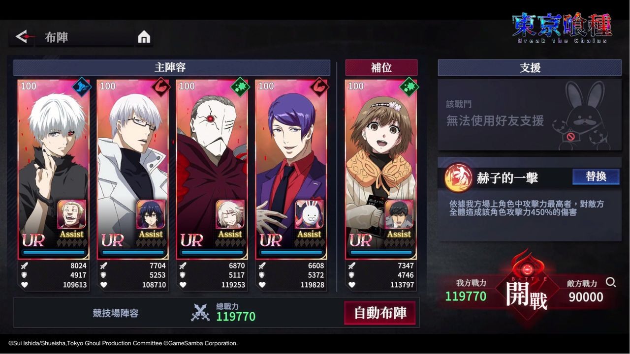 金木研、神代利世、霧嶋董香、鈴屋什造、亞門鋼太朗…… 玩家不僅可在遊戲中再次聽到這些動畫人氣角色的經典台詞,更能沉浸在原作的精彩劇情中!在遊戲中,玩家可充分活用不同角色的技能配置,組成屬於自己的最強隊伍!快來加入「