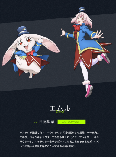 聲優陣容則包括內田雄馬(飾:桑樂 )、和氣杏未(飾:零)、日笠陽子(飾:潘希魯貢)、小市真琴(飾:追加鰹魚)、日高里菜(飾:愛姆露)......等人參與演出。